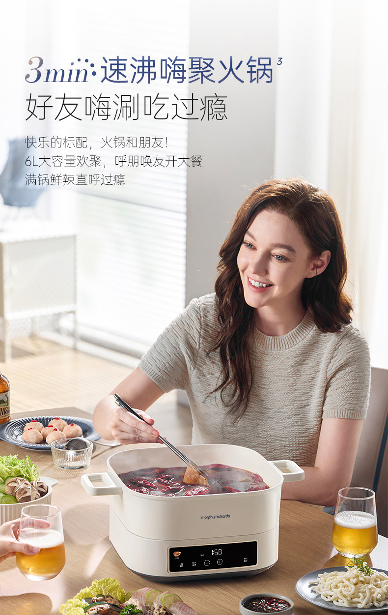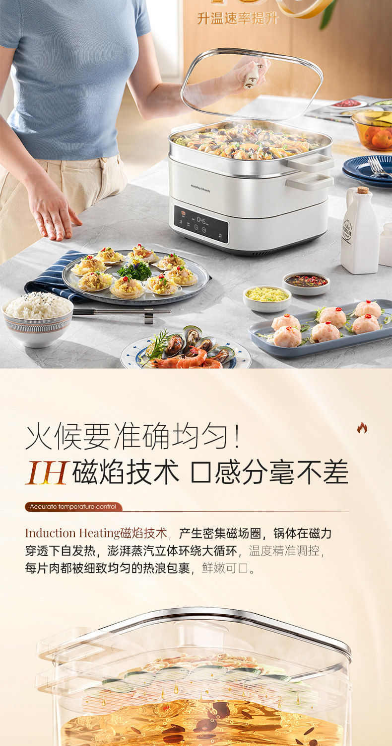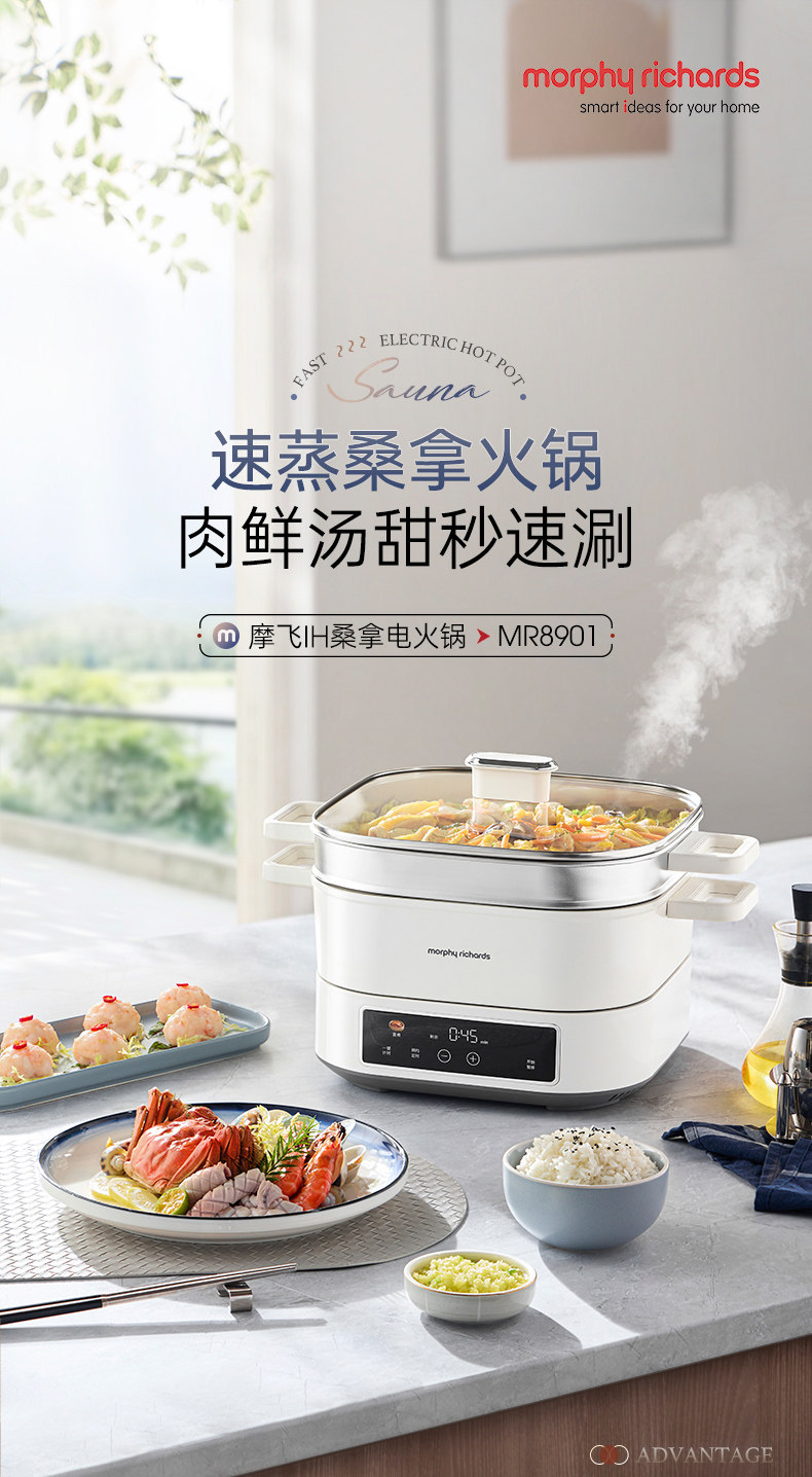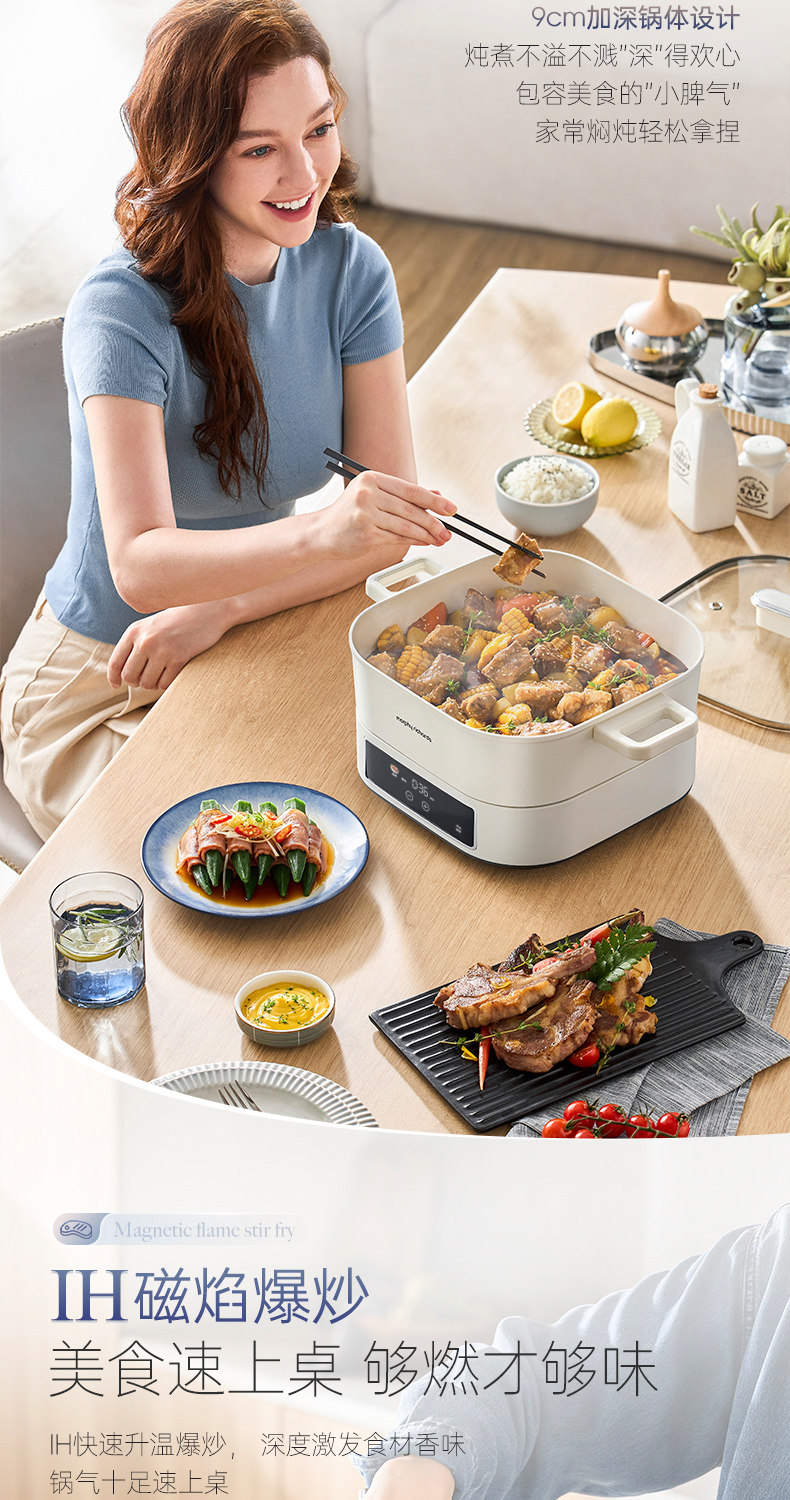 摩飞IH桑拿火锅电锅家用多功能电煮锅蒸煮炒煎一体锅2025年新款 MR8091