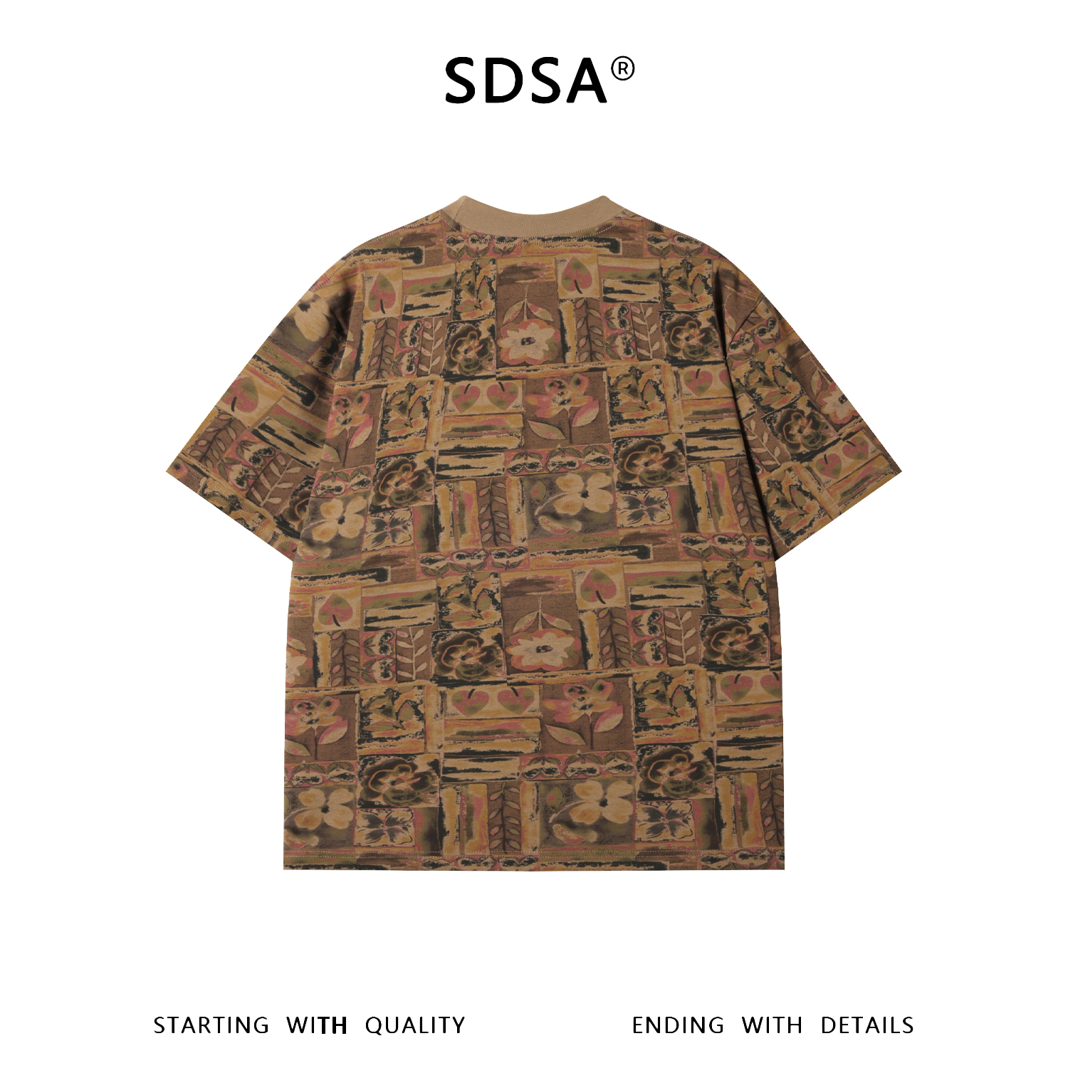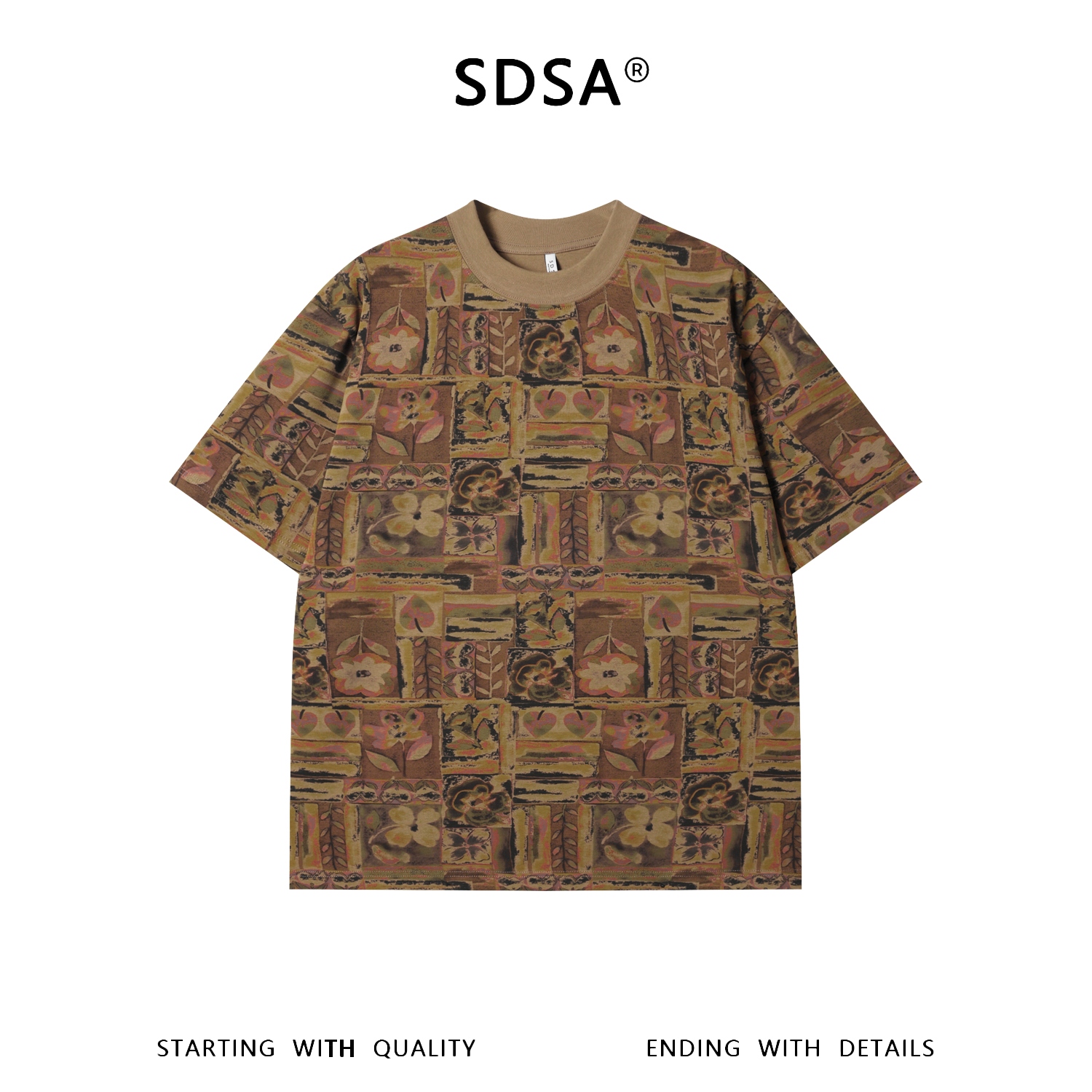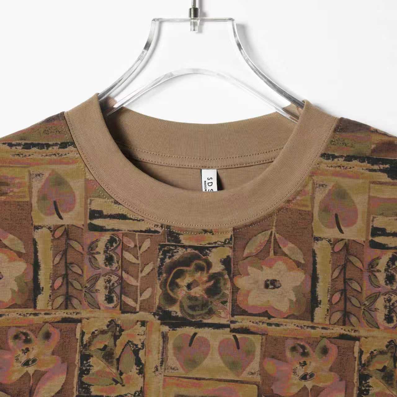 26T206SDSA男装2026新款高贵轻奢复古撞色植物花卉圆领短袖T恤宽松上衣