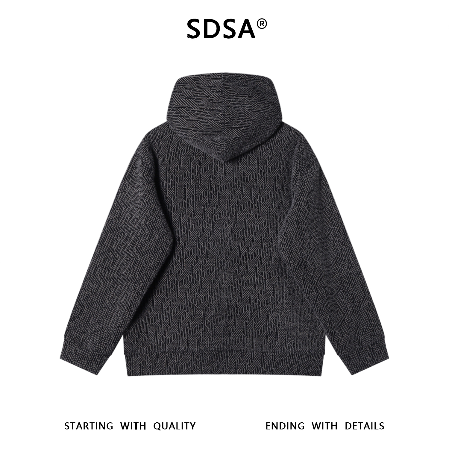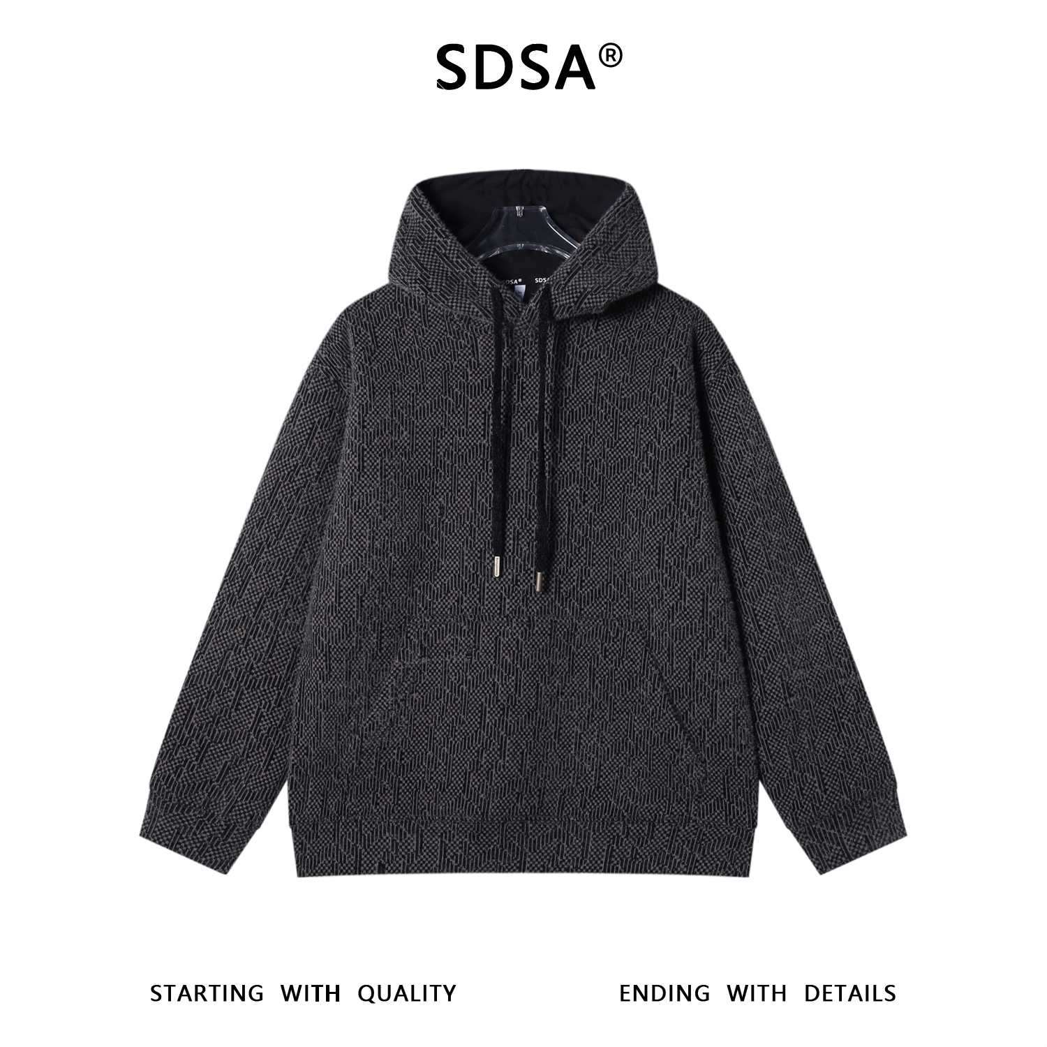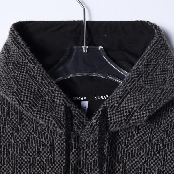 WY1465SDSA男士秋冬新款痞帅男装简约提花暗纹绒毛抽绳连帽卫衣百搭情侣