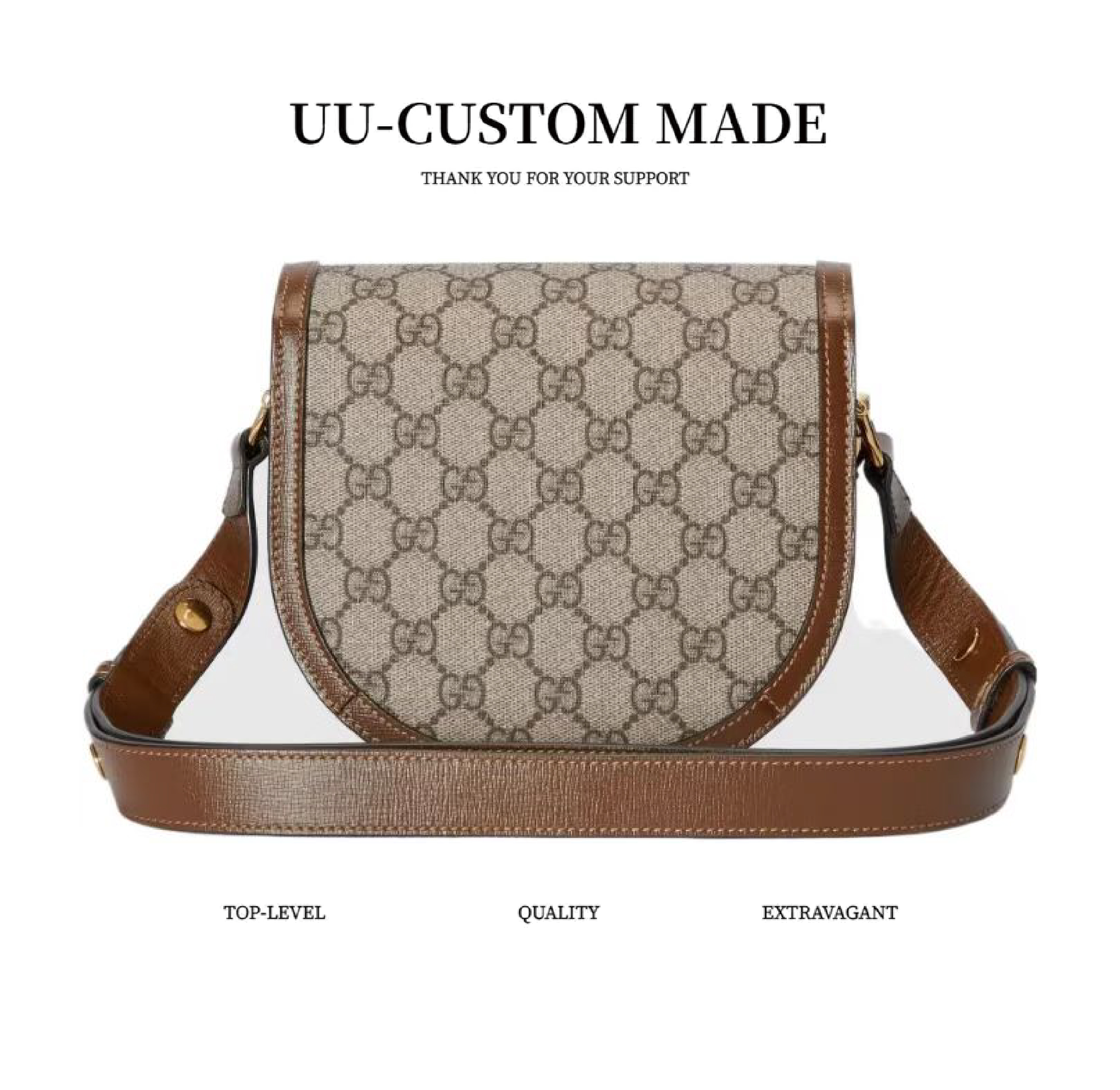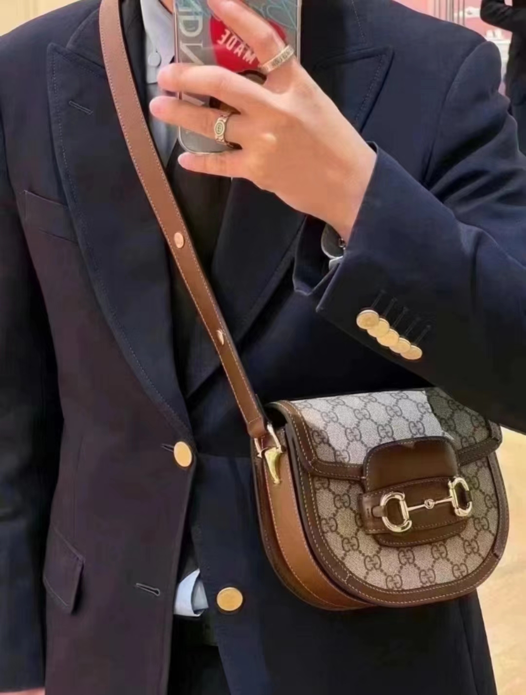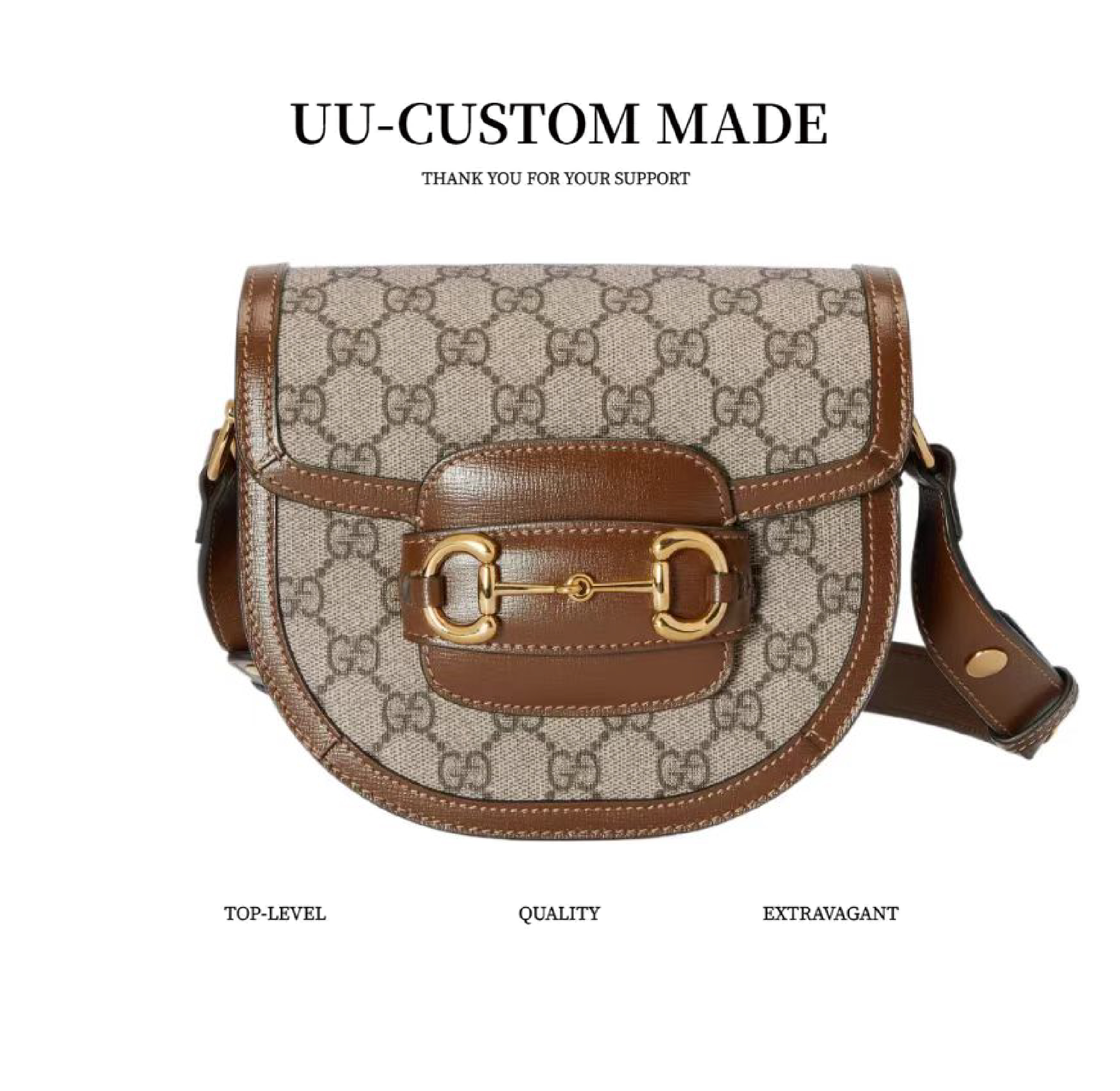 GUCCI古驰 Horsebit 1955 金色马街扣可调节肩带 帆布拼皮革饰边 帆布包马鞍包翻盖包 单肩包 迷你 男女同款情侣款 棕色(CB)