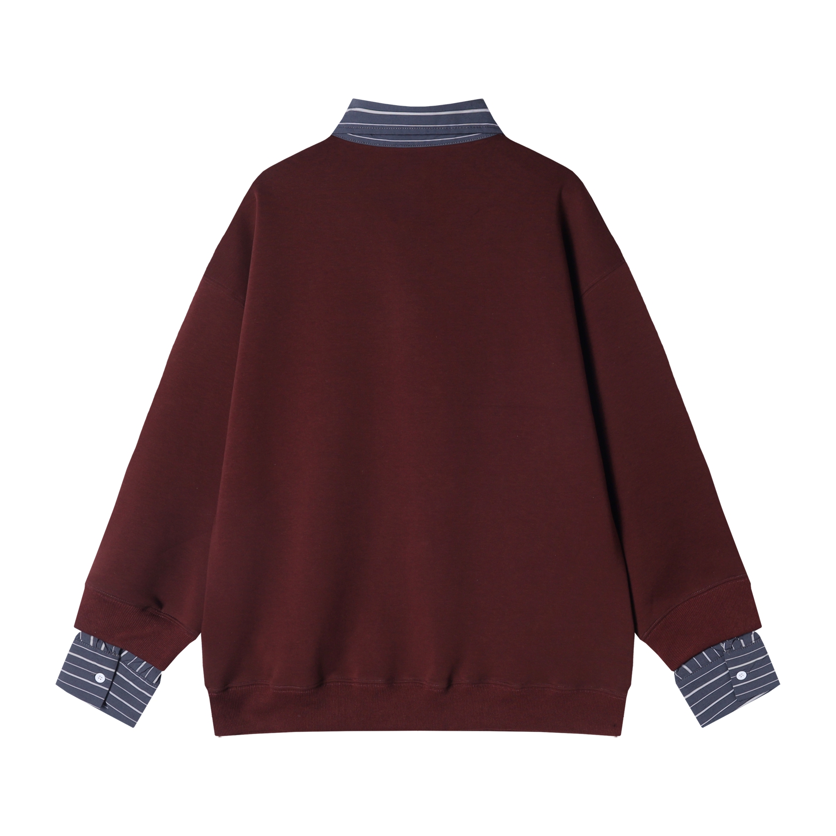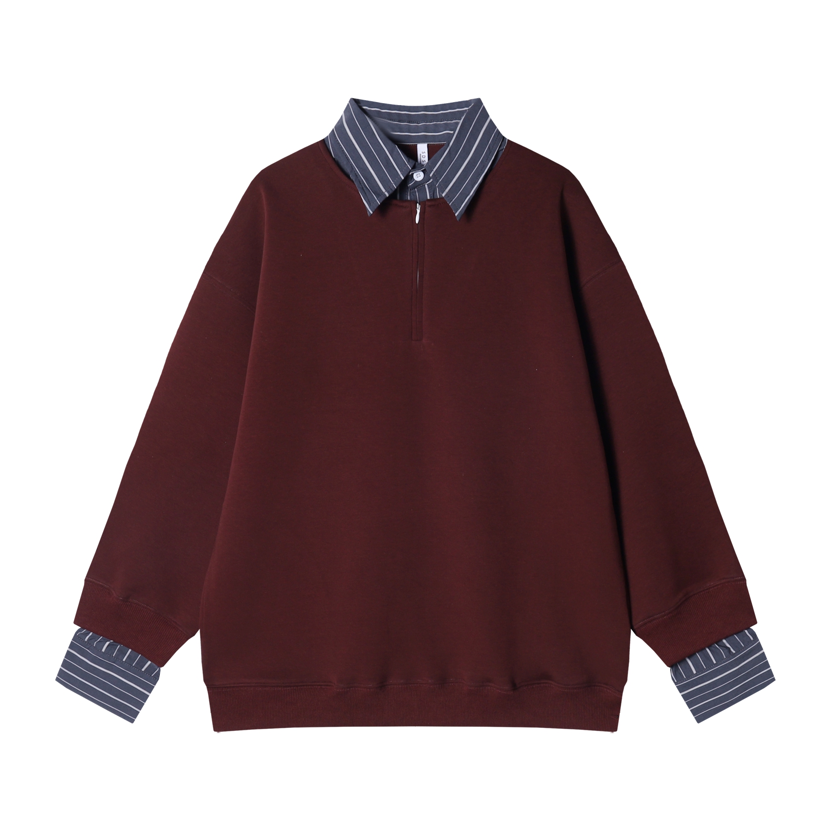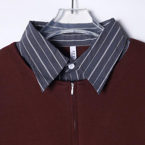 WY522秋冬季新款时尚个性半拉链条纹翻领设计假两件休闲宽松上衣