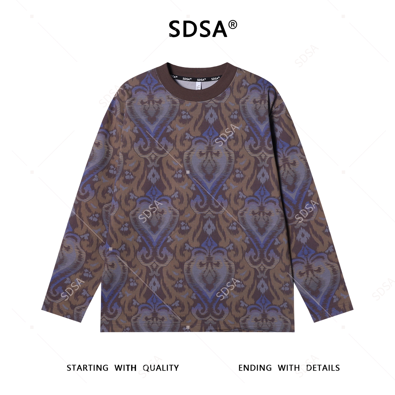 T4781SDSA男士秋冬新款痞帅男装抽象不规则色块圆领长袖T恤宽松网红款