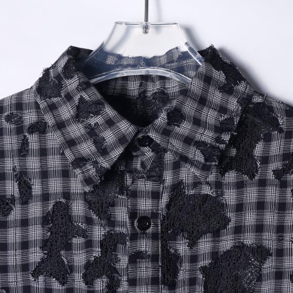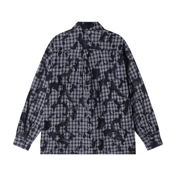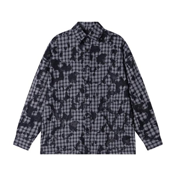 CS198秋季新款美式复古蕾丝镂空格纹格子休闲宽松衬衫长袖透气
