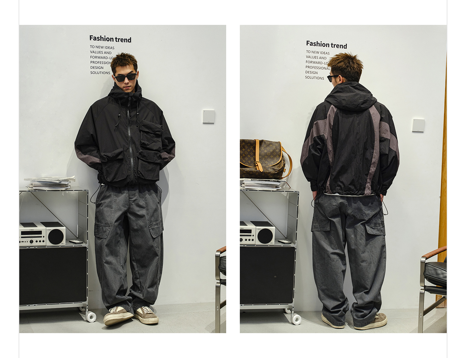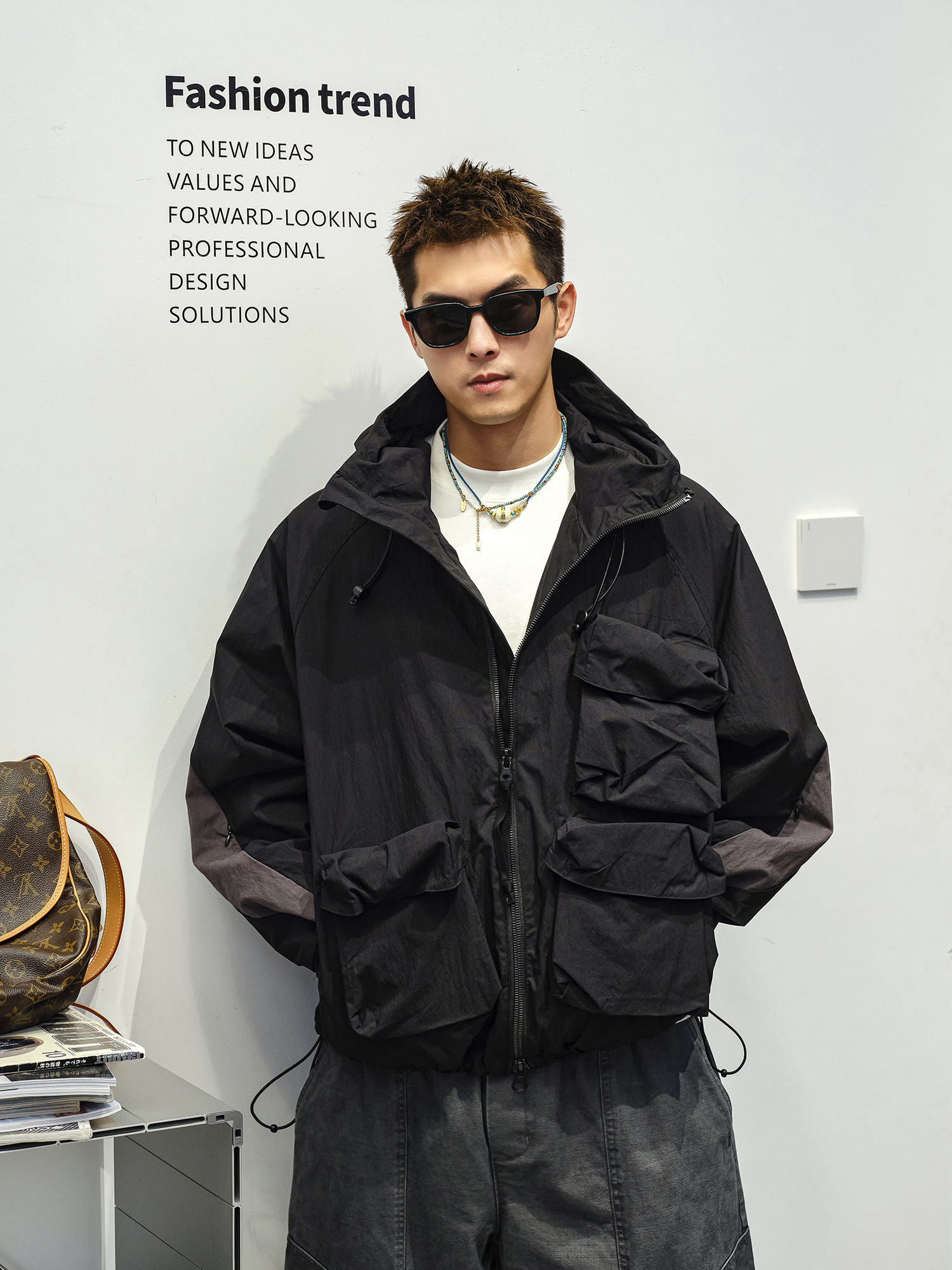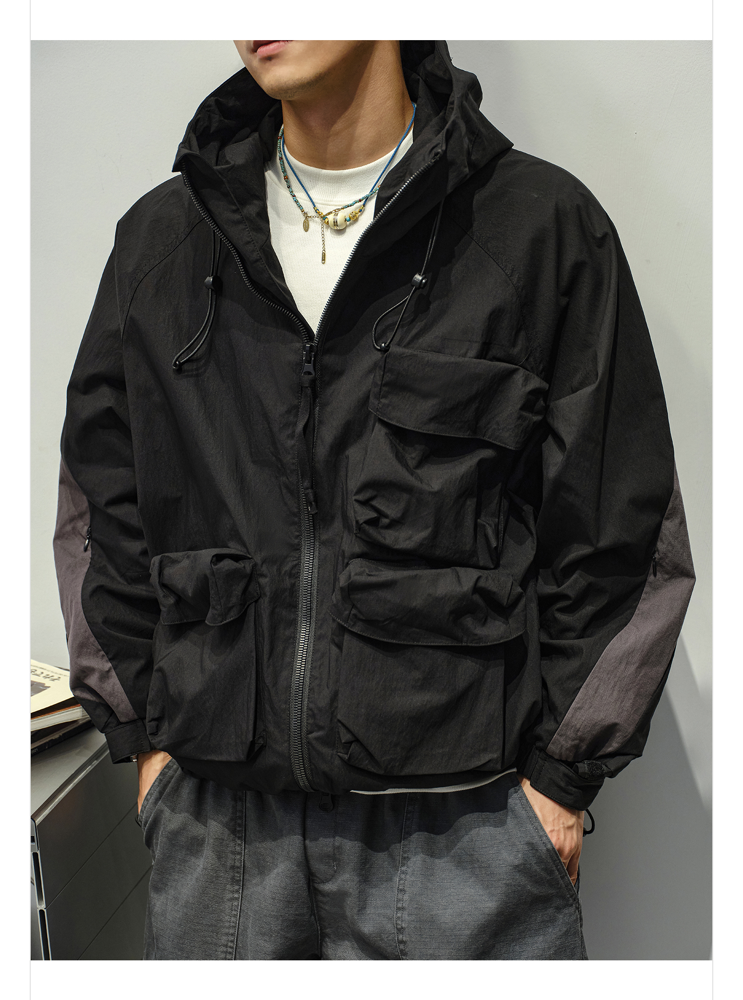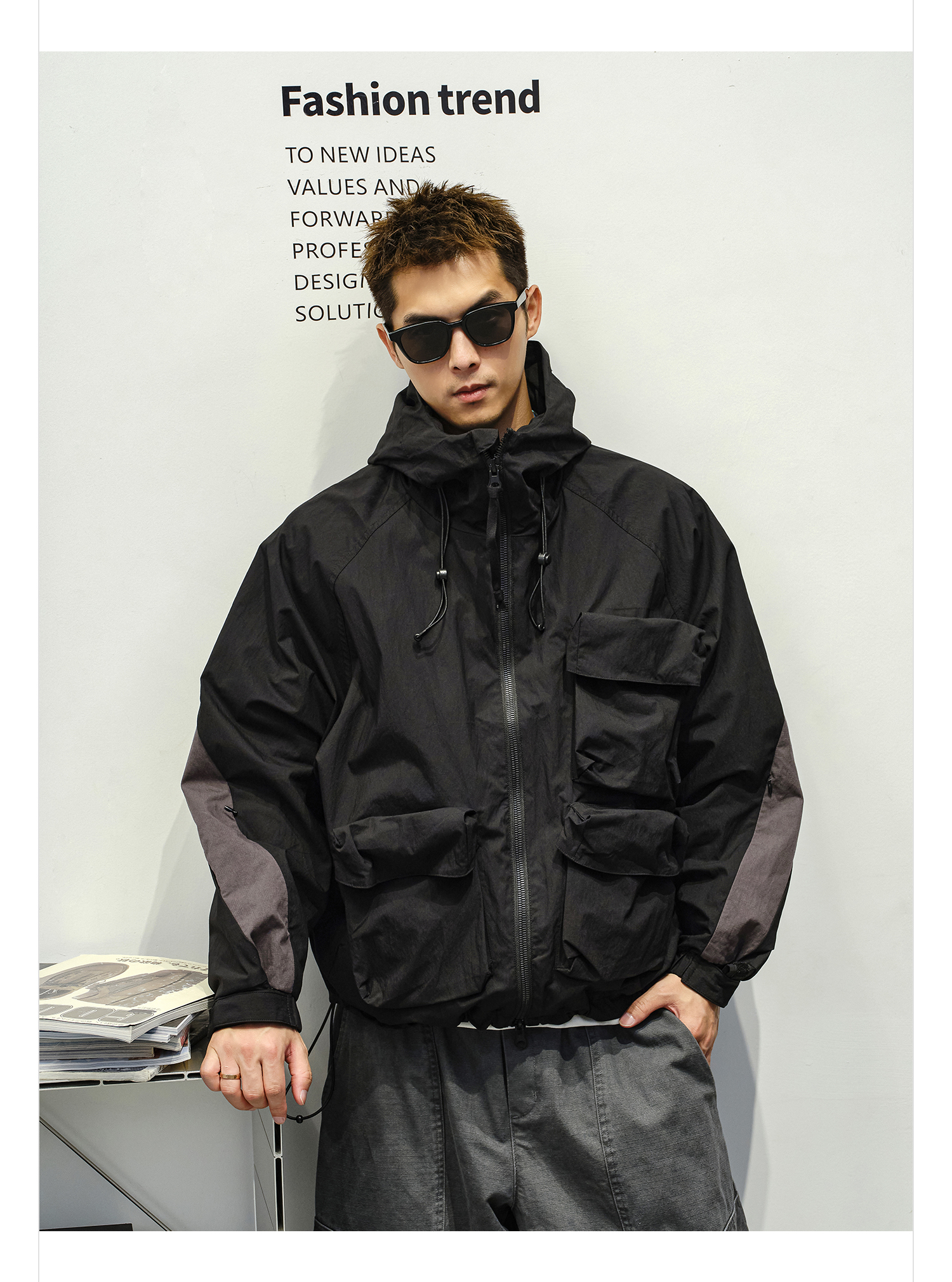 徐太浪【多口袋 抽绳收腰】拼色工装连帽夹克男春秋休闲运动外套