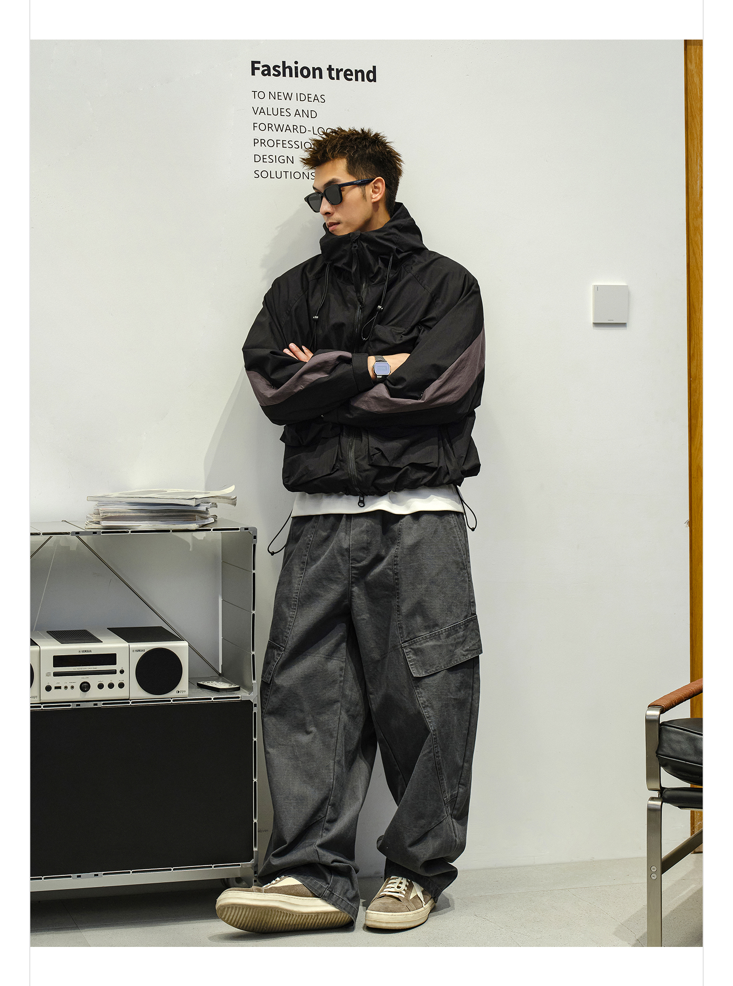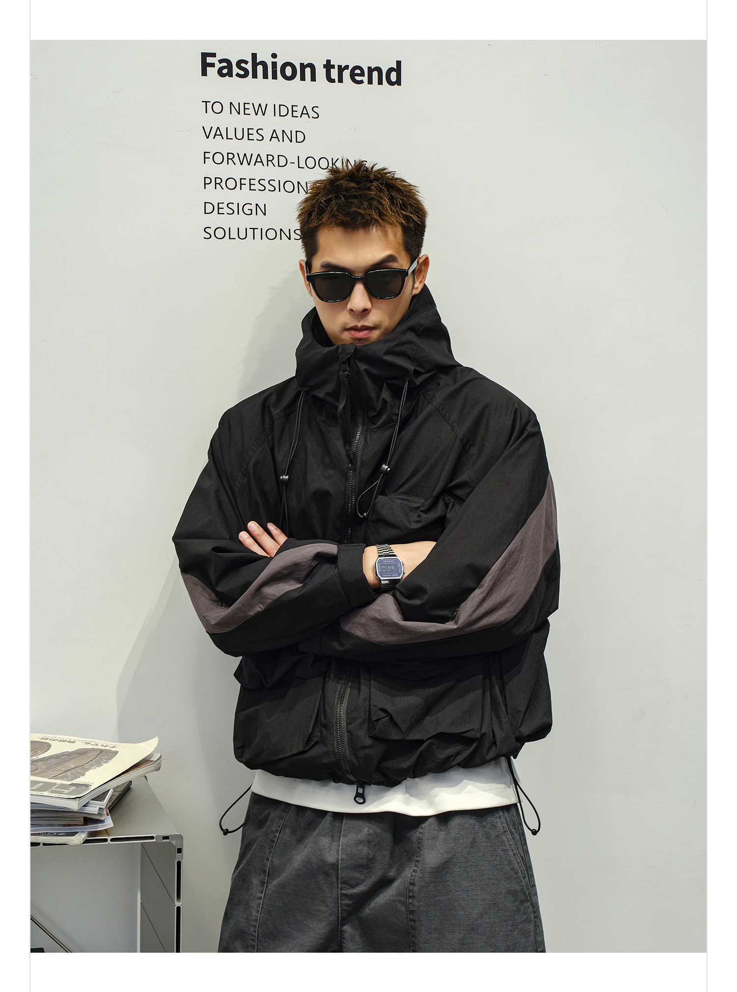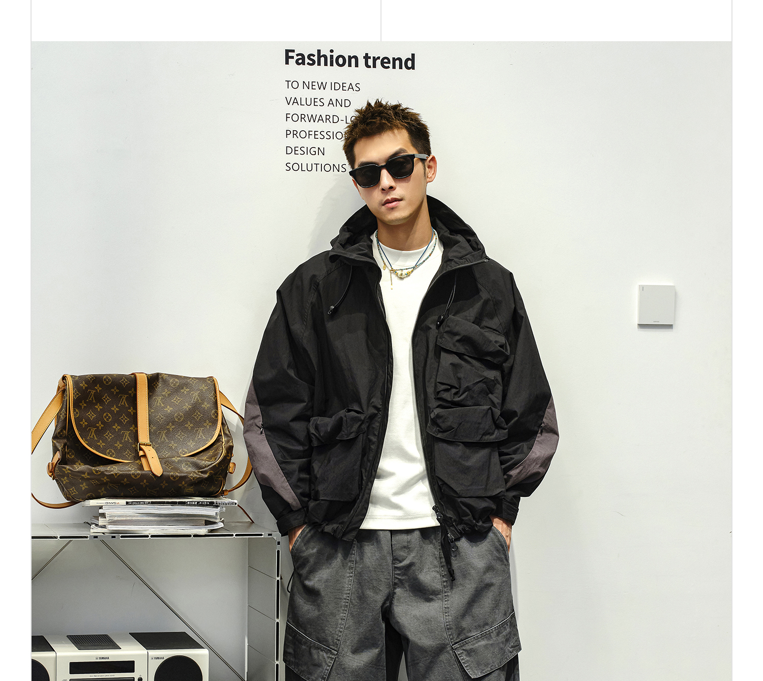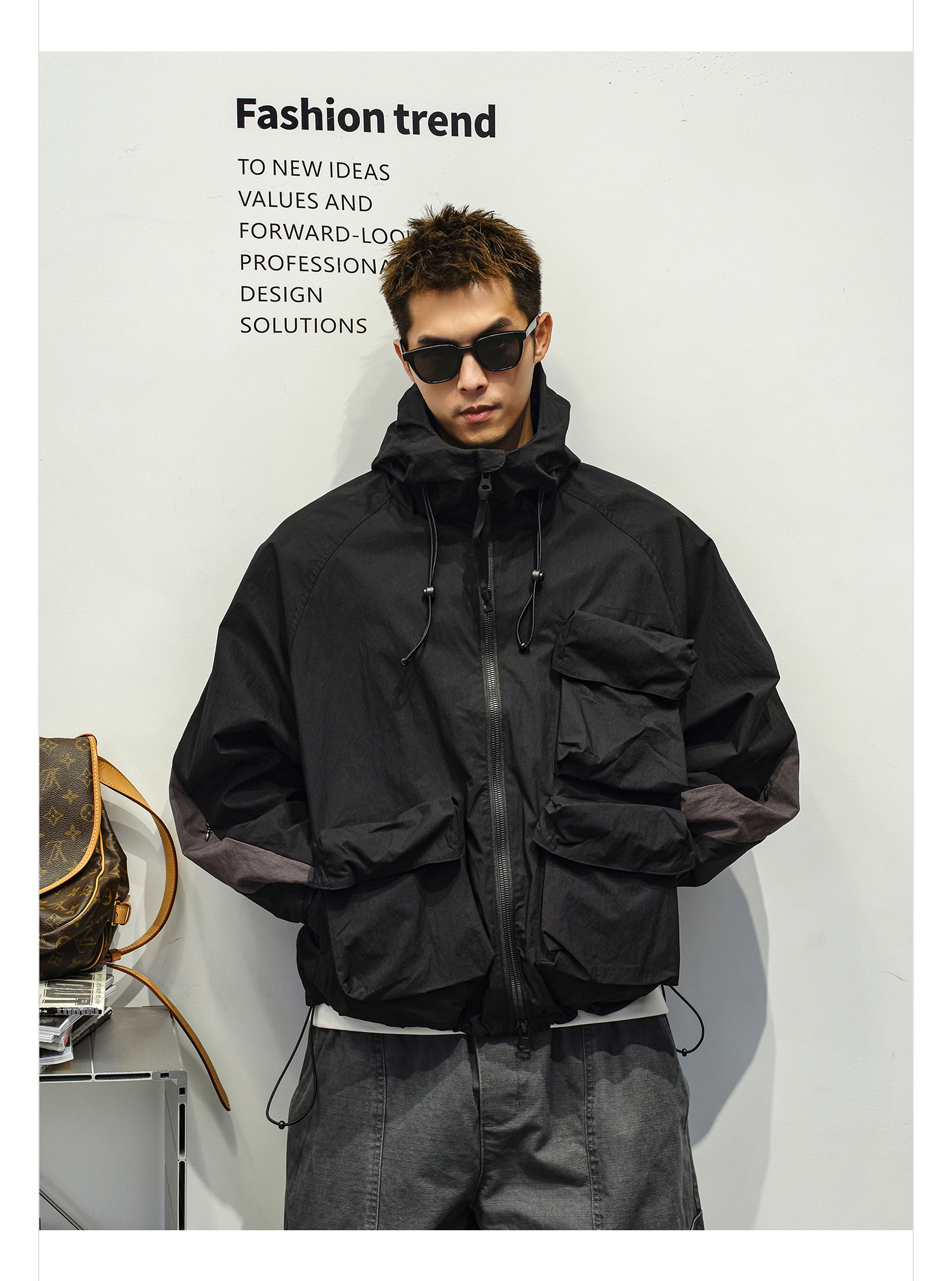 徐太浪【多口袋 抽绳收腰】拼色工装连帽夹克男春秋休闲运动外套