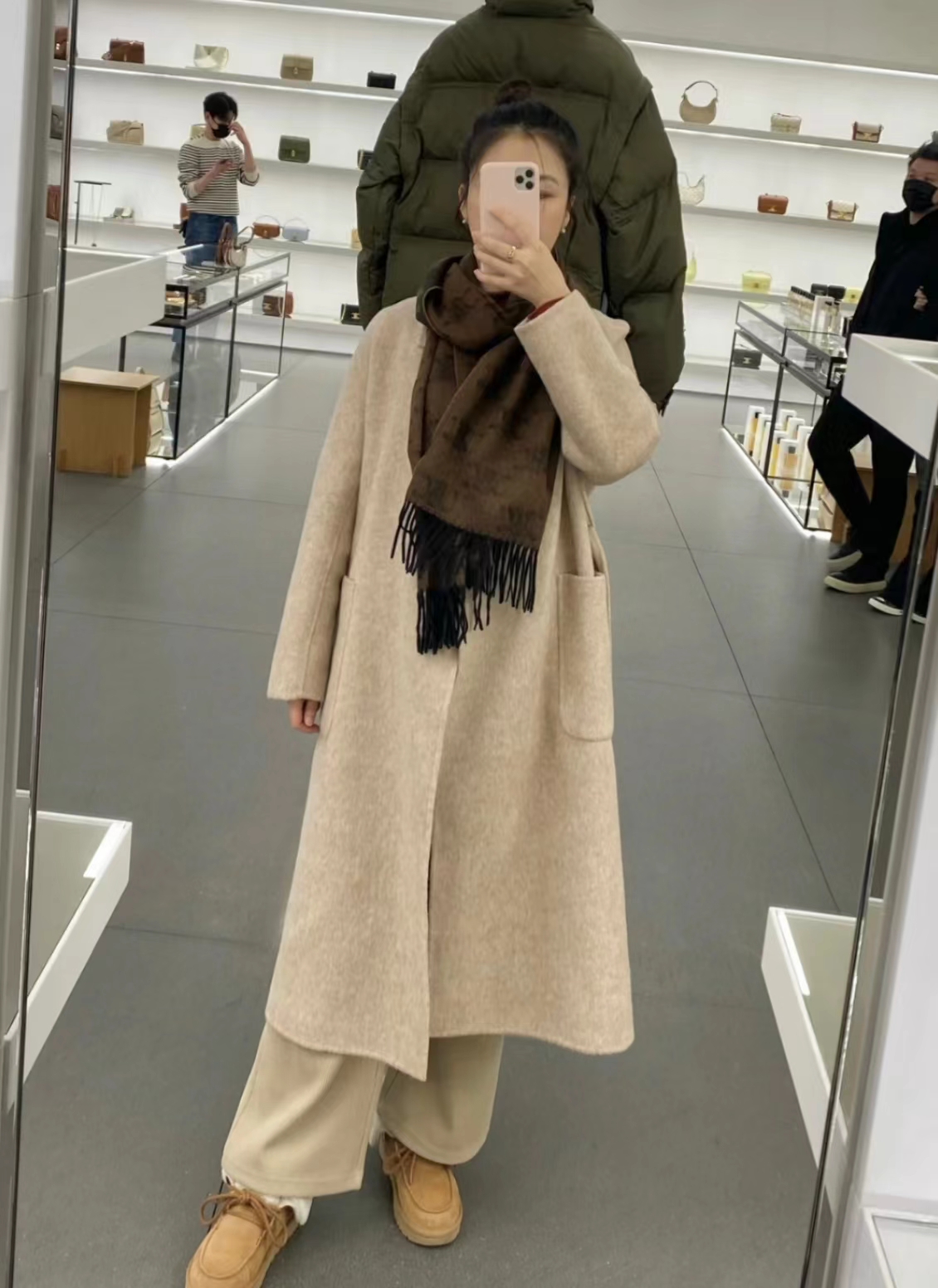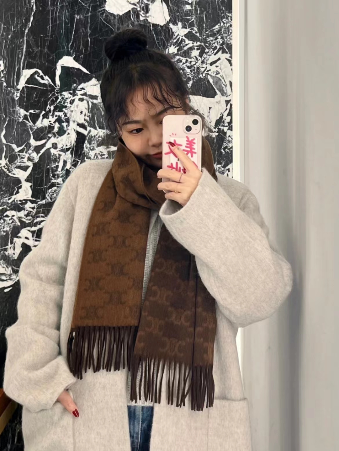 冬日大地色系暖暖羊绒围巾,材质超级亲肤柔软 浅栗色和巧克力棕,超级无敌百搭又显白,风衣大衣羽绒服的绝配,仙女们可冲!!39× 190cm.