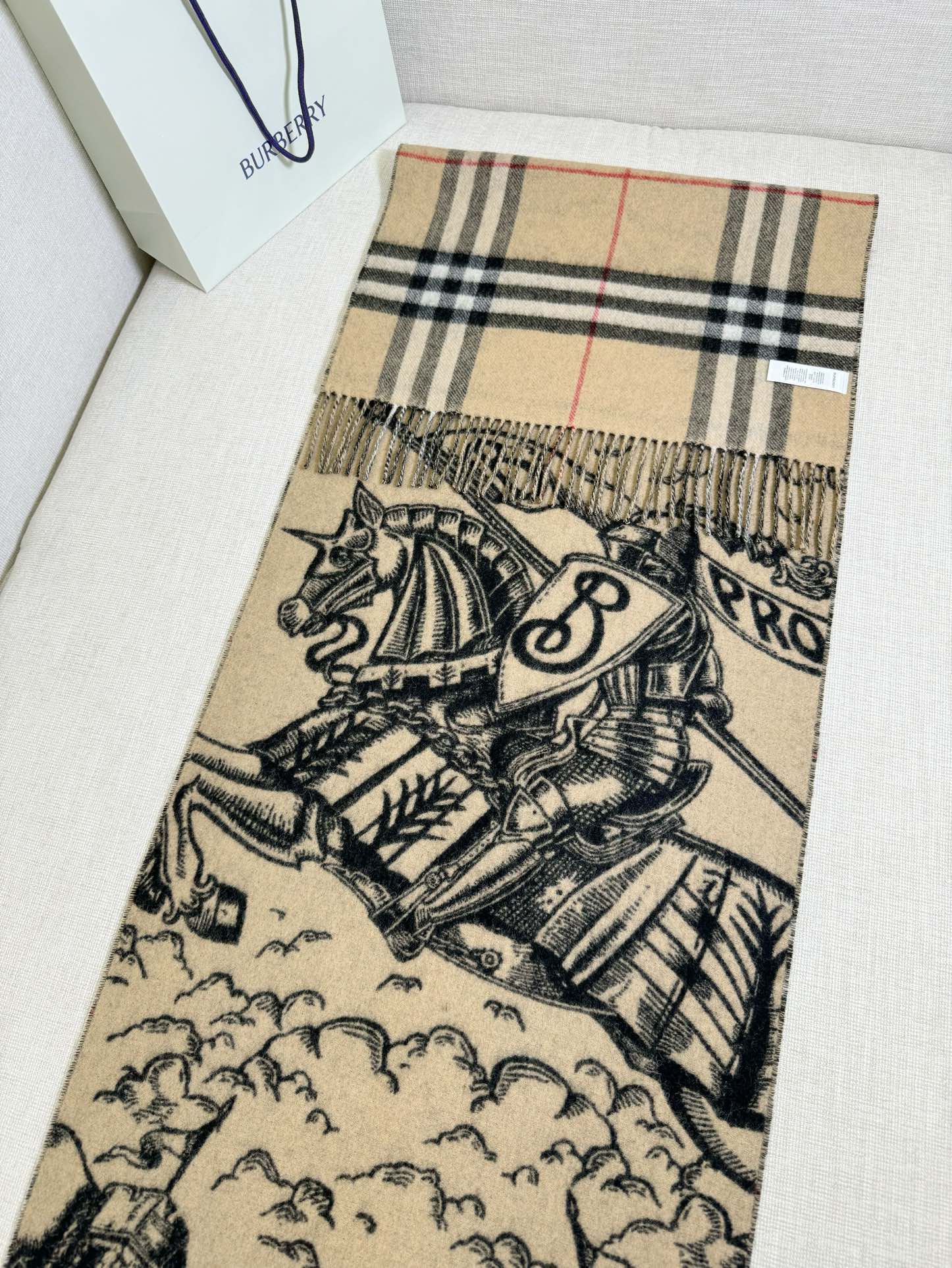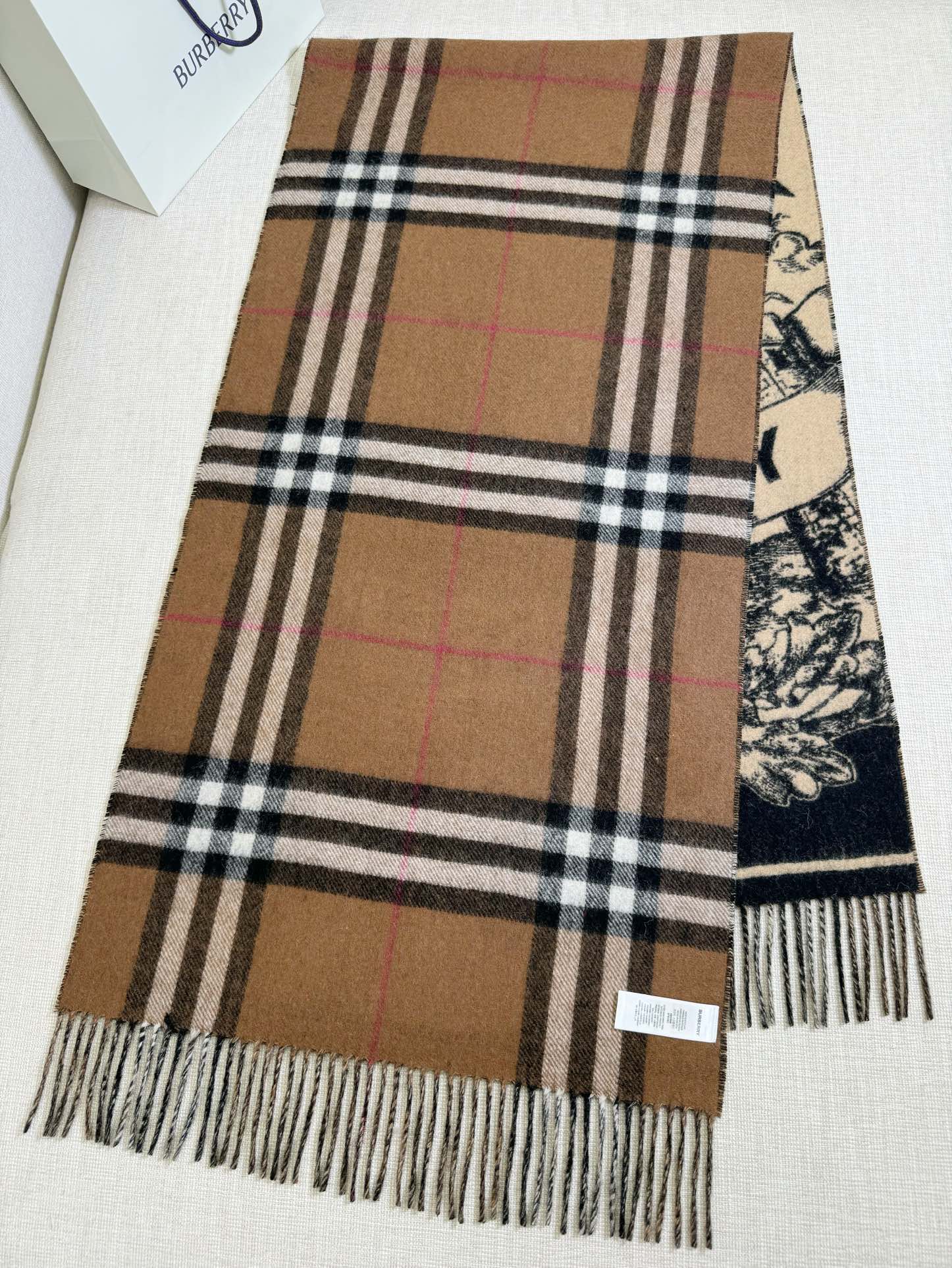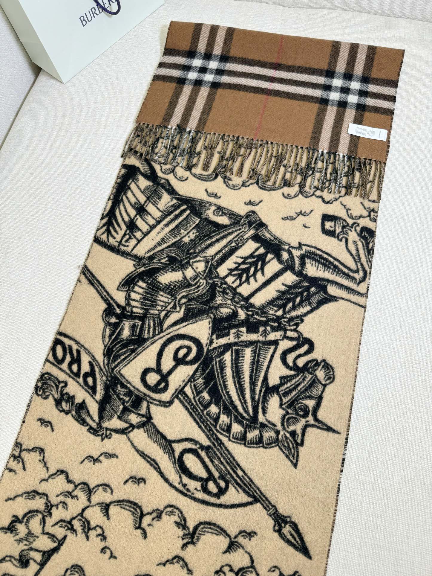 双面都好看!选用提花精纺羊绒面料制成,装饰品牌大号格纹和马术骑士两面设计。手绘印花,将品牌徽标融入橡树叶和橡果背景中,彰显品牌风范 高级有质感 细节🈵️分~干练气质 贵族风!