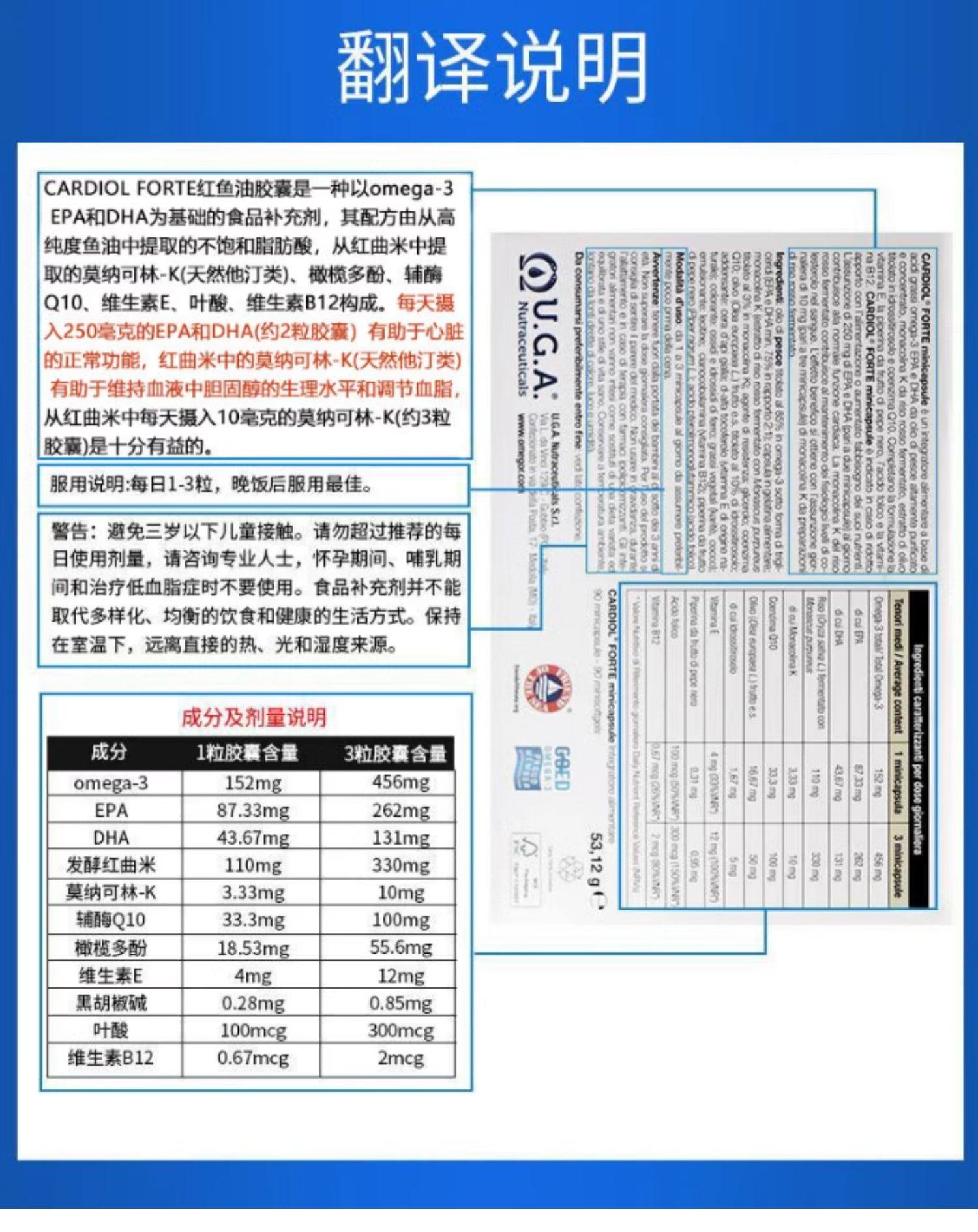红凯撒高含量红曲米配方金凯撒红鱼油胆固醇鱼油辅酶q10心血管90