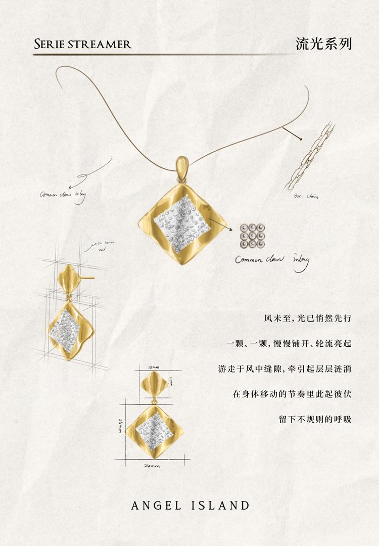 ANGEL ISLAND「流光」锆石波浪菱形双色项链