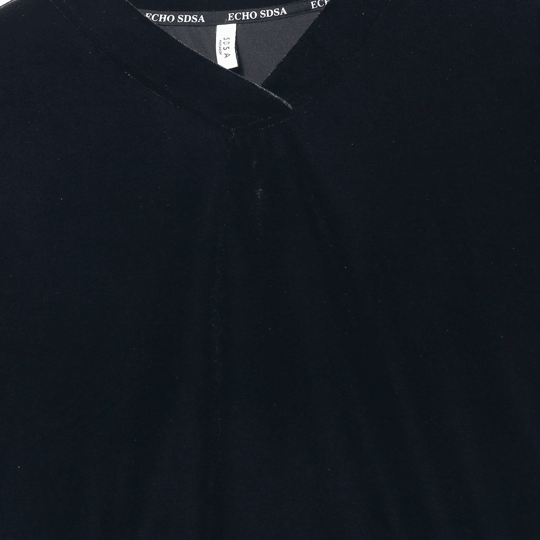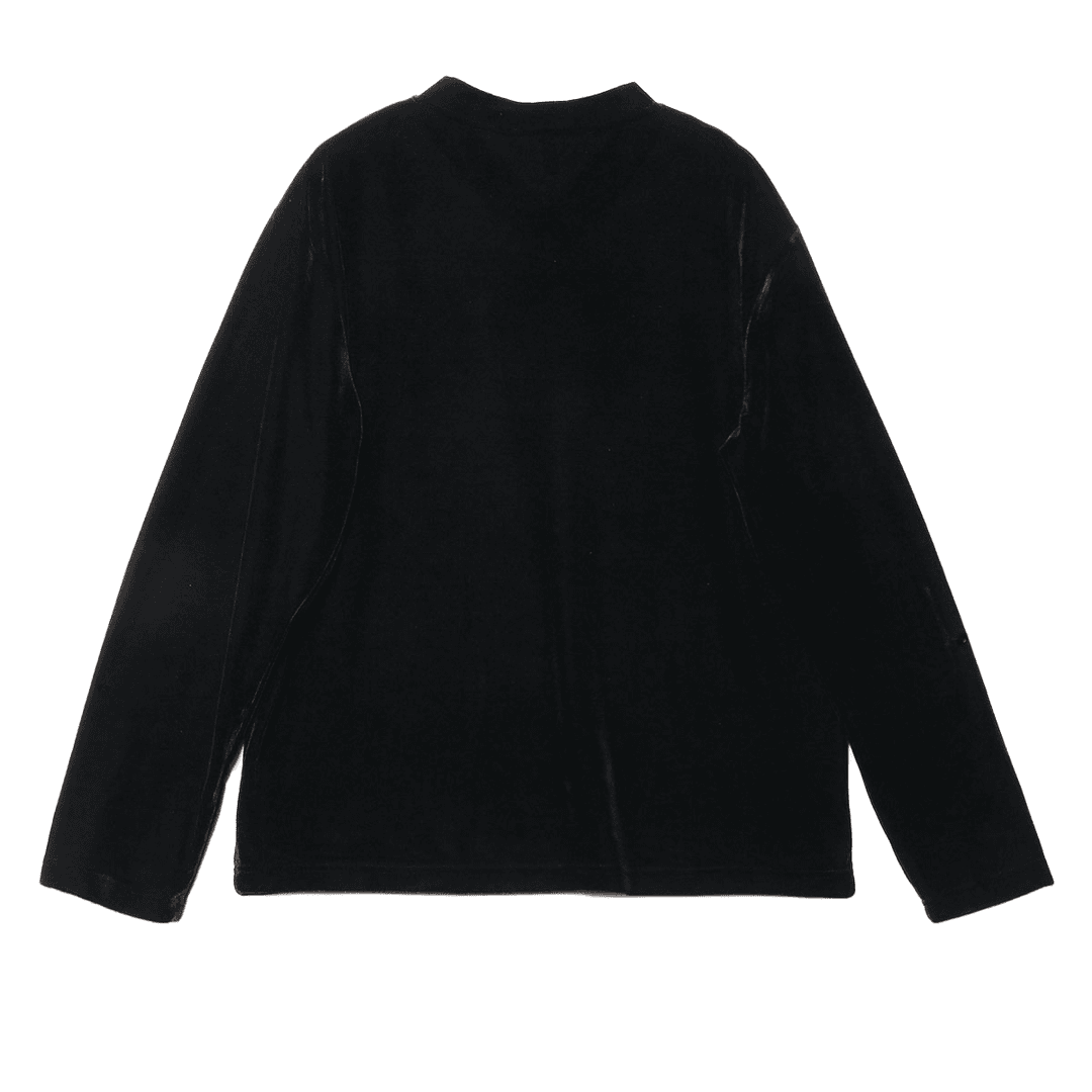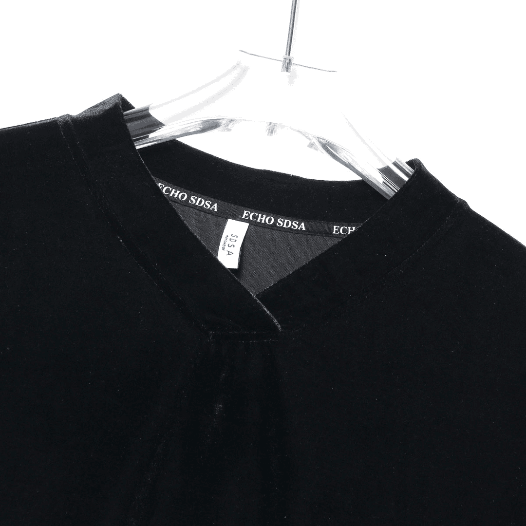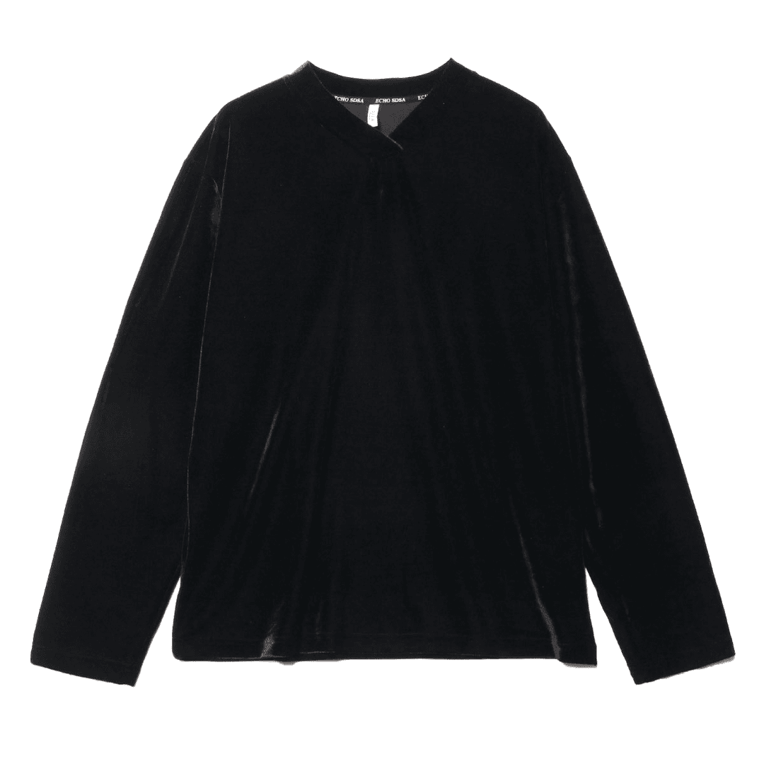 T414秋冬新款黑色亮面植绒V领套头长袖T恤休闲宽松时尚百搭