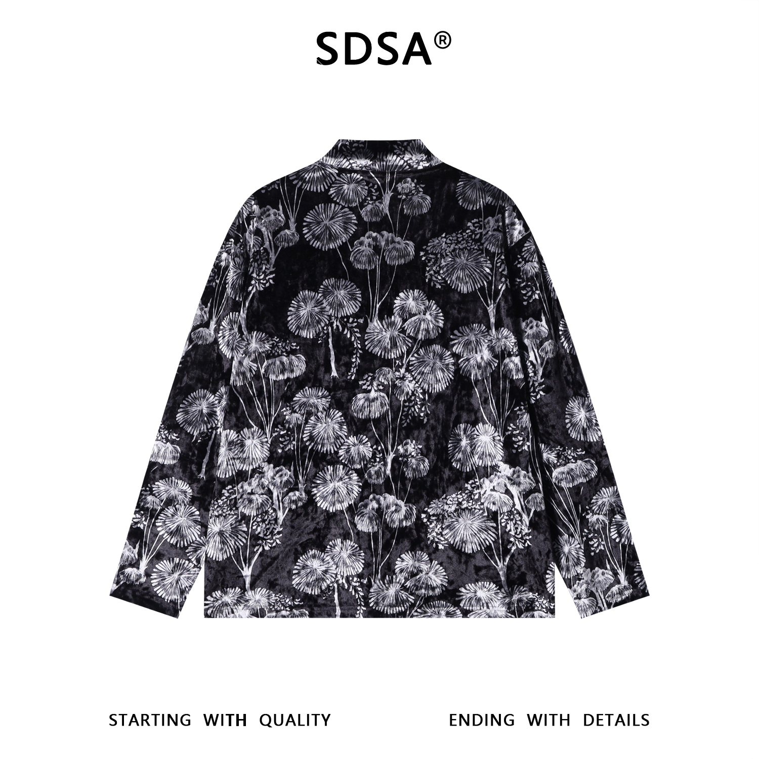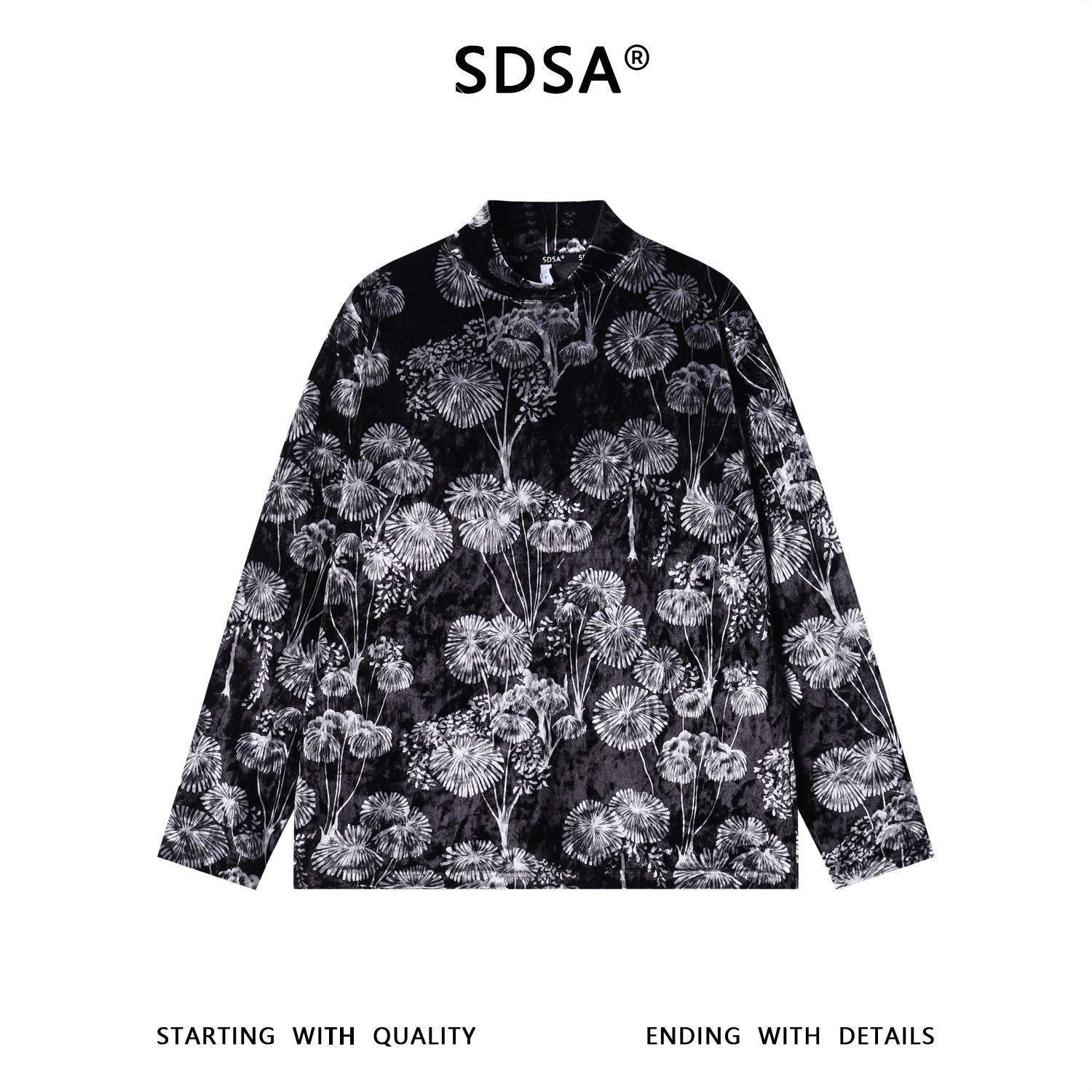 SDSA男士秋冬新款痞帅男装简约撞色植绒花卉半高领长袖T恤百搭潮