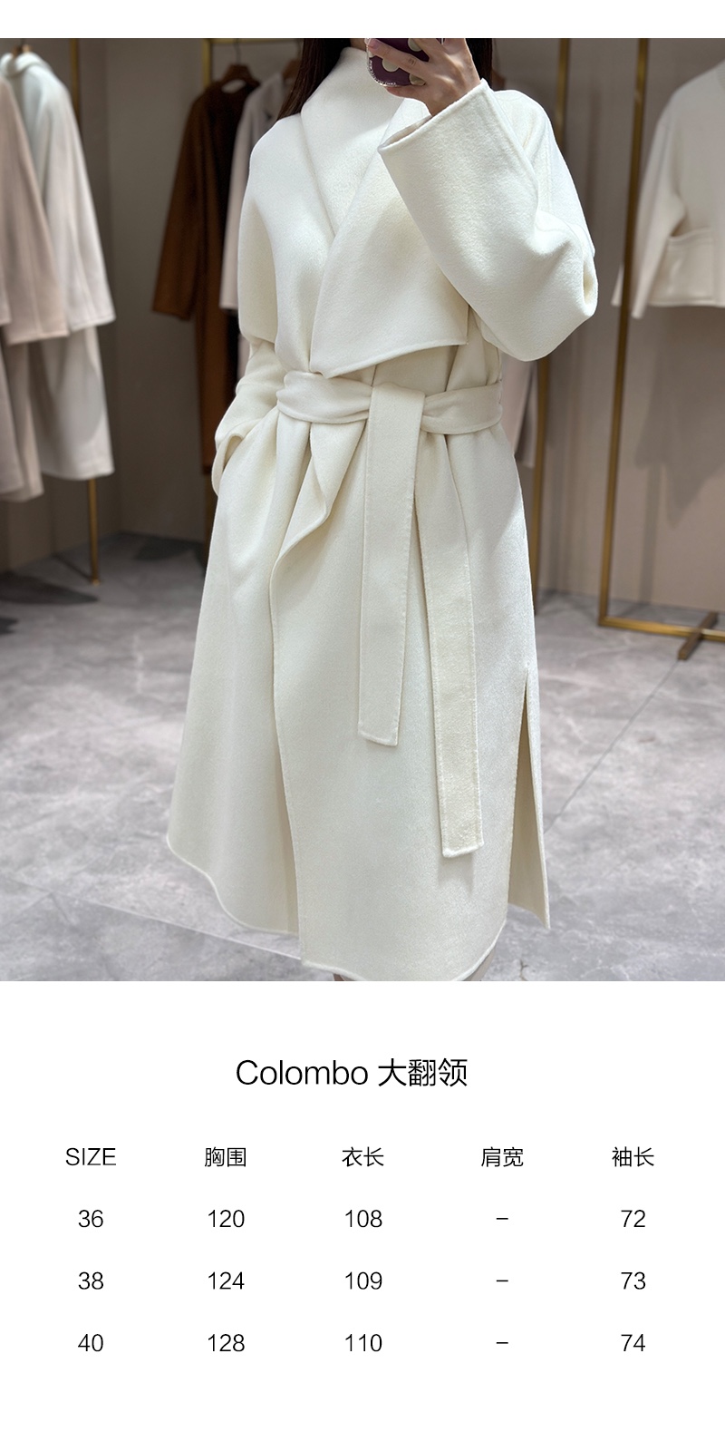 COLOMBO经典的款式轻松穿出高级感!造型感的大翻领设计,在人群中自成一格,领型宽大翻领顺直直下延伸至下摆 。