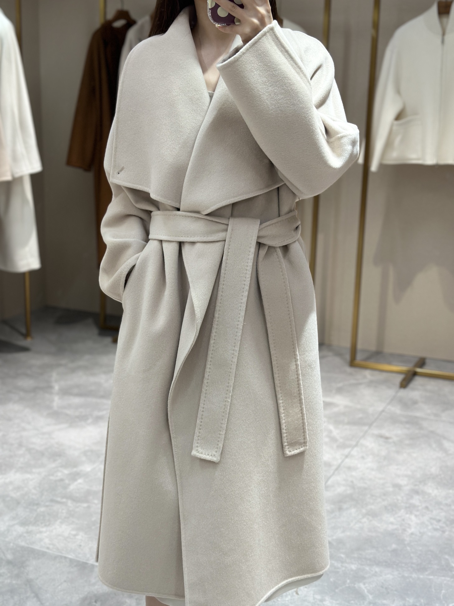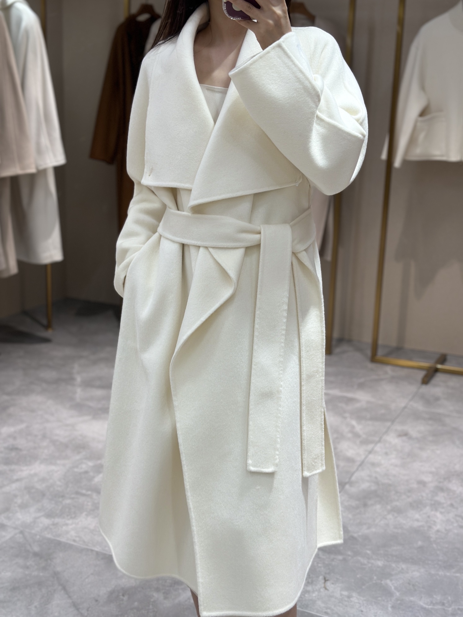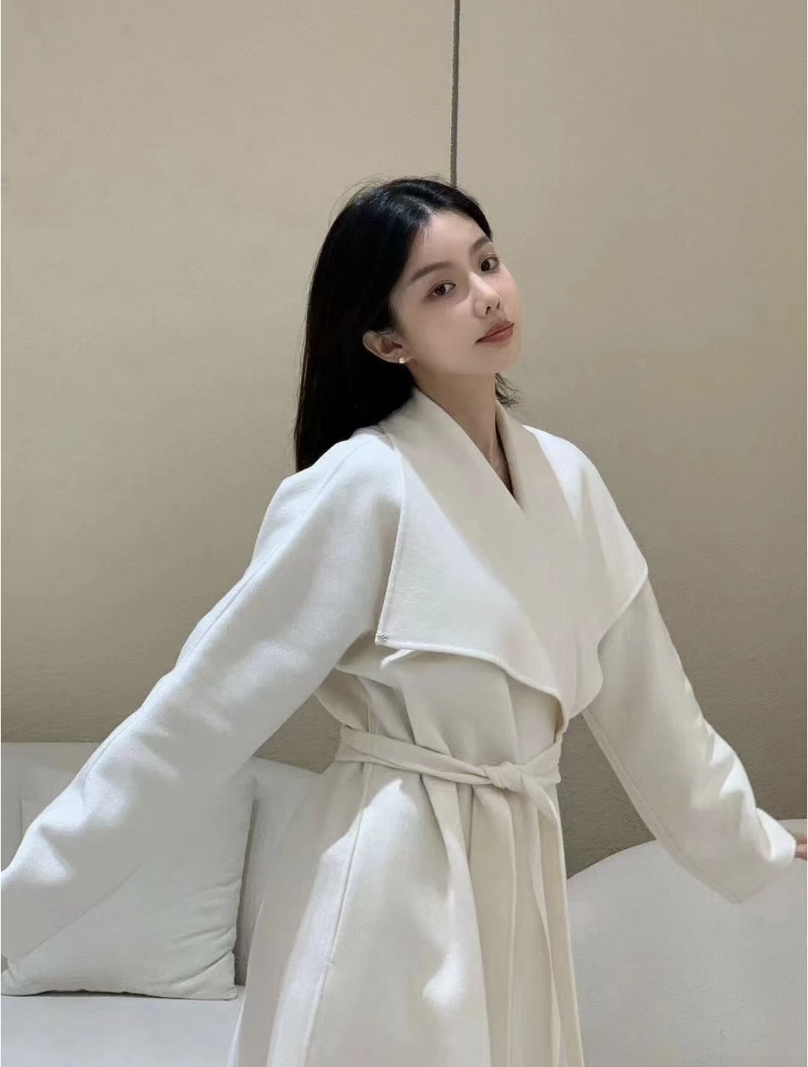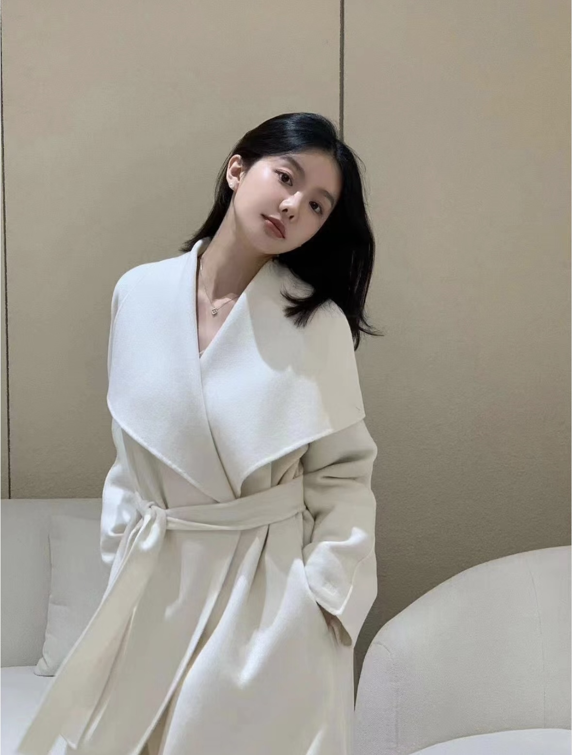 头肩比例线条流畅自然张弛出强大气场。造型感腰带解锁“浴袍风”穿法!