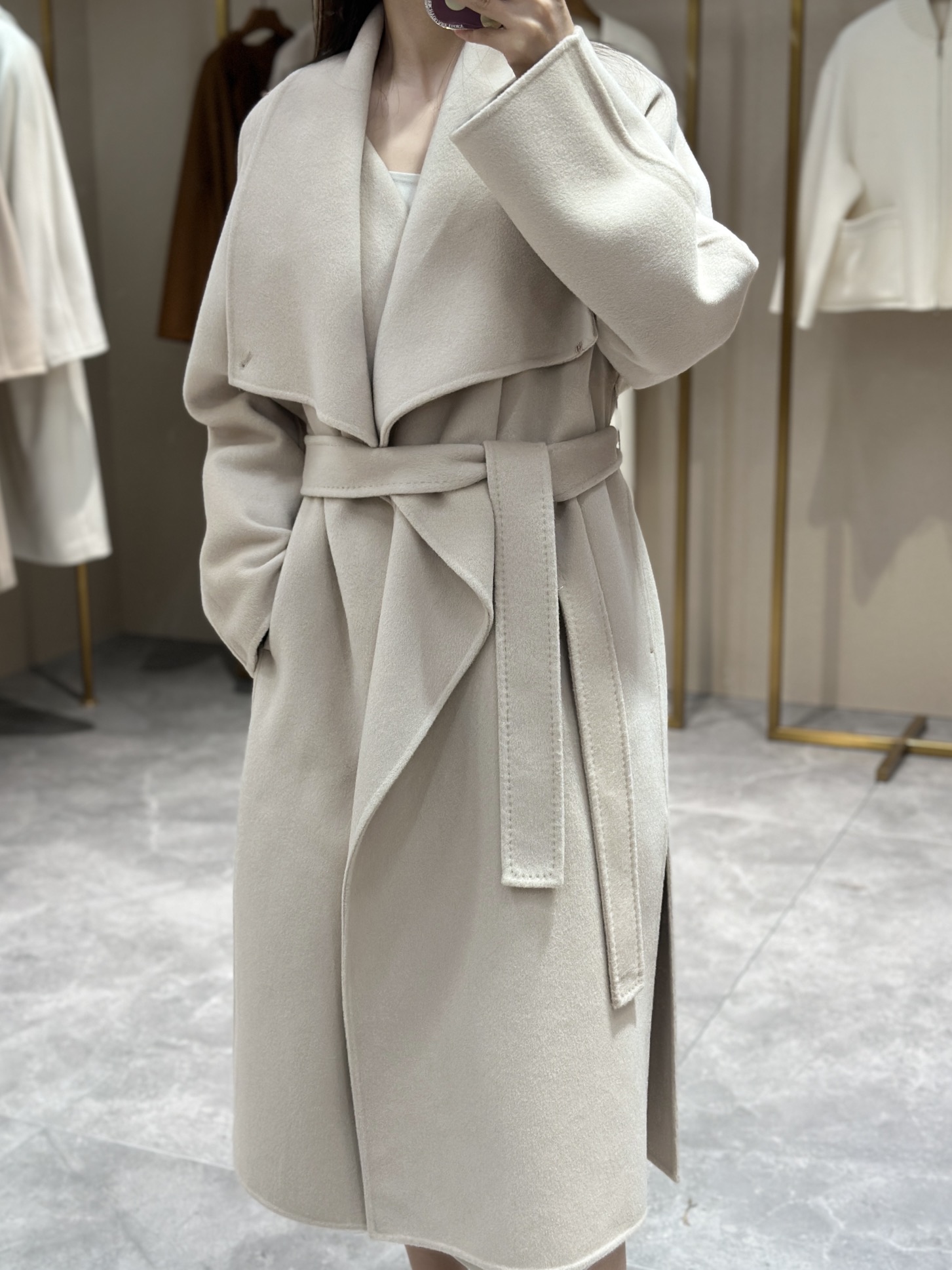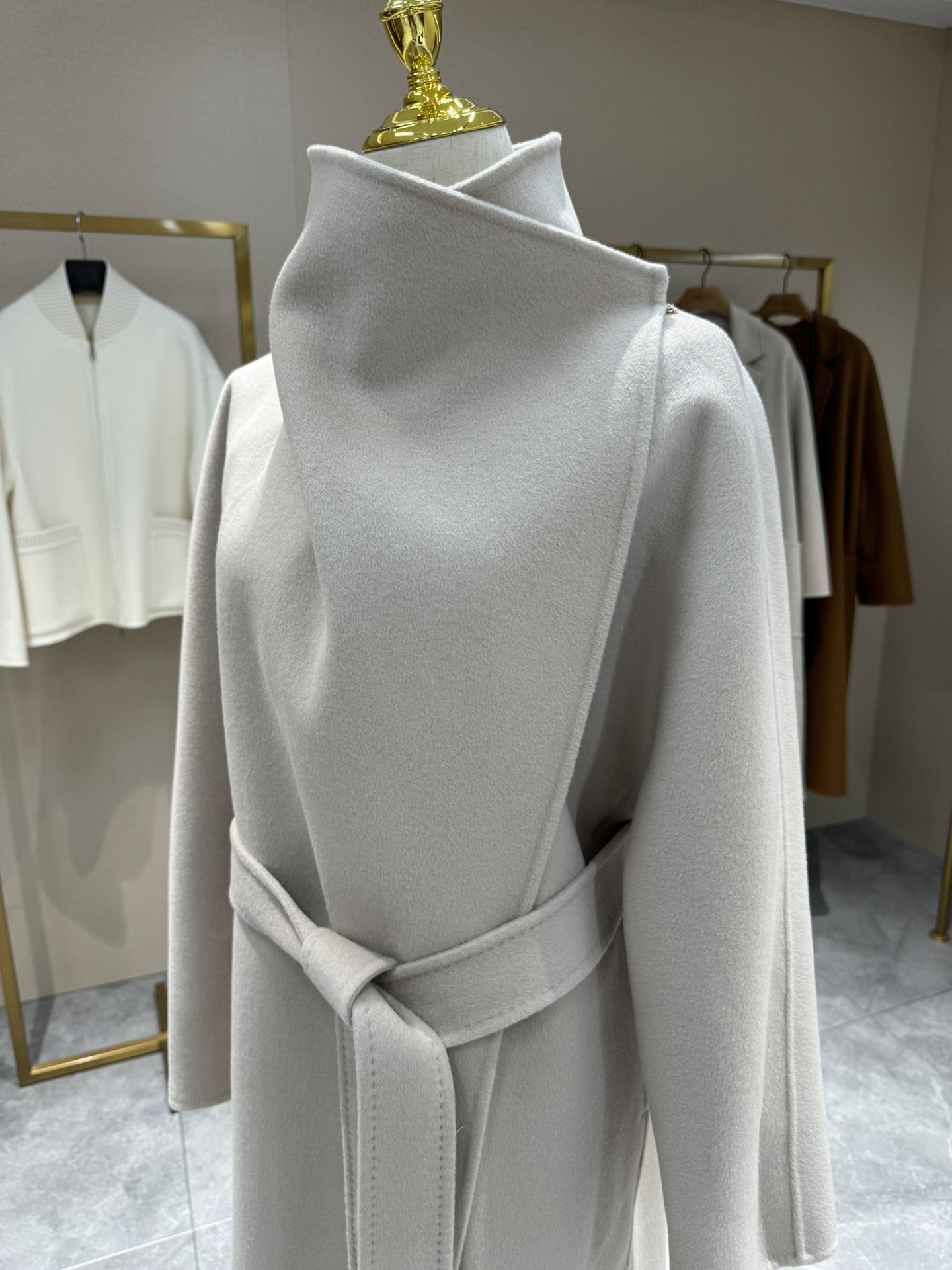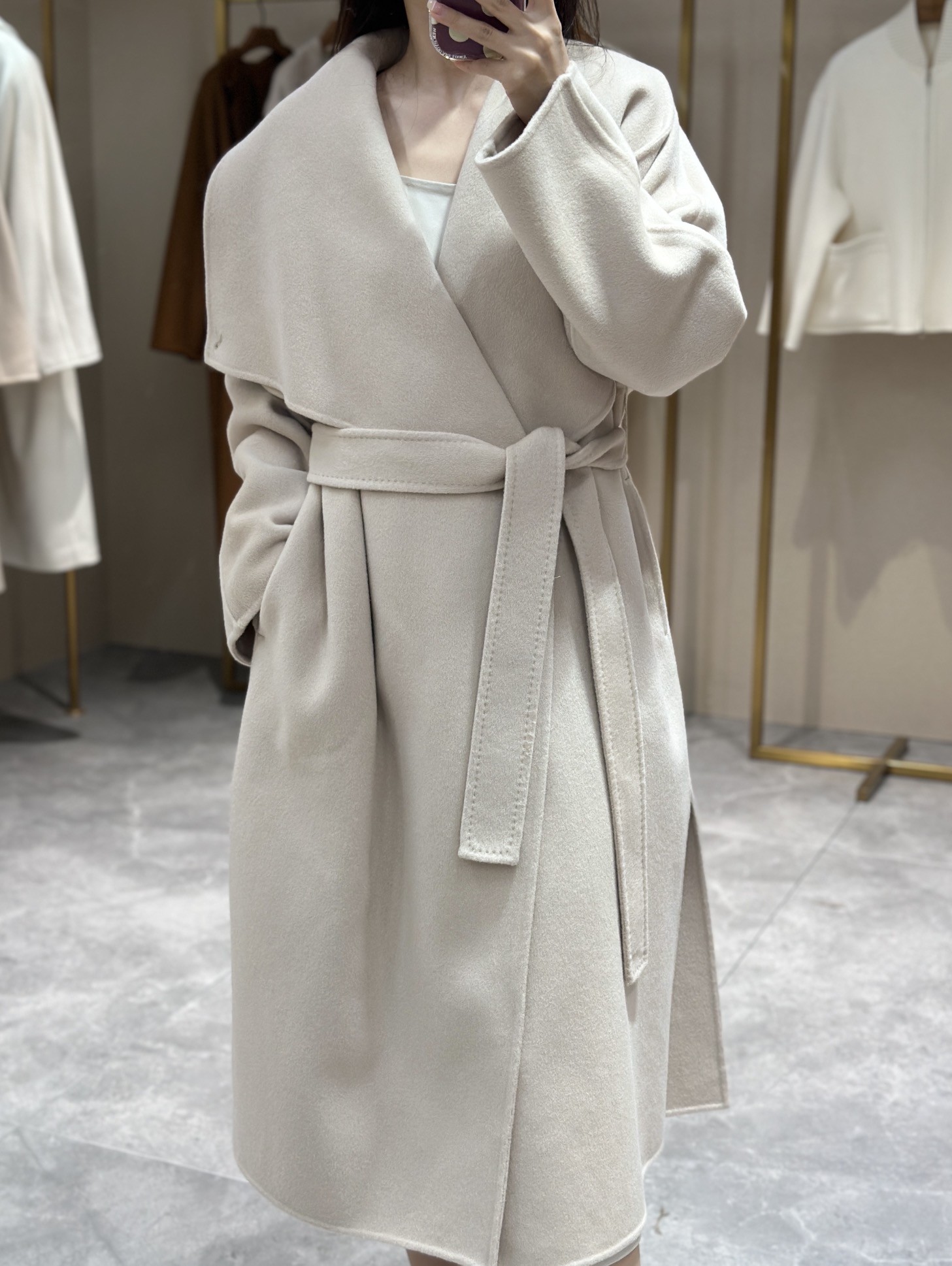 头肩比例线条流畅自然张弛出强大气场。造型感腰带解锁“浴袍风”穿法!