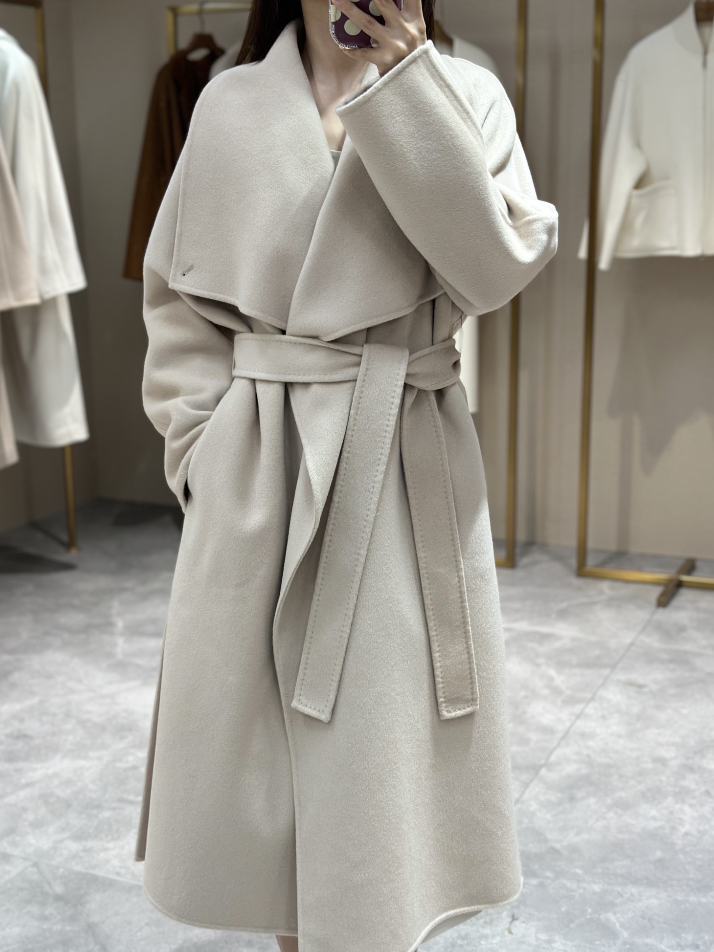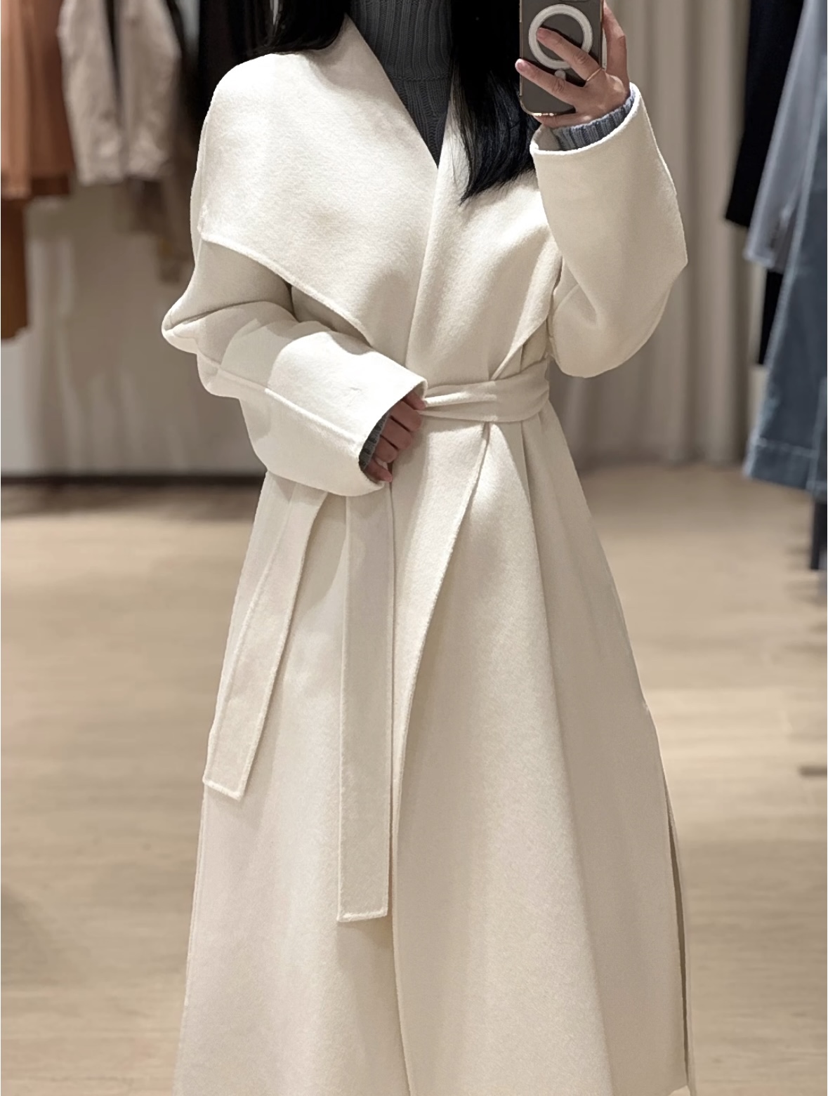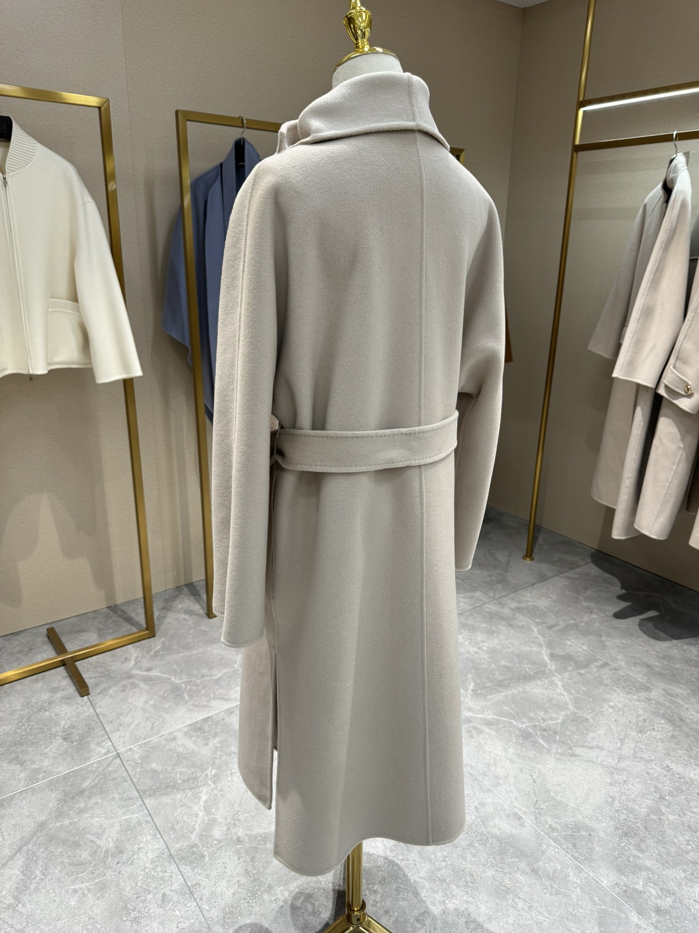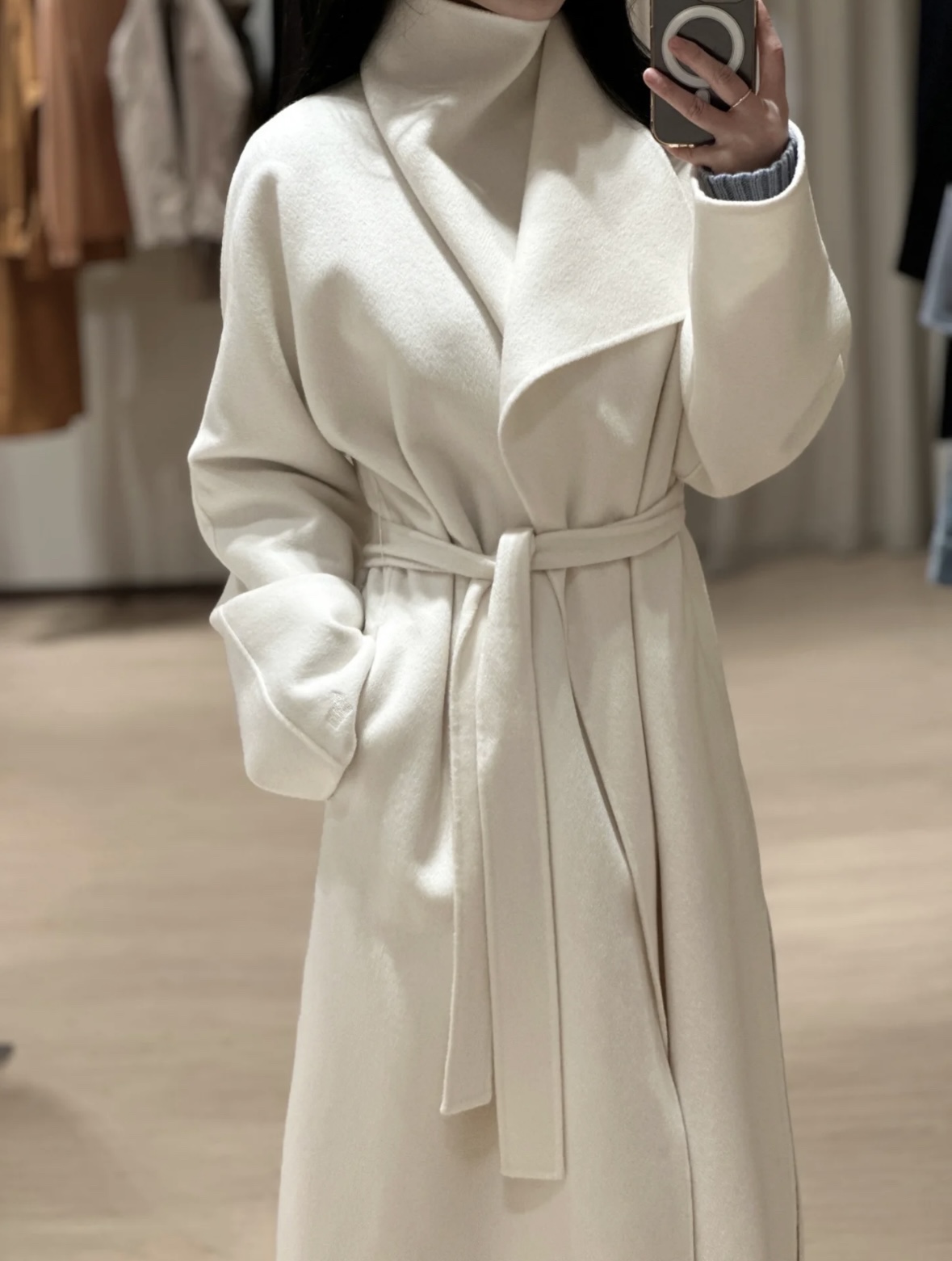 头肩比例线条流畅自然张弛出强大气场。造型感腰带解锁“浴袍风”穿法!