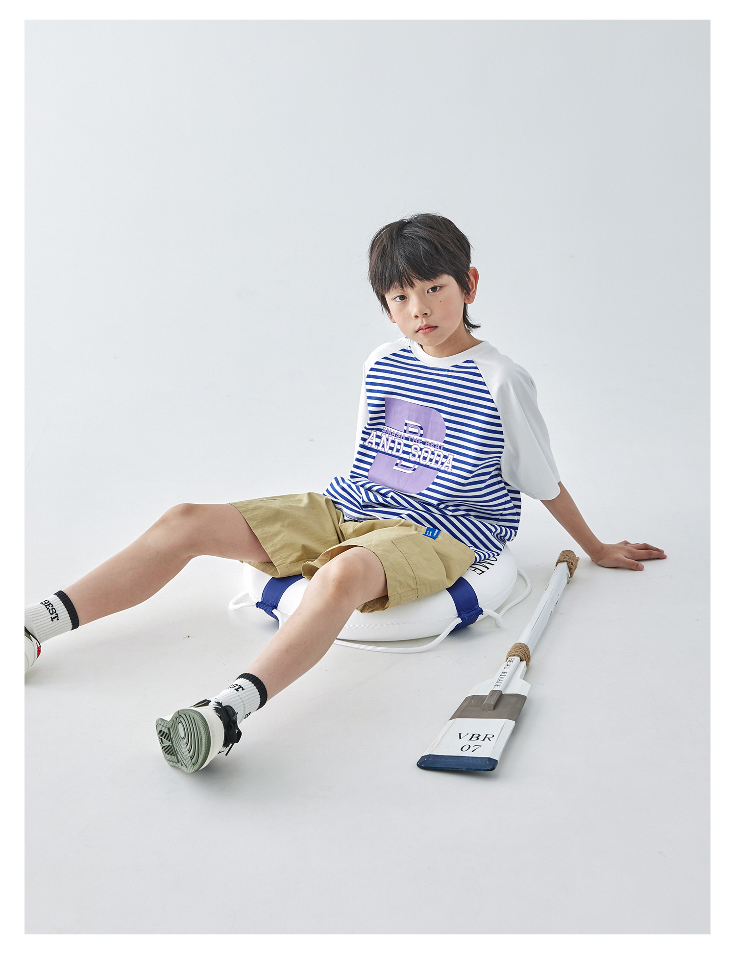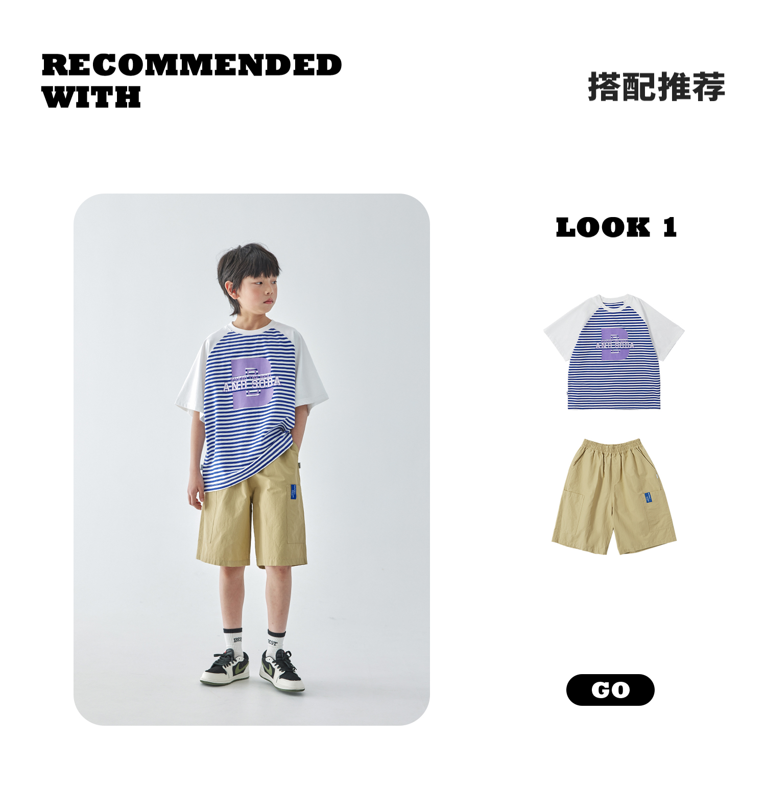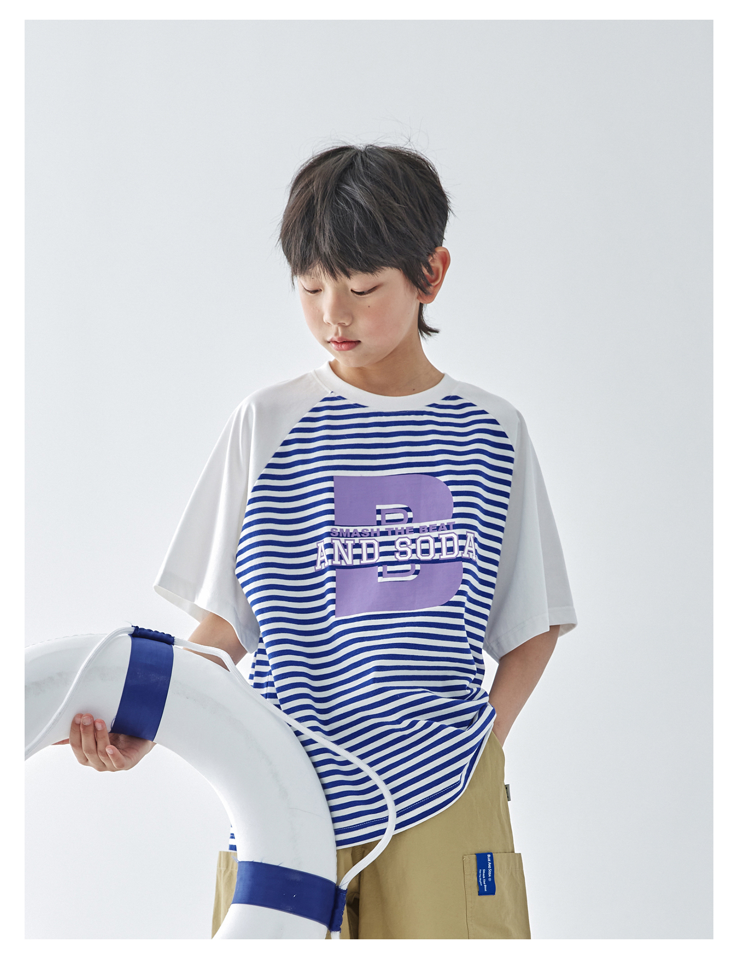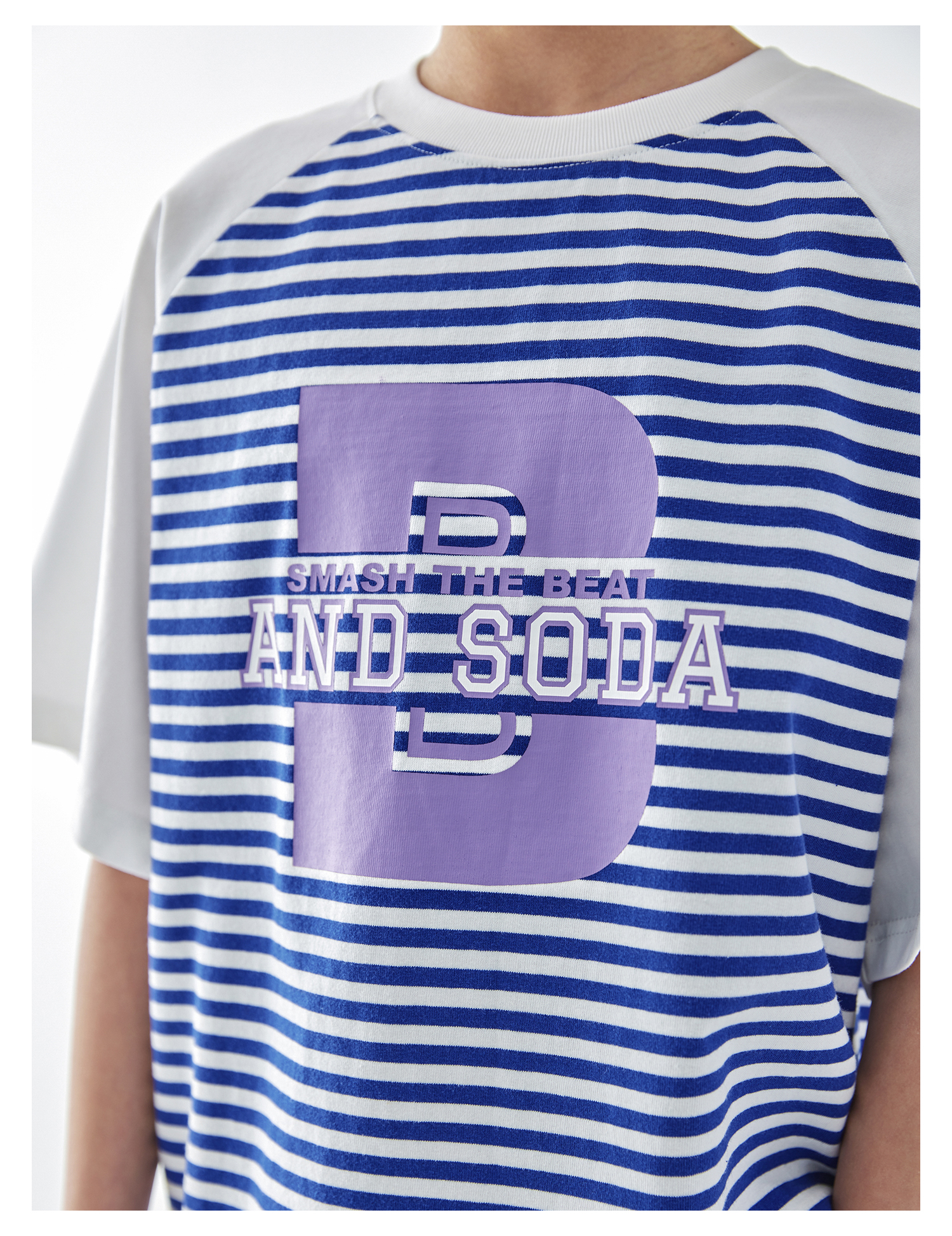 蓝汽水条纹字母印花T恤856B256047JX 商品图1