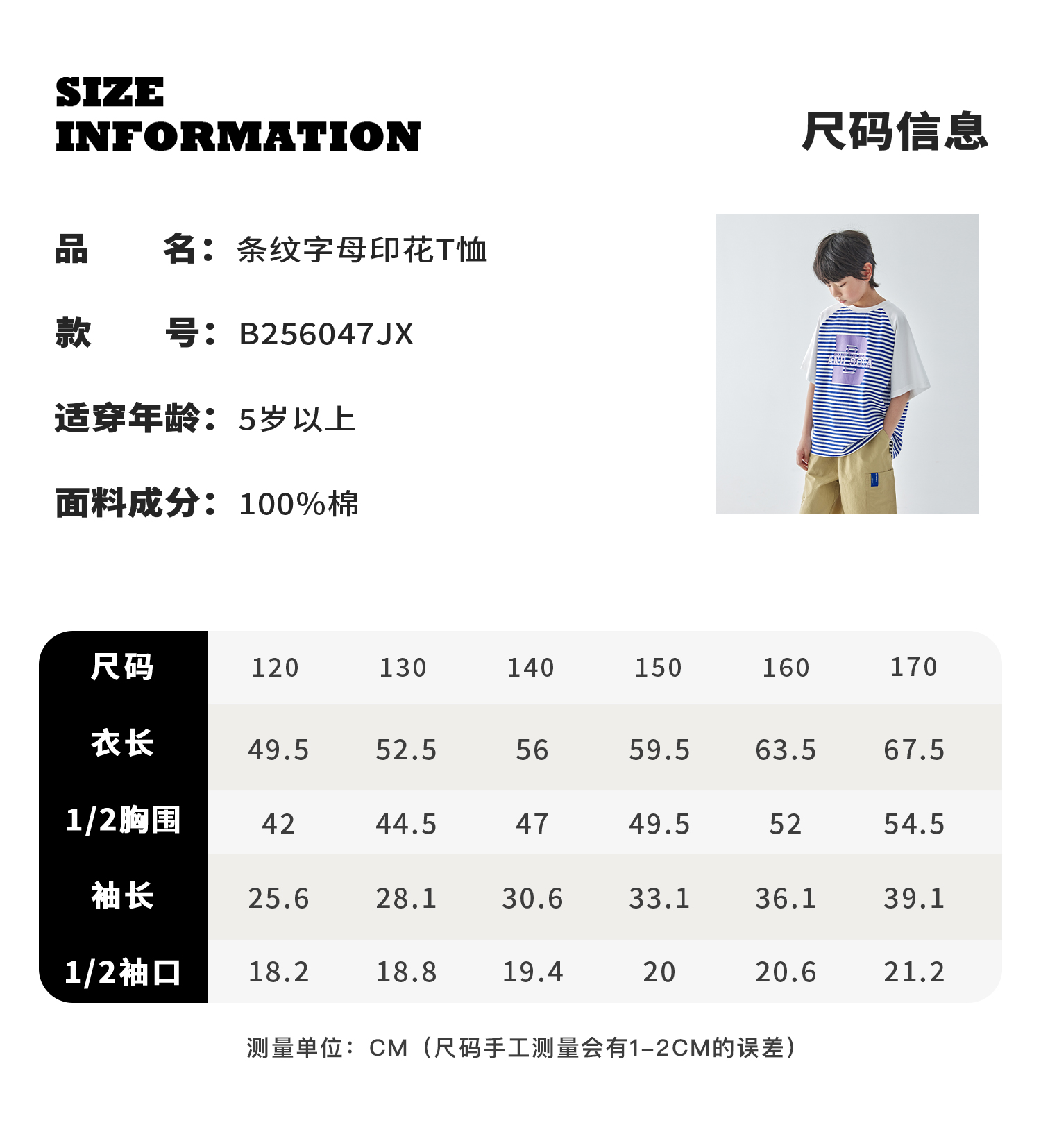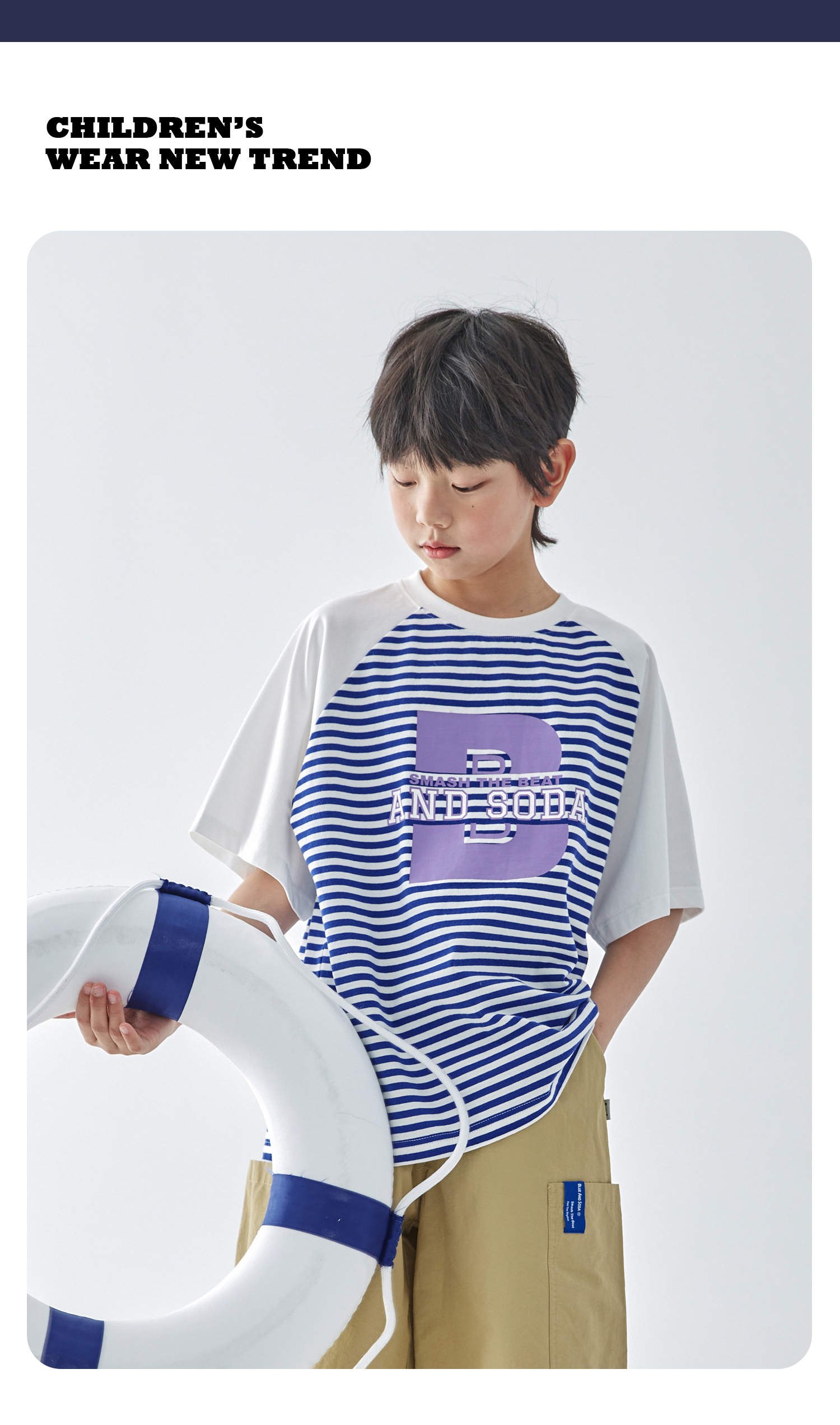 蓝汽水条纹字母印花T恤856B256047JX 商品图4