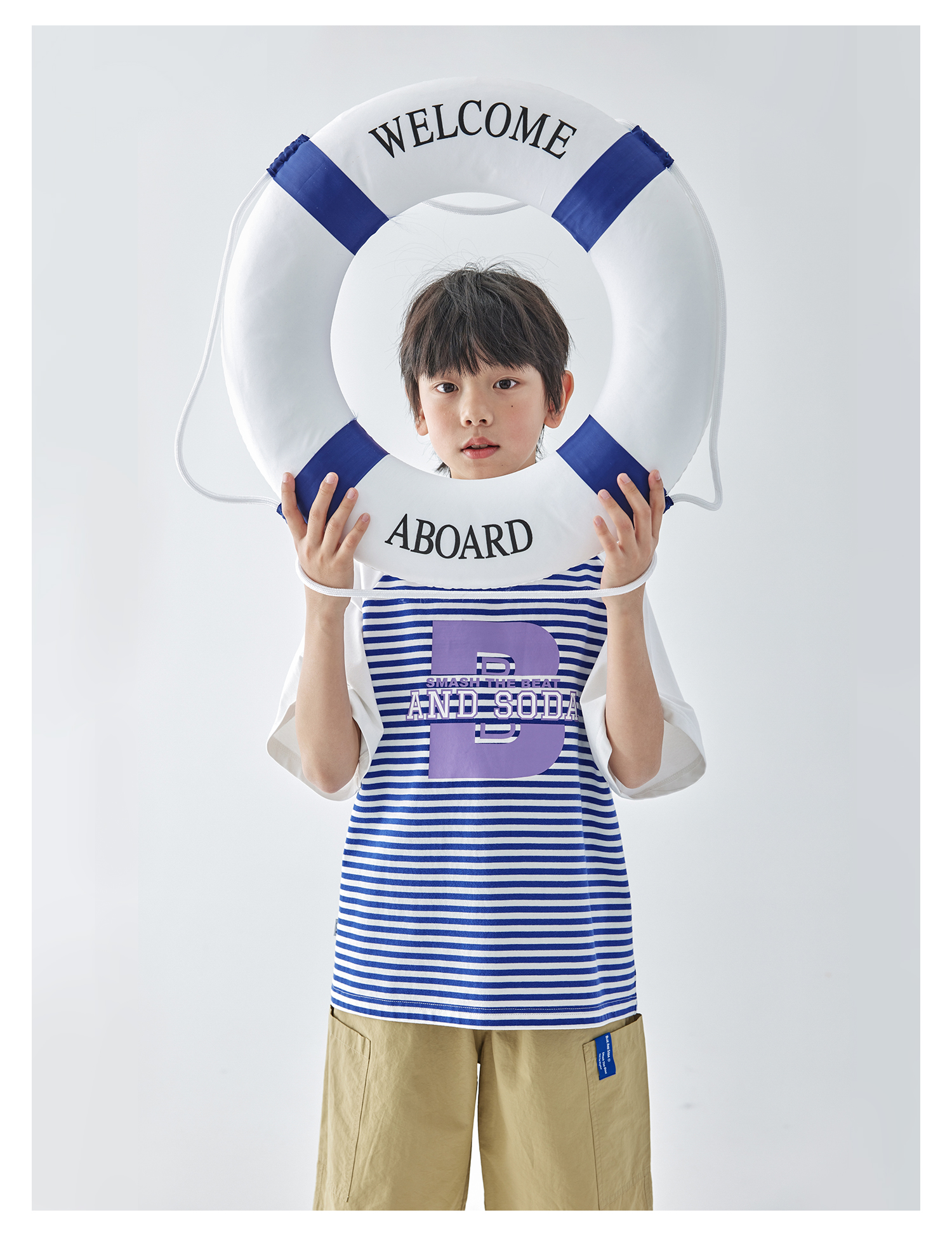 蓝汽水条纹字母印花T恤856B256047JX 商品图2