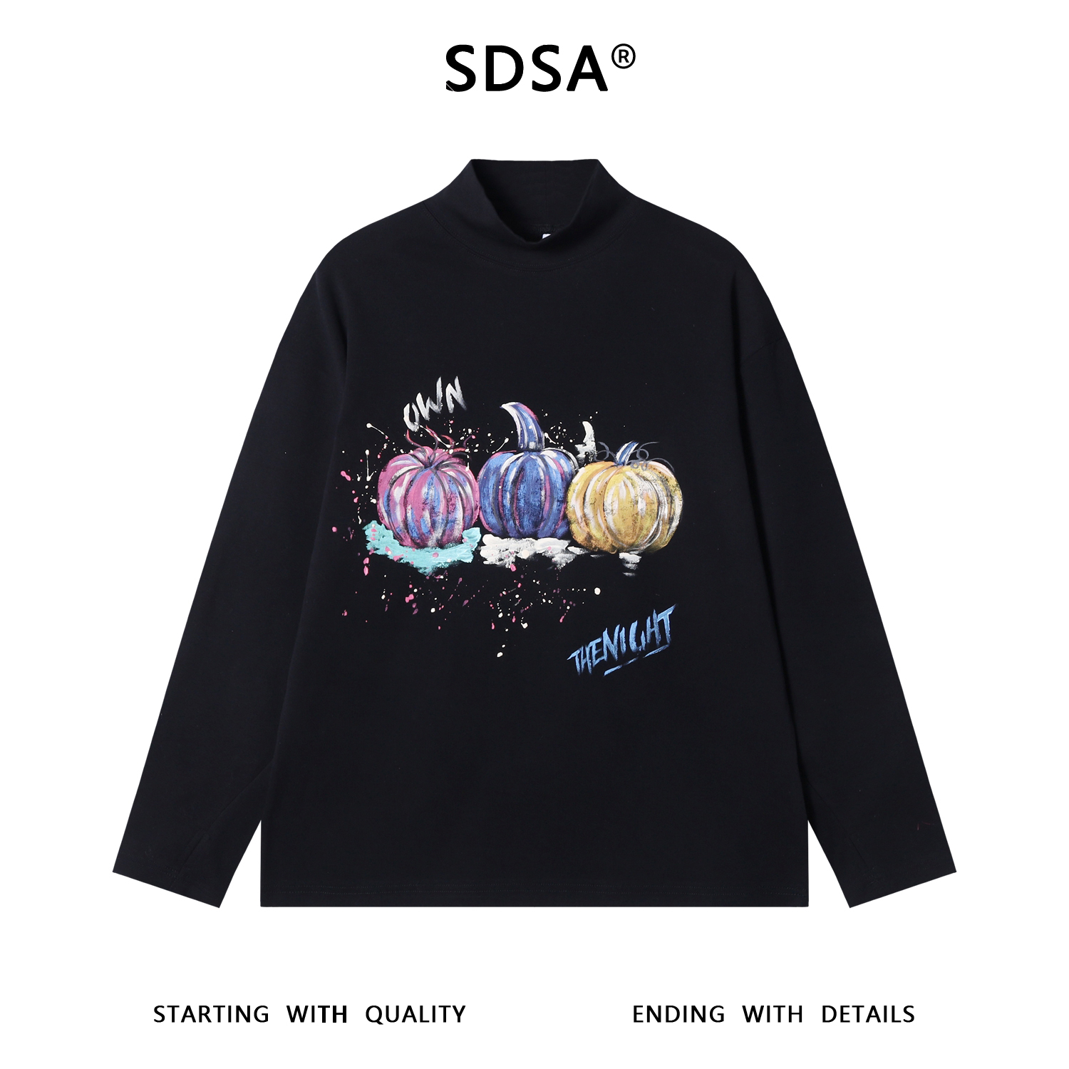 T4983SDSA男士秋冬新款痞帅男装潮牌撞色南瓜印花半高领长袖T恤时尚潮
