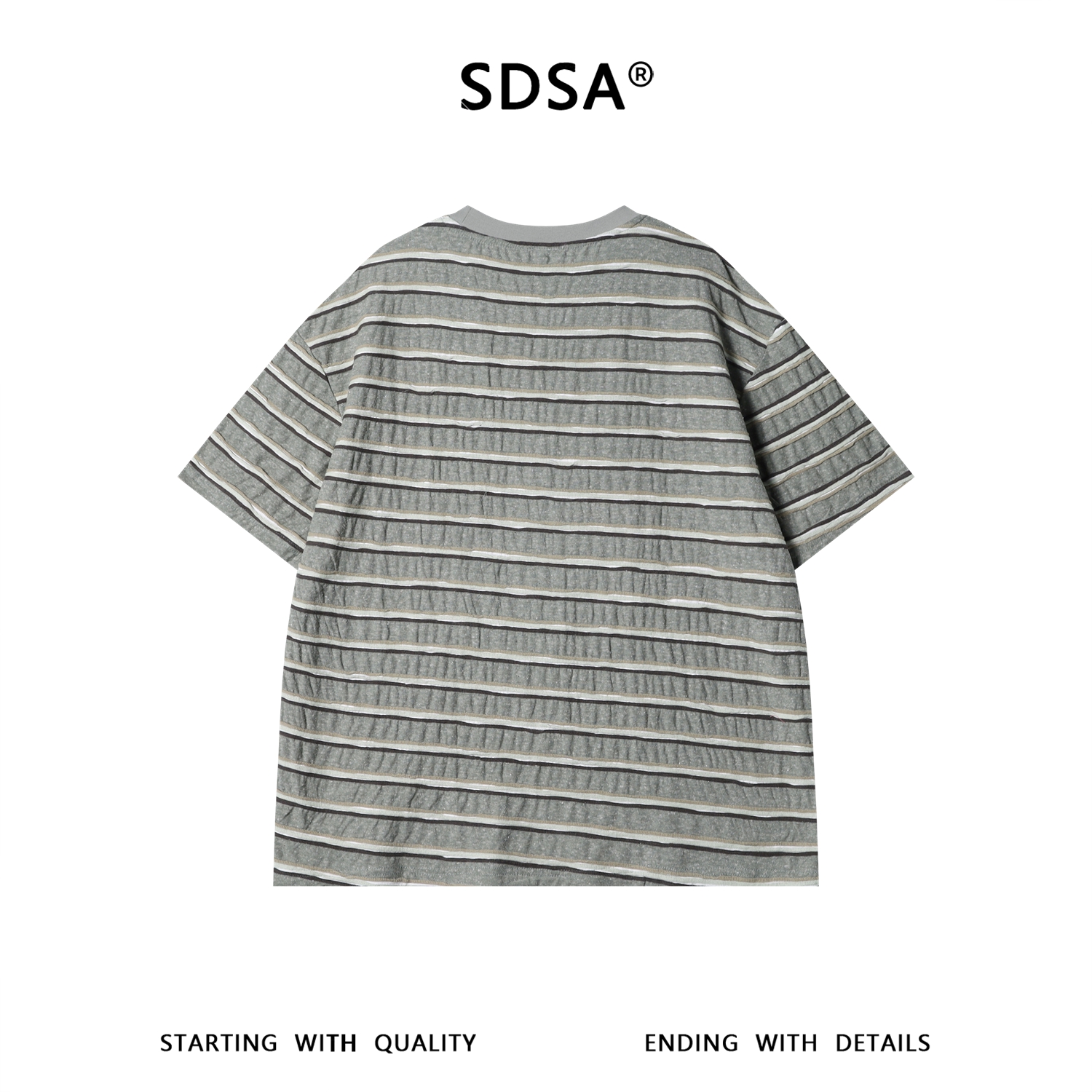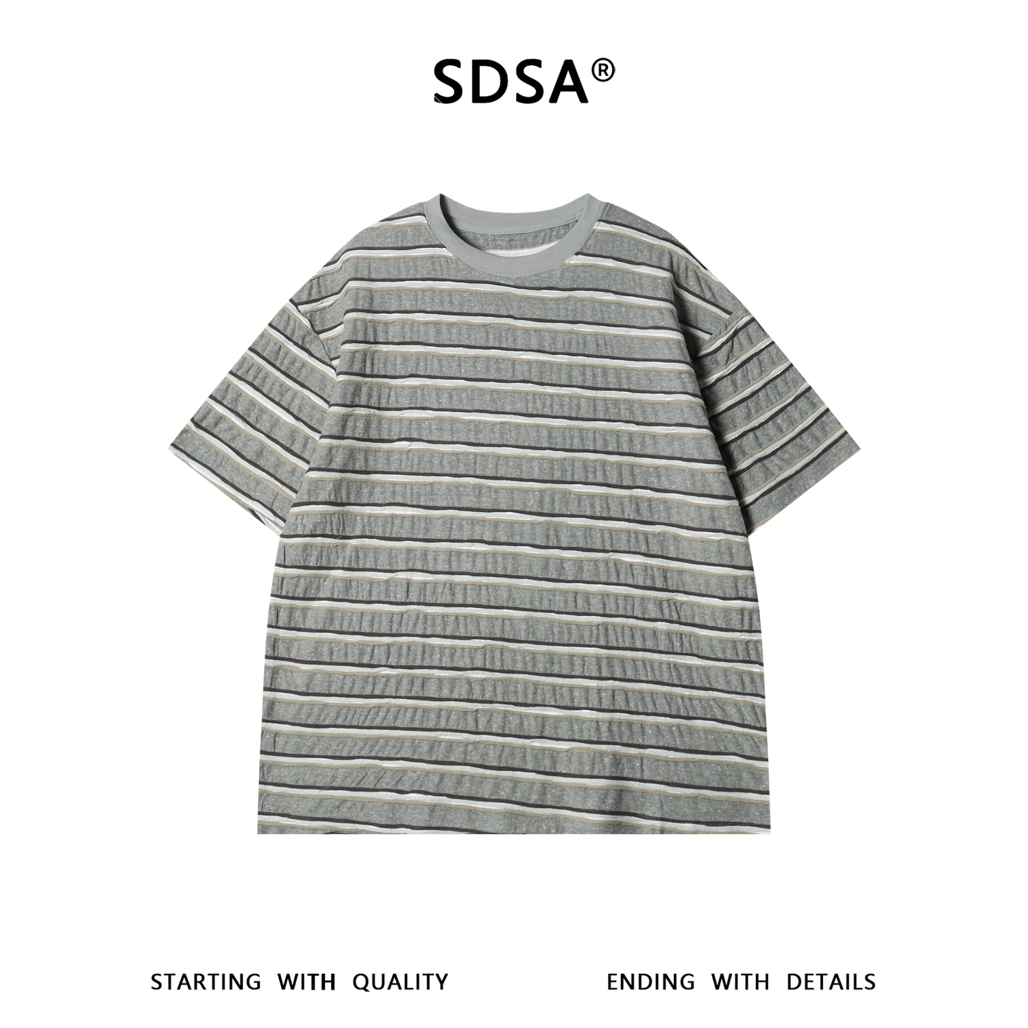 SDSA男装2026新款高贵轻奢美式简约立体条纹圆领短袖T恤百搭时尚