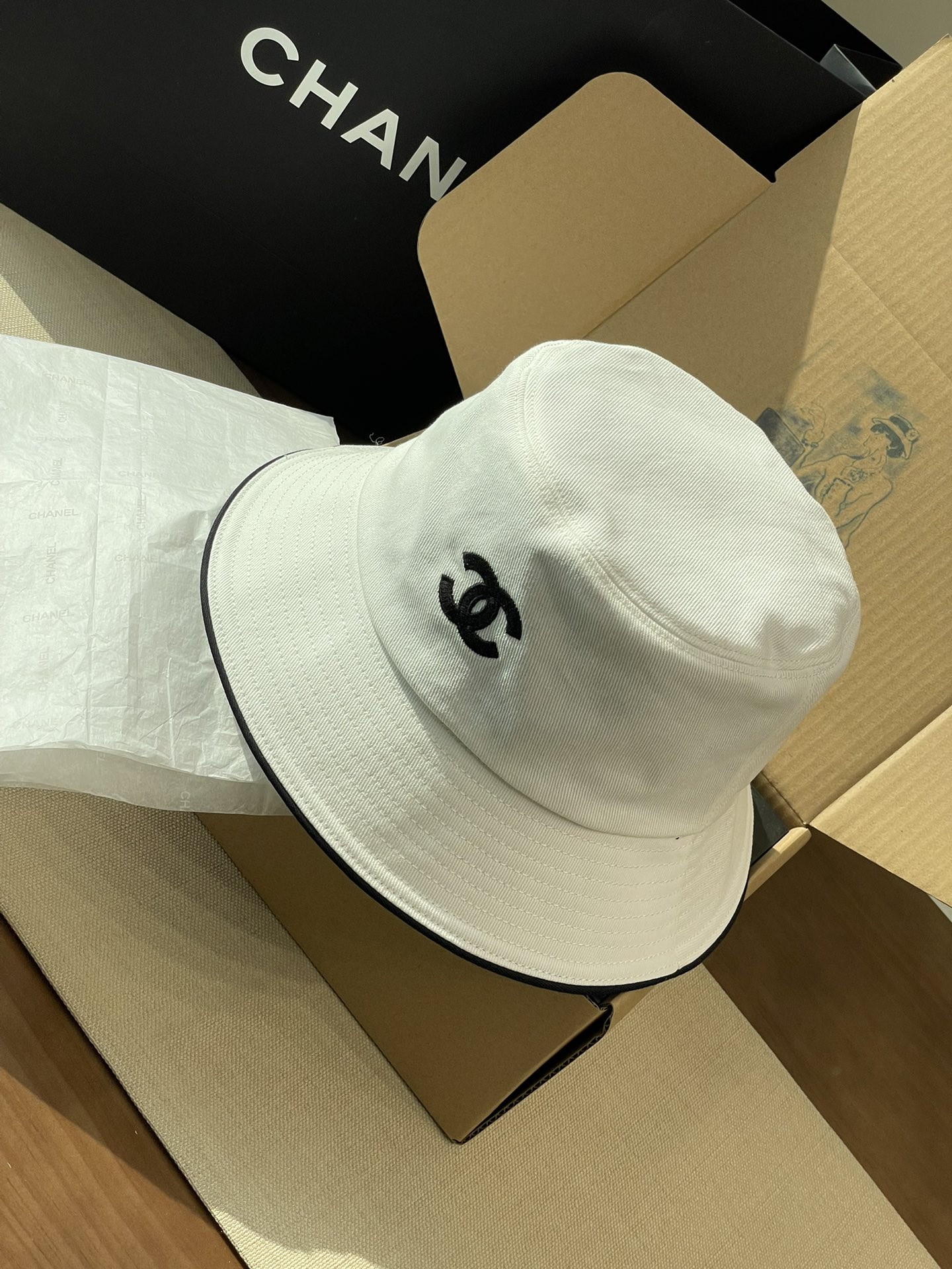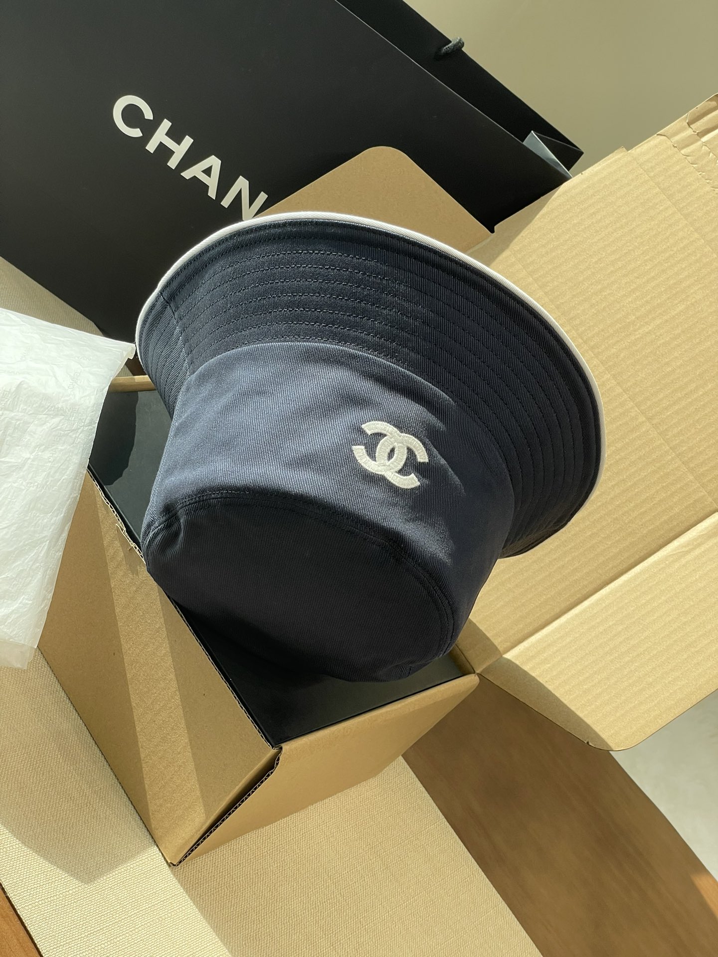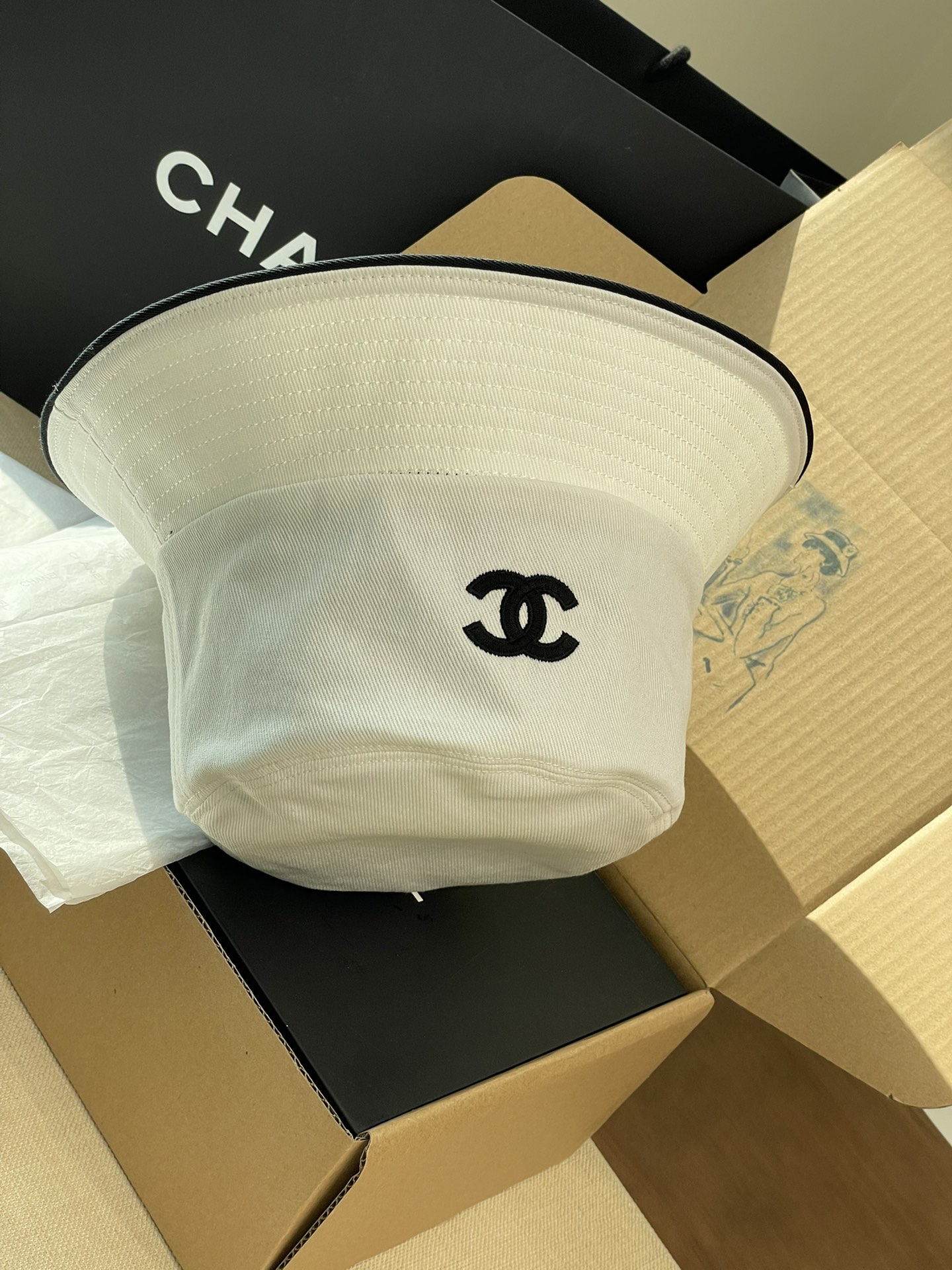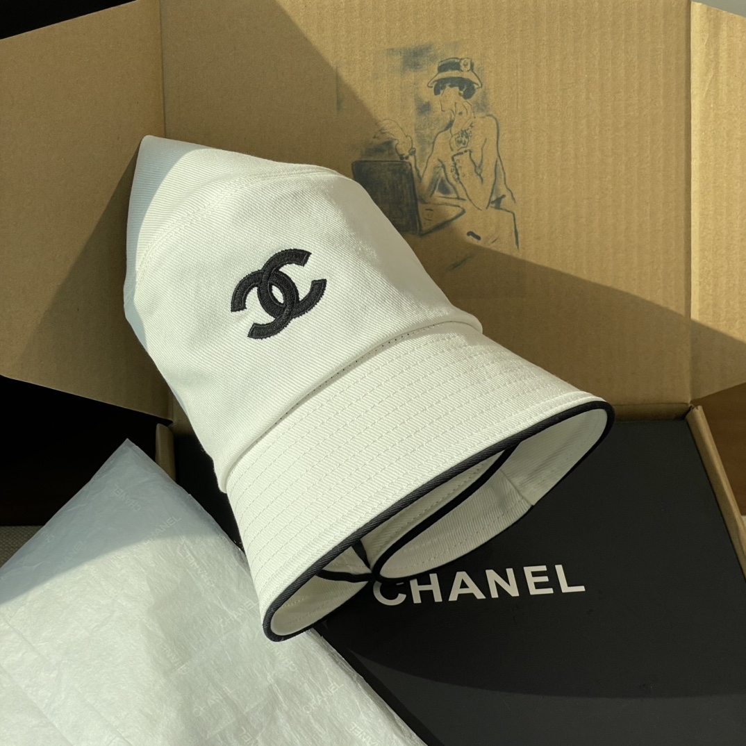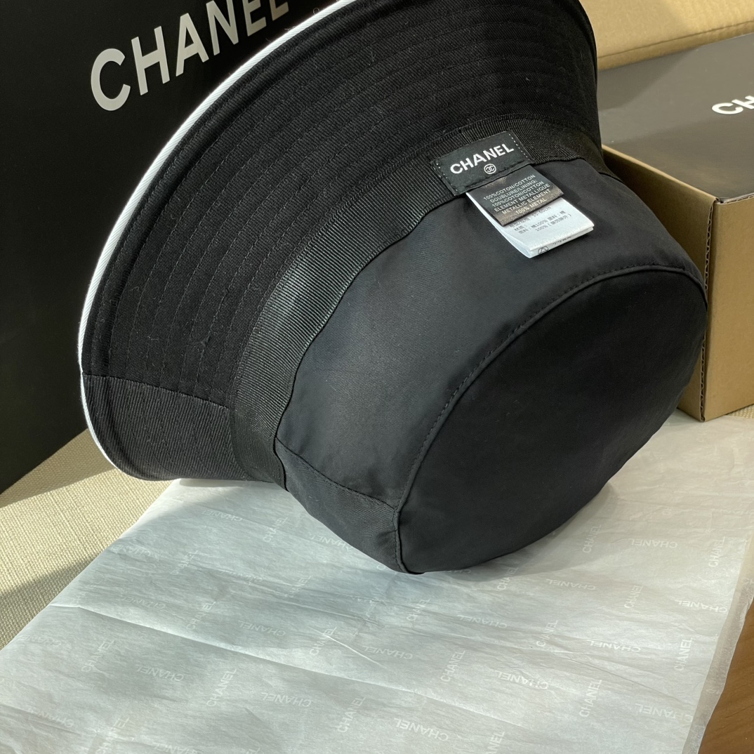 2025 新款Chanel香奈儿渔夫帽,拥有经典的黑、白、蓝三种颜色。