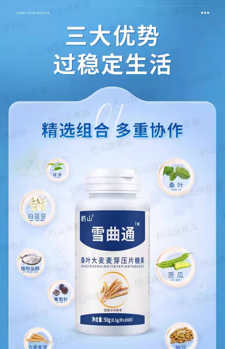 2、改善三高:雪曲通当中所含有的桑叶、大麦的原材料提取物成分具有较高的活性,通过服用之后能促进胰岛分泌帮助降低胰岛素的分解速度,从而达到调控血糖的目的。另外也可以加快血液的流动扩张血管预防和缓解高血压高血脂。