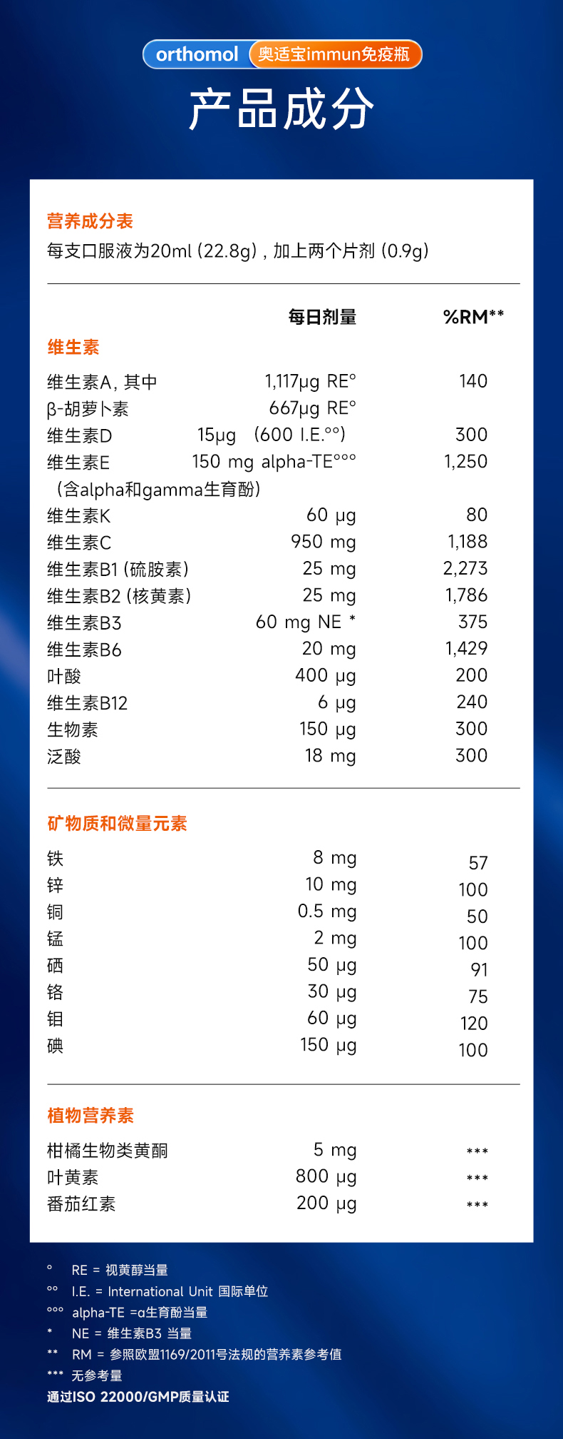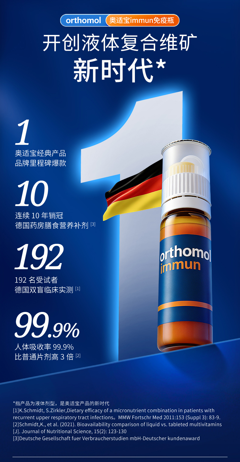 【解先生专属】德国奥适宝维生素复合综合多种矿物质抵抗力orthomol immun免疫瓶 3盒装