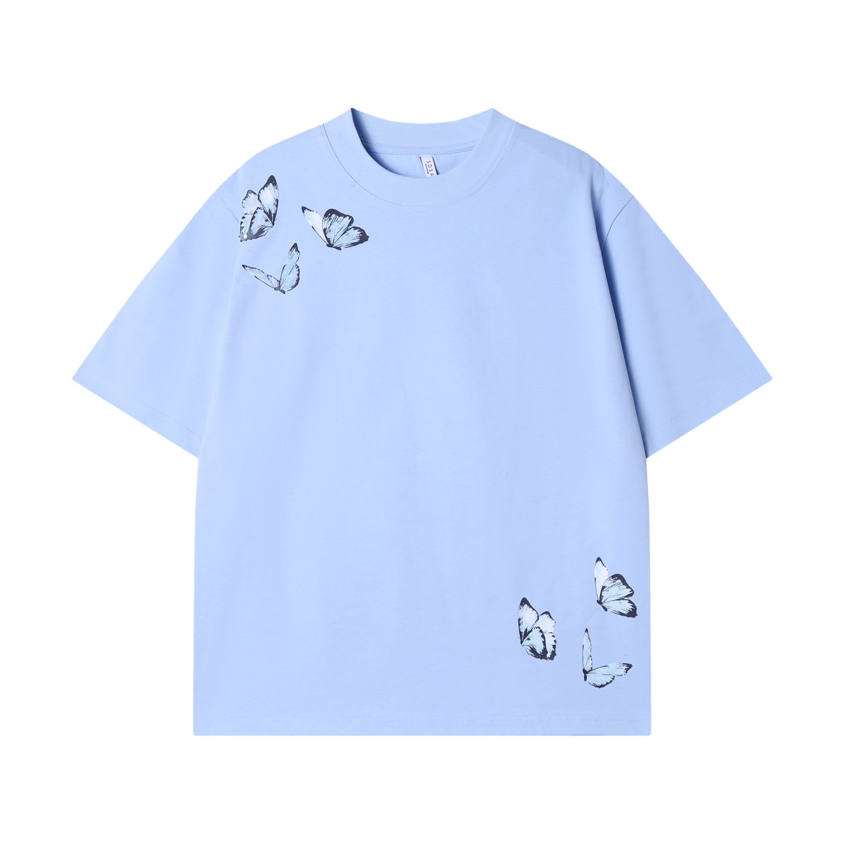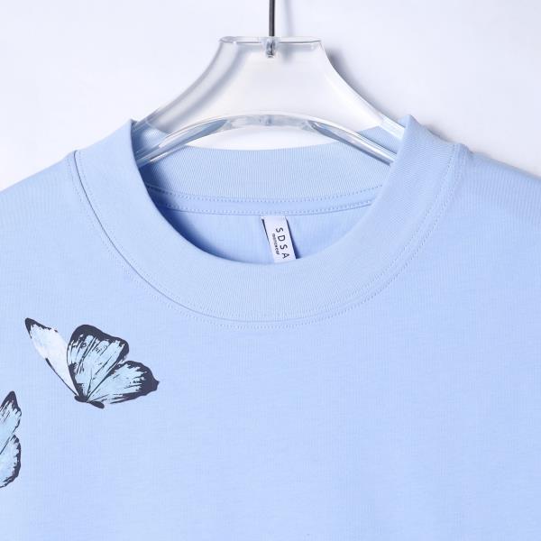 T2208早春新款时尚个性简约蝴蝶印花圆领短袖T恤潮流百搭情侣套头上衣