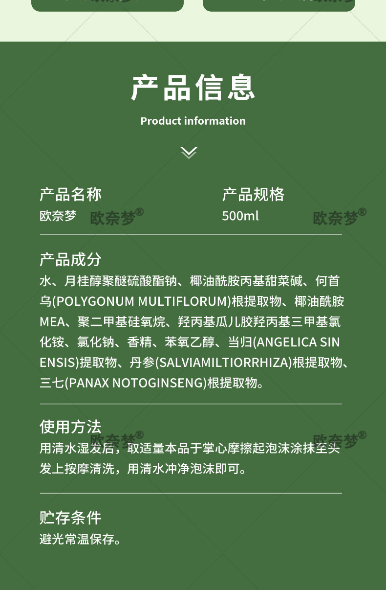 欧奈梦 洗发水官方正品 防脱育发固发滋养受损修护蓬松洗 欧奈梦