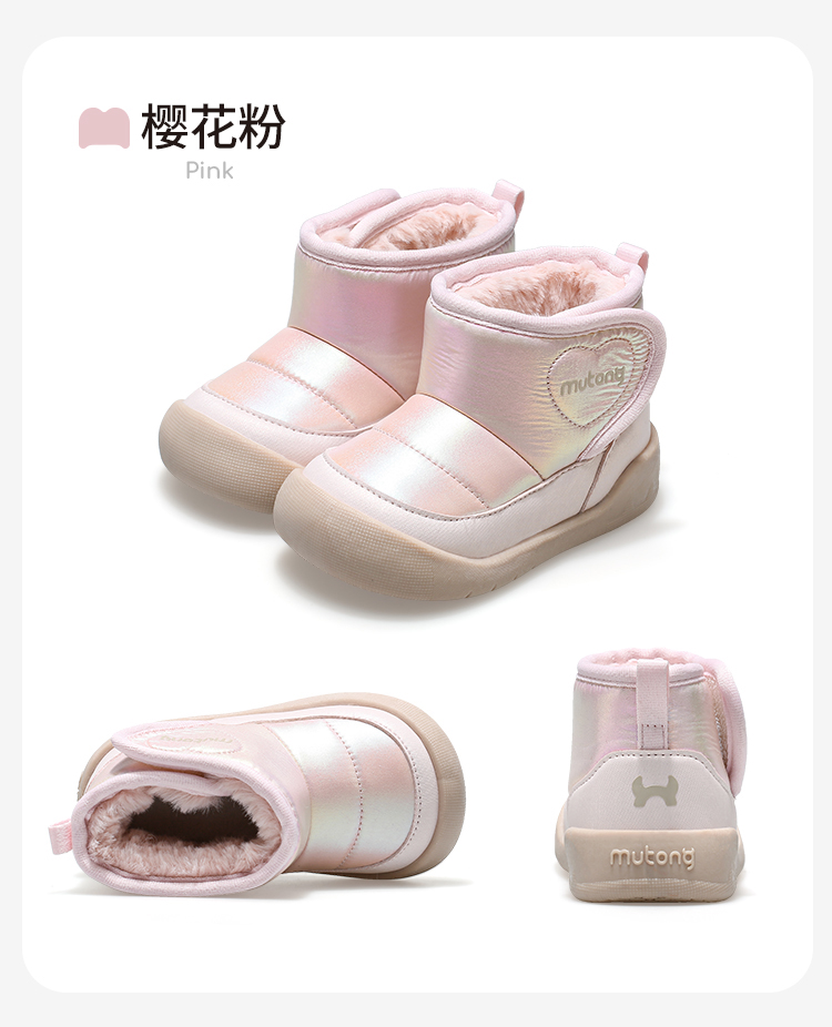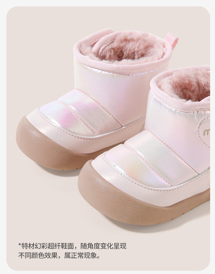 牧童冬季新款加绒公主宝宝雪地靴保暖防滑软底女童可爱高筒棉鞋