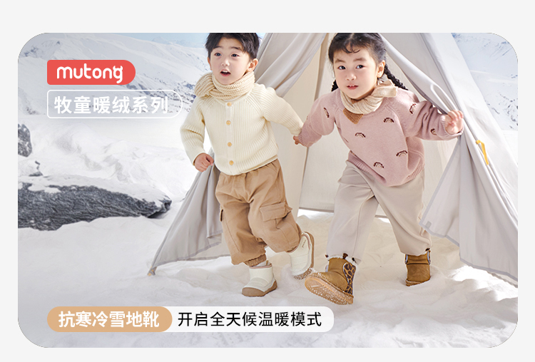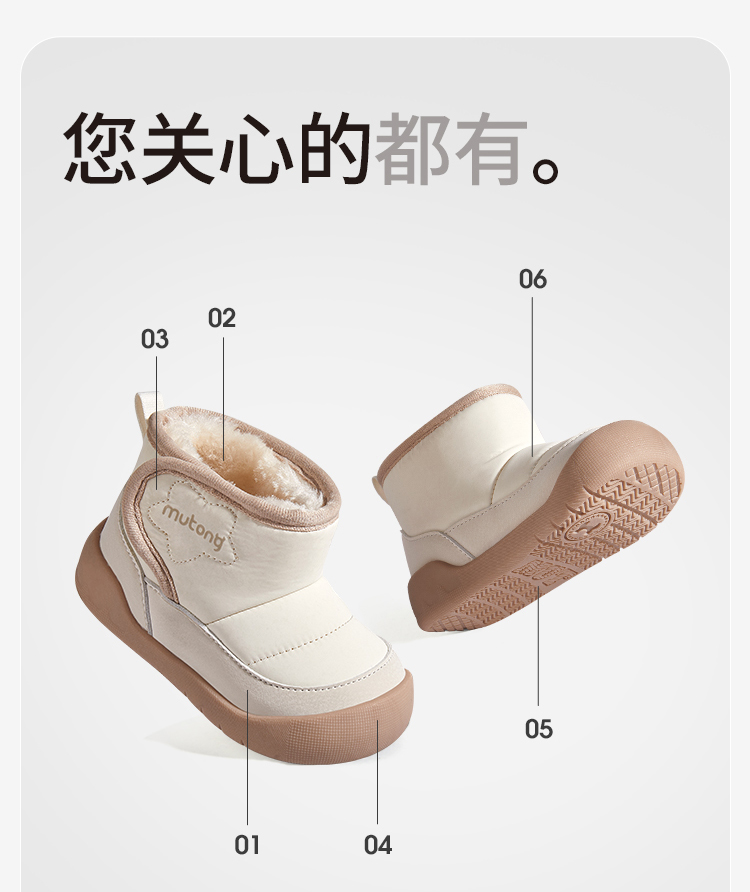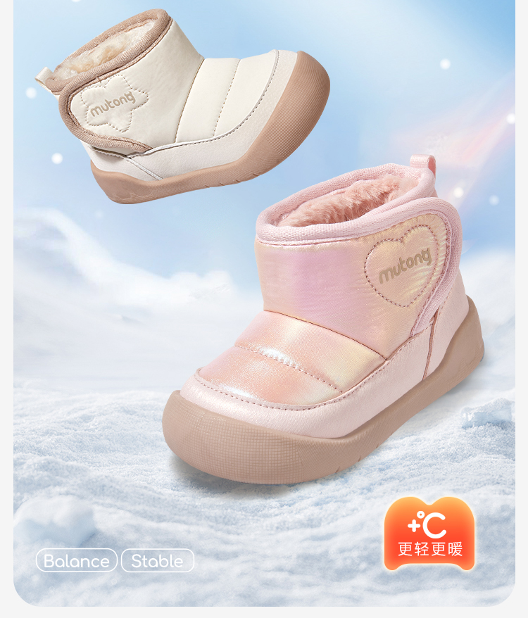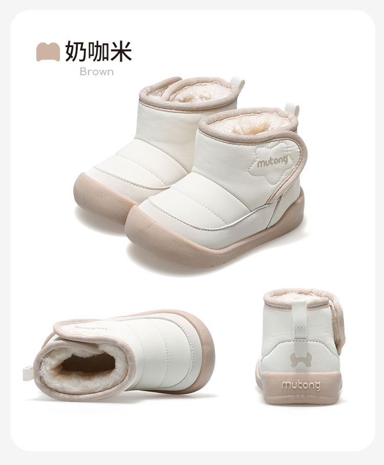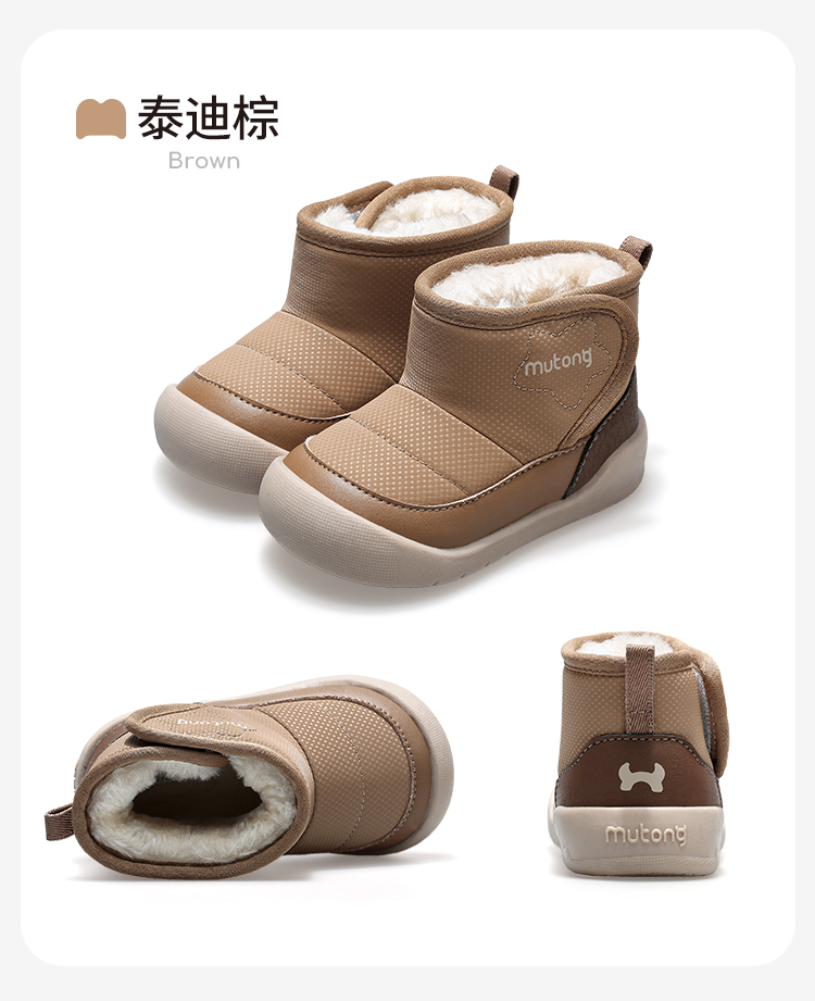 牧童2025冬季宝宝保暖加绒机能鞋防滑软底学步鞋儿童皮面加绒棉鞋