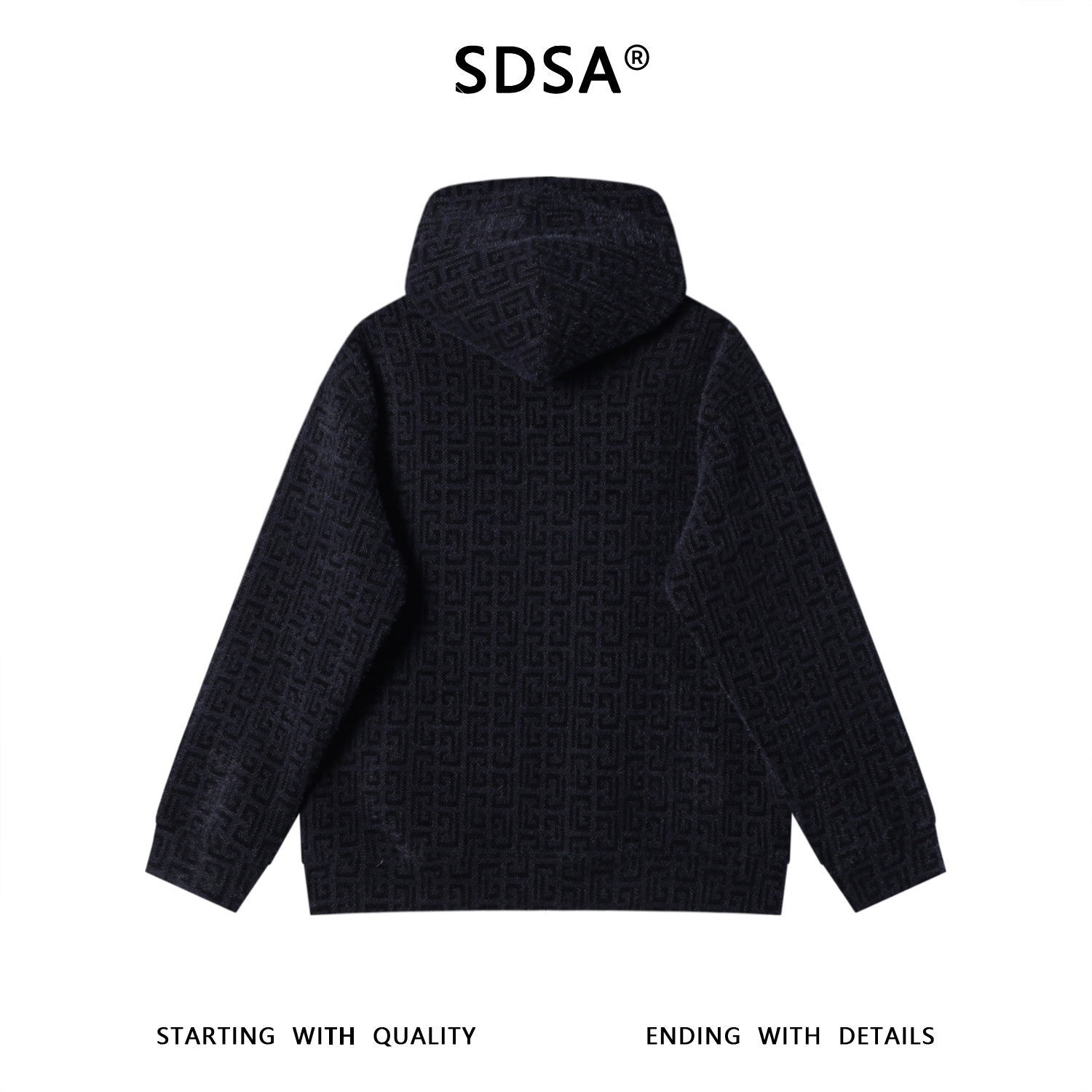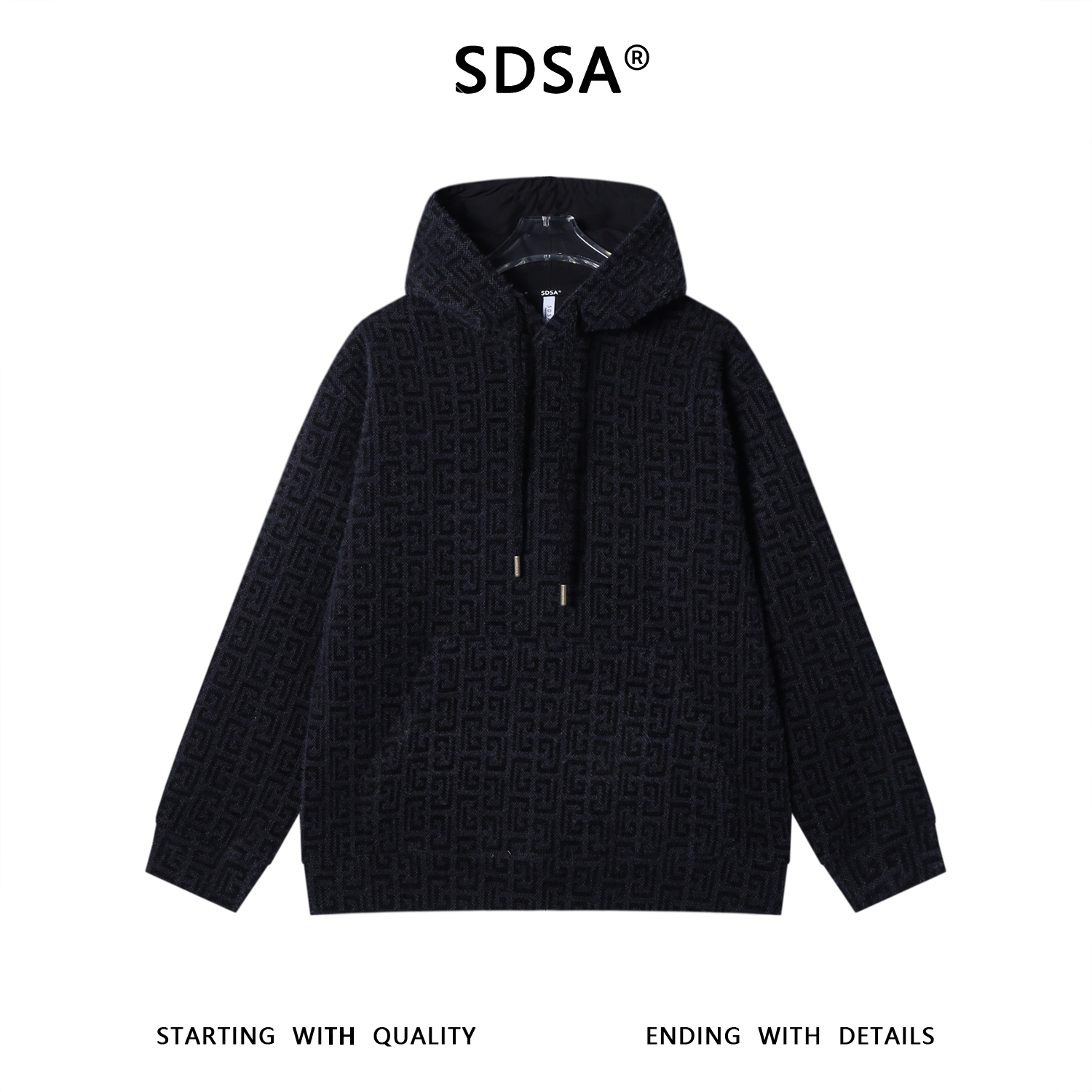 SDSA男士秋冬新款痞帅男装潮牌撞色提花抽绳连帽卫衣百搭套头上衣