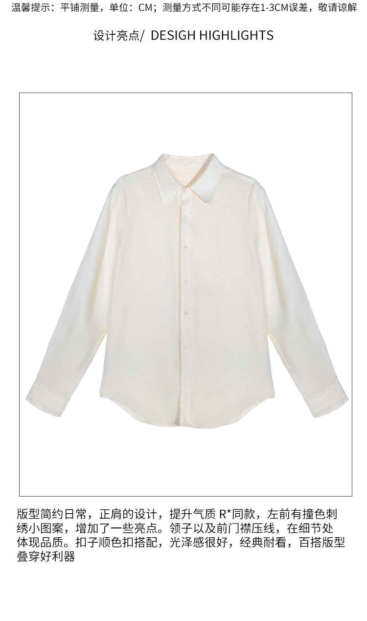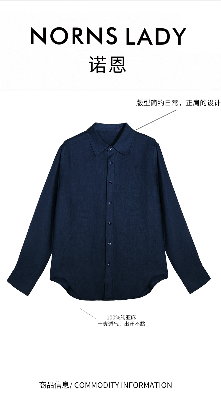 NORNS LADY诺恩 秋季新款亚麻衬衫 纯色POLO领经典时尚百搭长袖上衣 T25SM94439-12.1