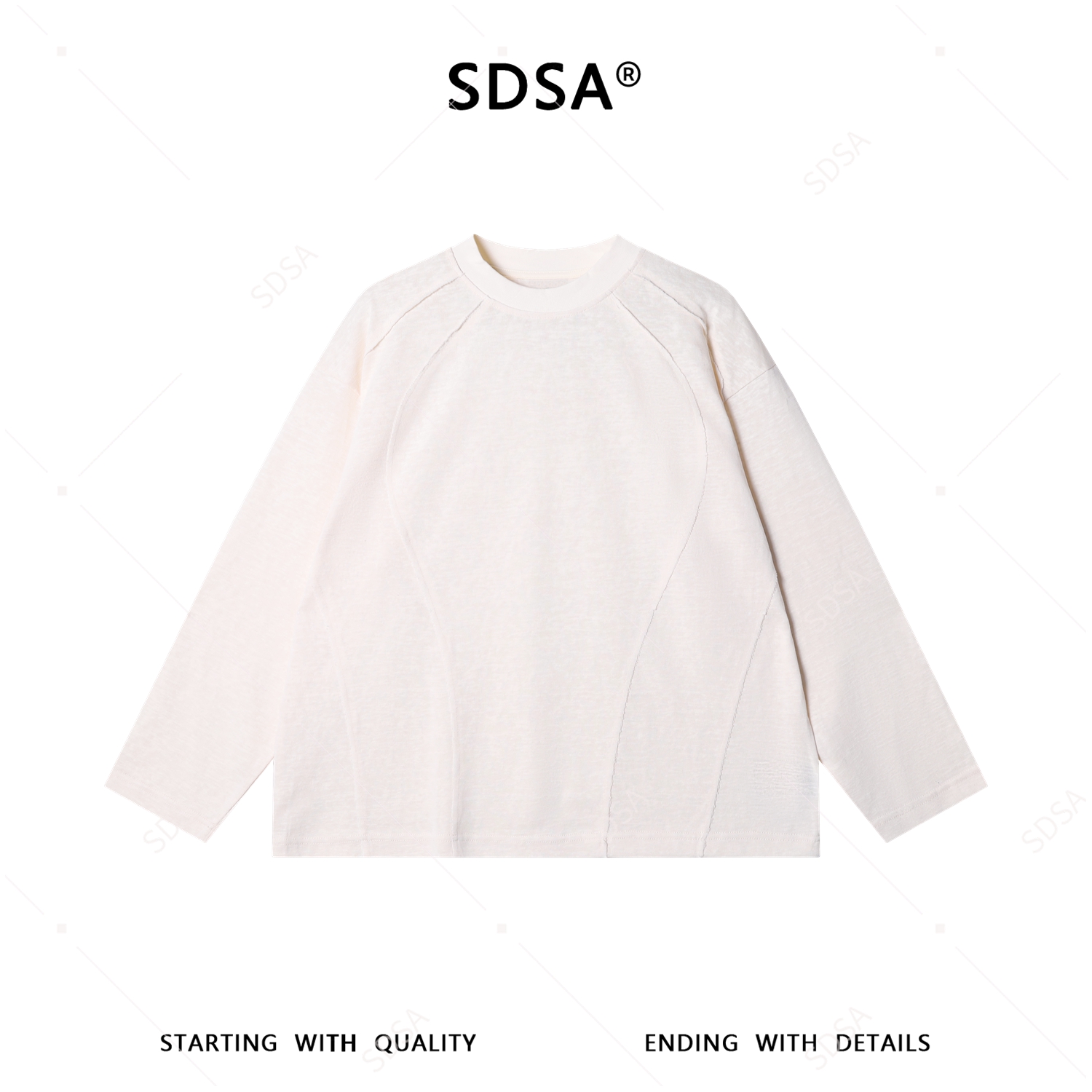 J678SDSA男士秋冬新款痞帅男装韩版纯色解构褶皱圆领长袖T恤百搭舒适