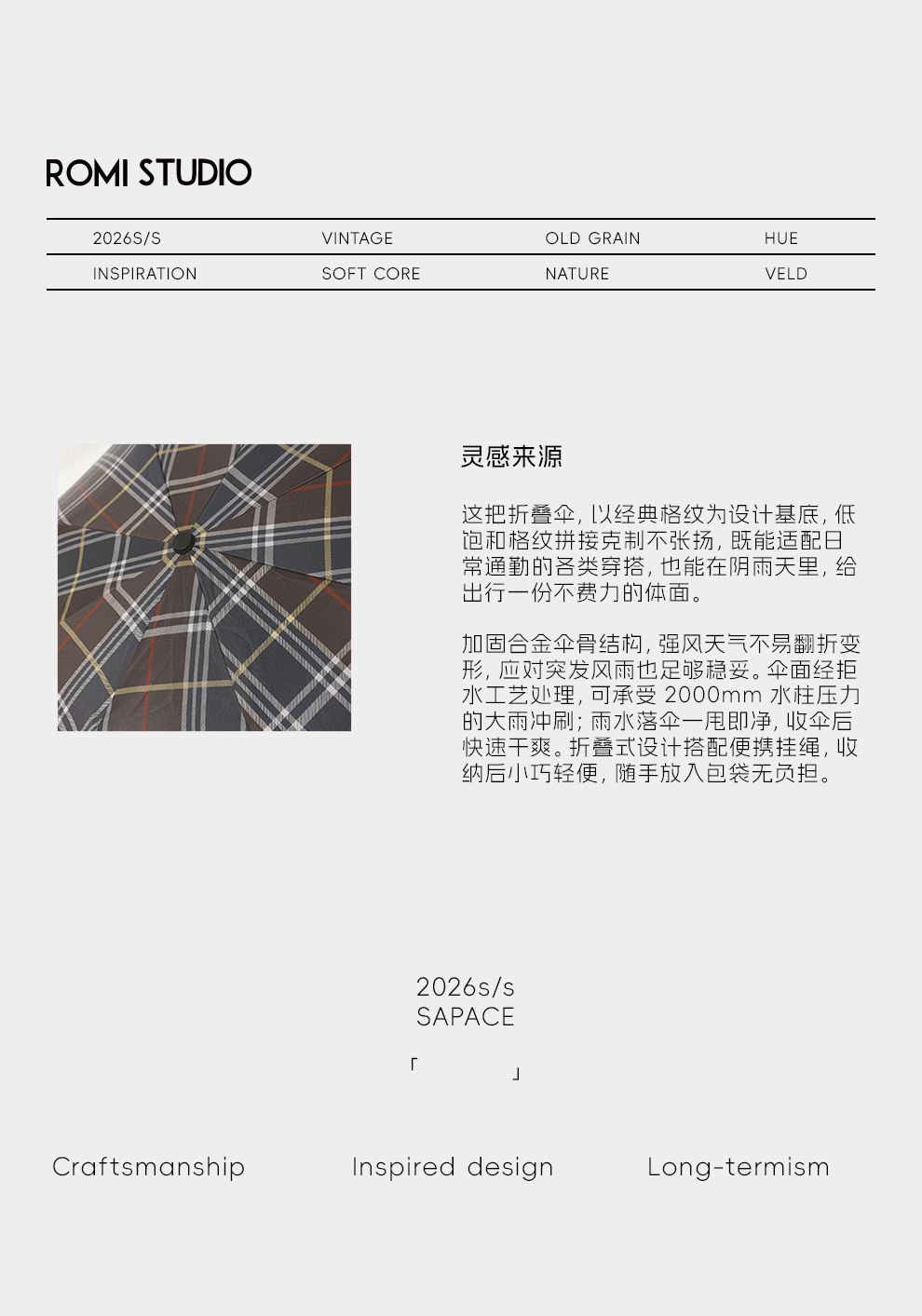 ROMI STUDIO 首饰袋 便捷收纳防晒遮阳伞复古格纹雨伞RWCLP36113