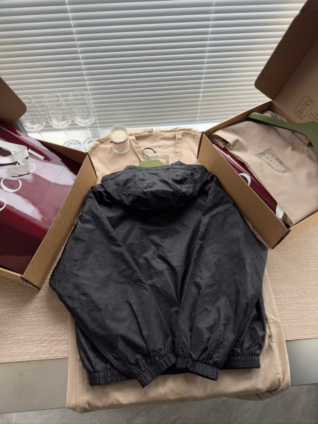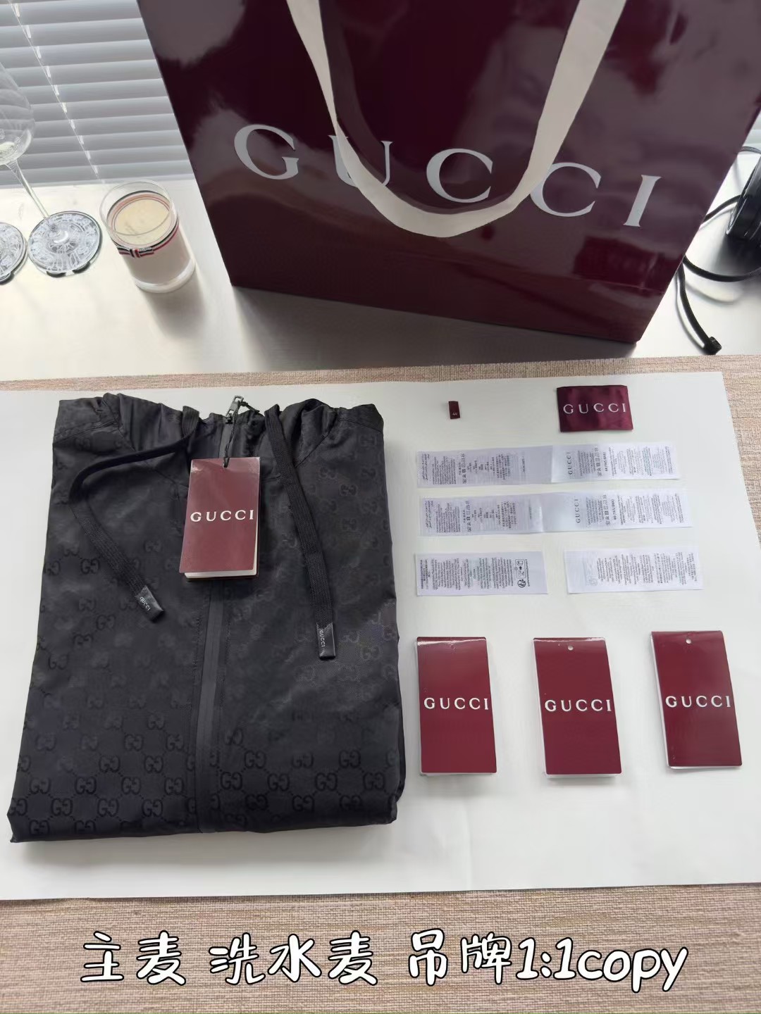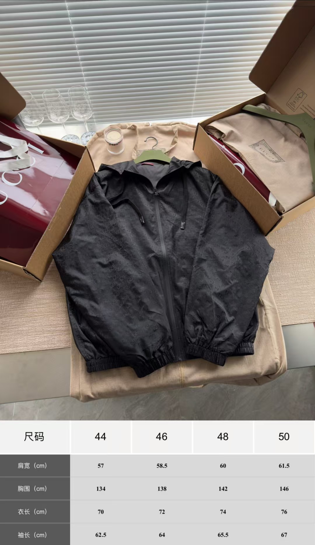 GUCCI秋冬必须自留的单品 满印LOGO回头率真高‼️整件衣服22300购买ZP拆解打造,定织75D尼龙牛津提花面料 加固防水处理 所有五金 辅料 全部开模定制而成 真正做到1:1COPY 闭眼入 码数:44 46 48 50