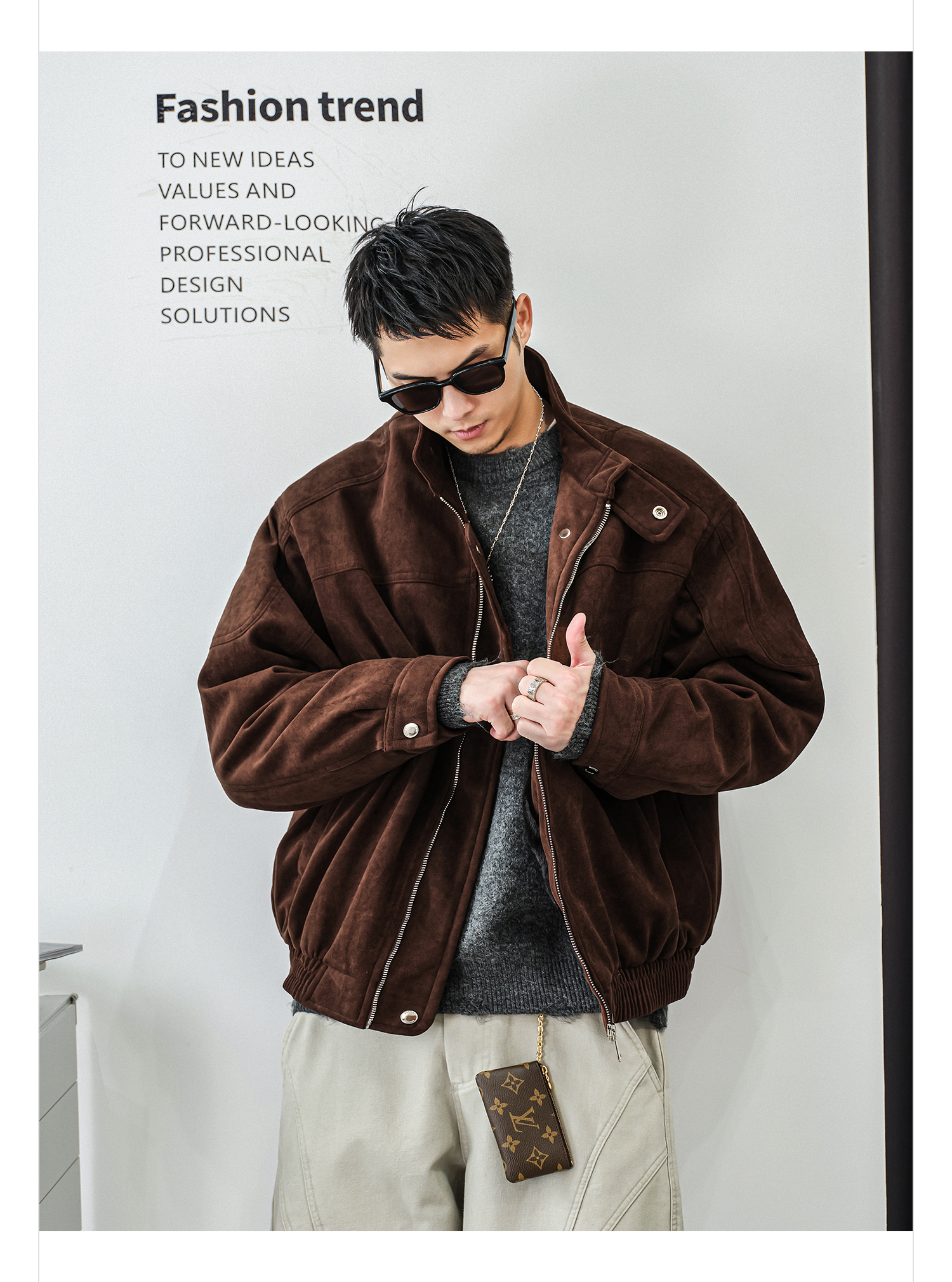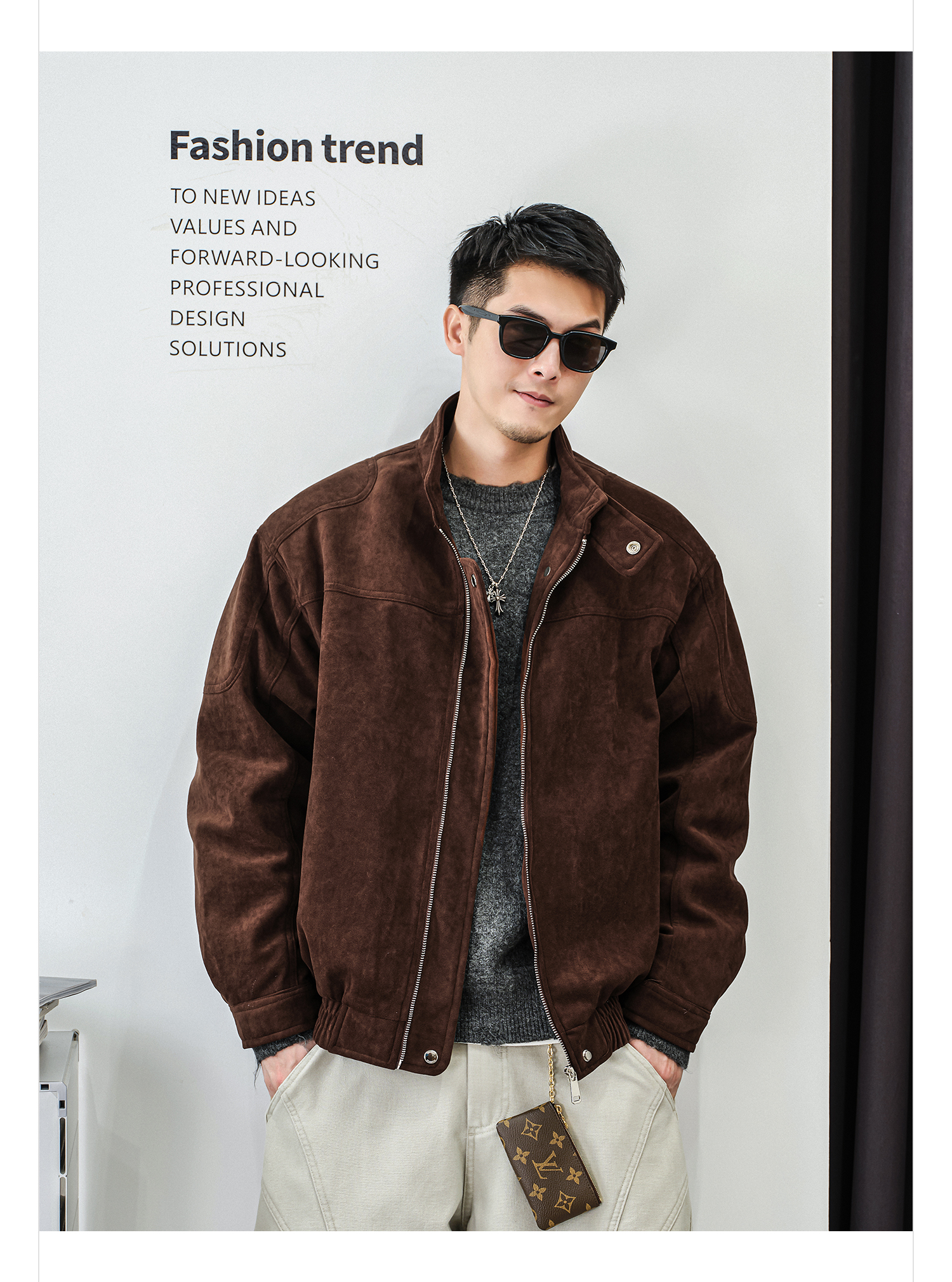 徐太浪【缉明线 复古风】加绒教练夹克男秋冬新款高级感立领外套