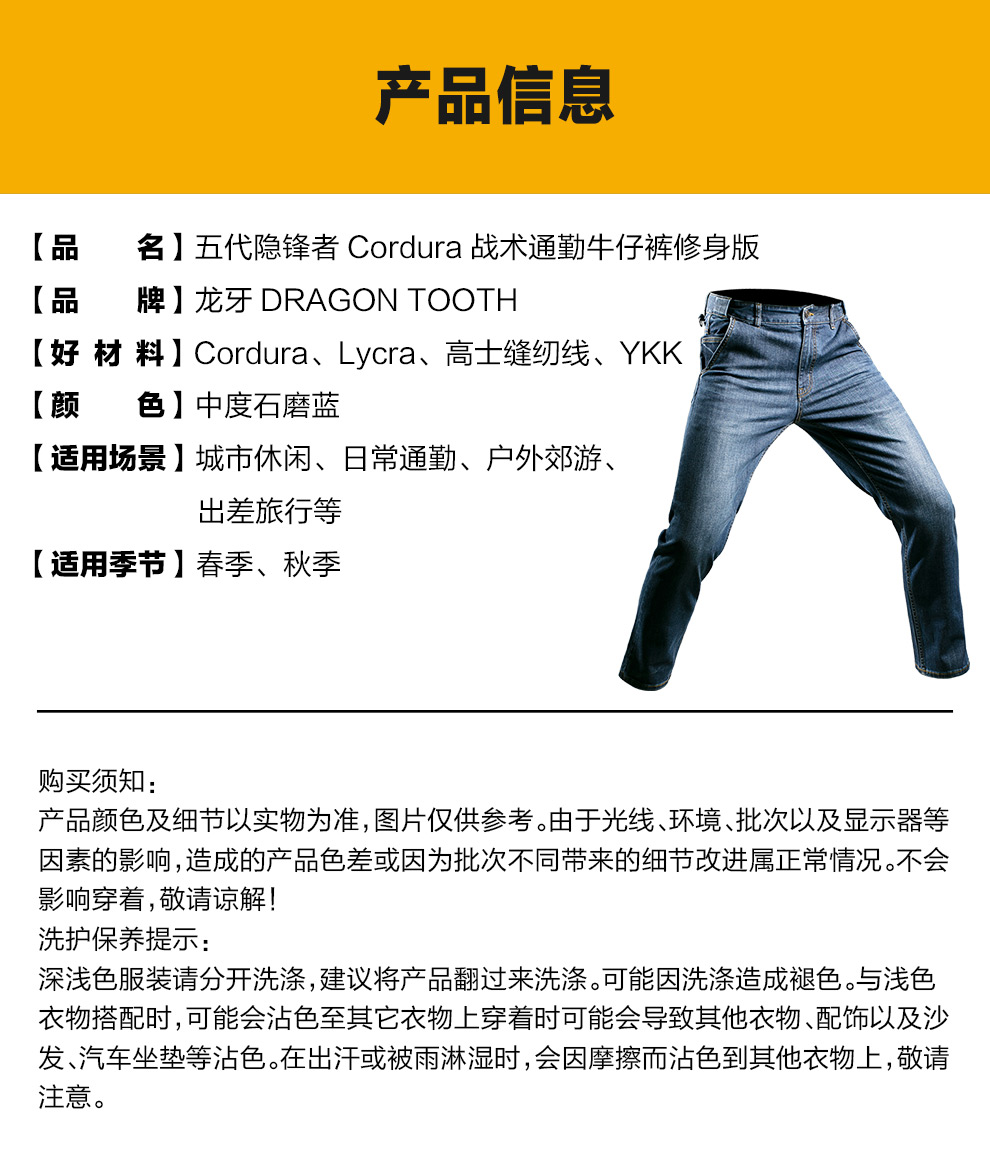 修身版五代隐锋者cordura战术通勤男士牛仔裤修身版休闲户外长裤