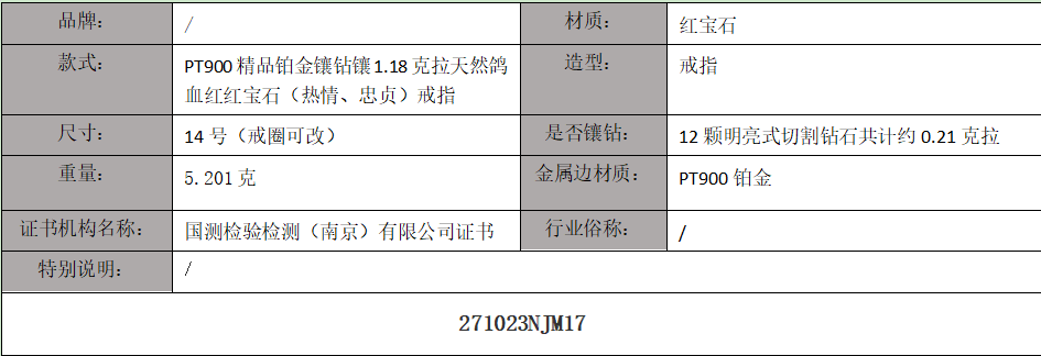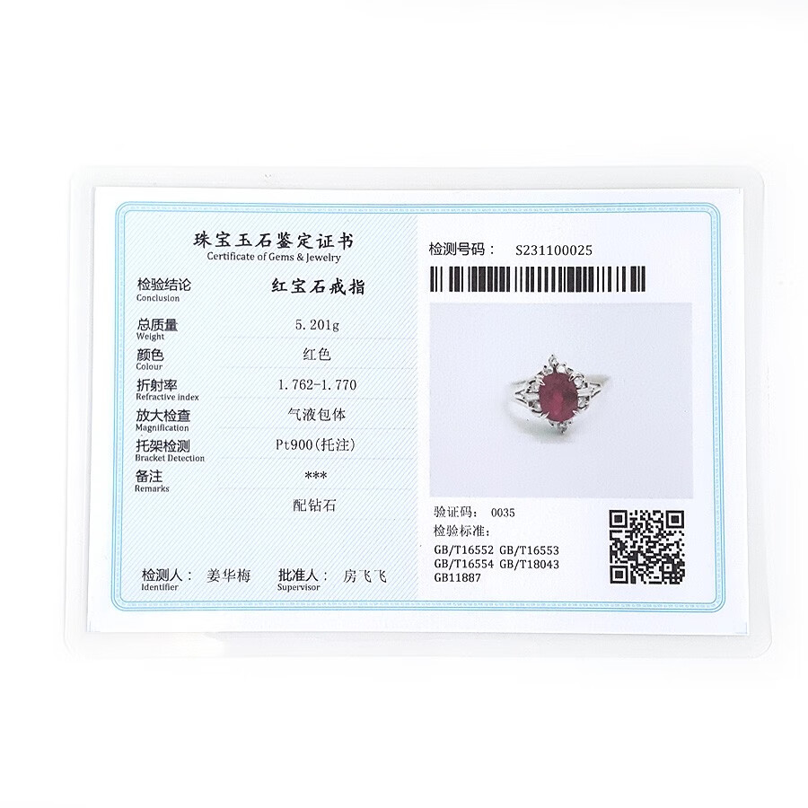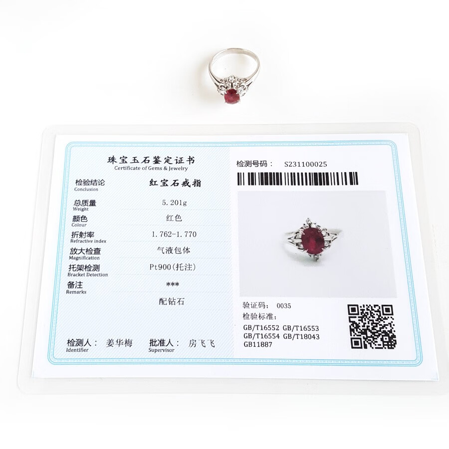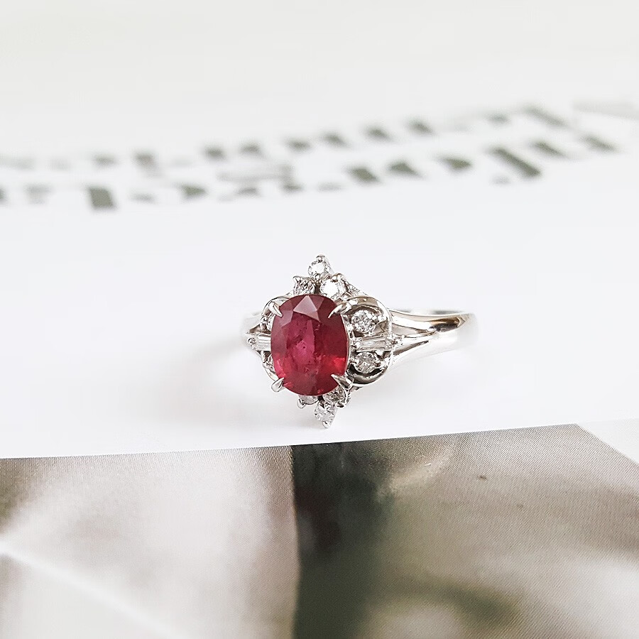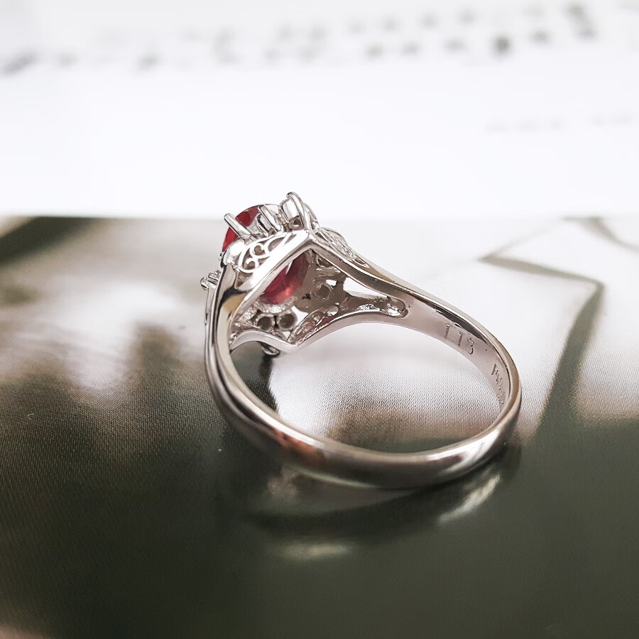 【天然正品】PT900精品铂金镶钻镶1.18克拉天然鸽血红红宝石(热情、忠贞)戒指14号戒圈可改 271023NJM17