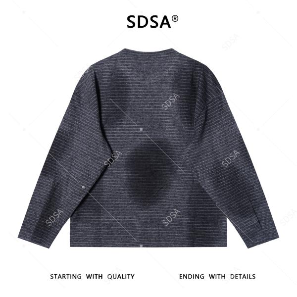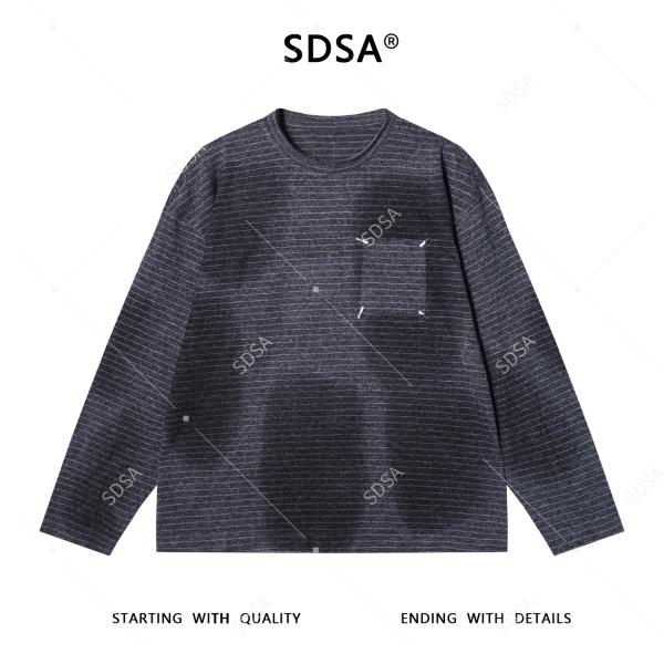 SDSA男士秋冬新款痞帅男装条纹扎染圆领长袖T恤四角线刺绣网红款