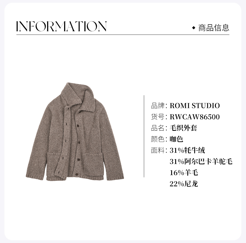 ROMI STUDIO阿尔巴卡羊驼毛牦牛绒混纱松弛毛织外套 RWCAW86500
