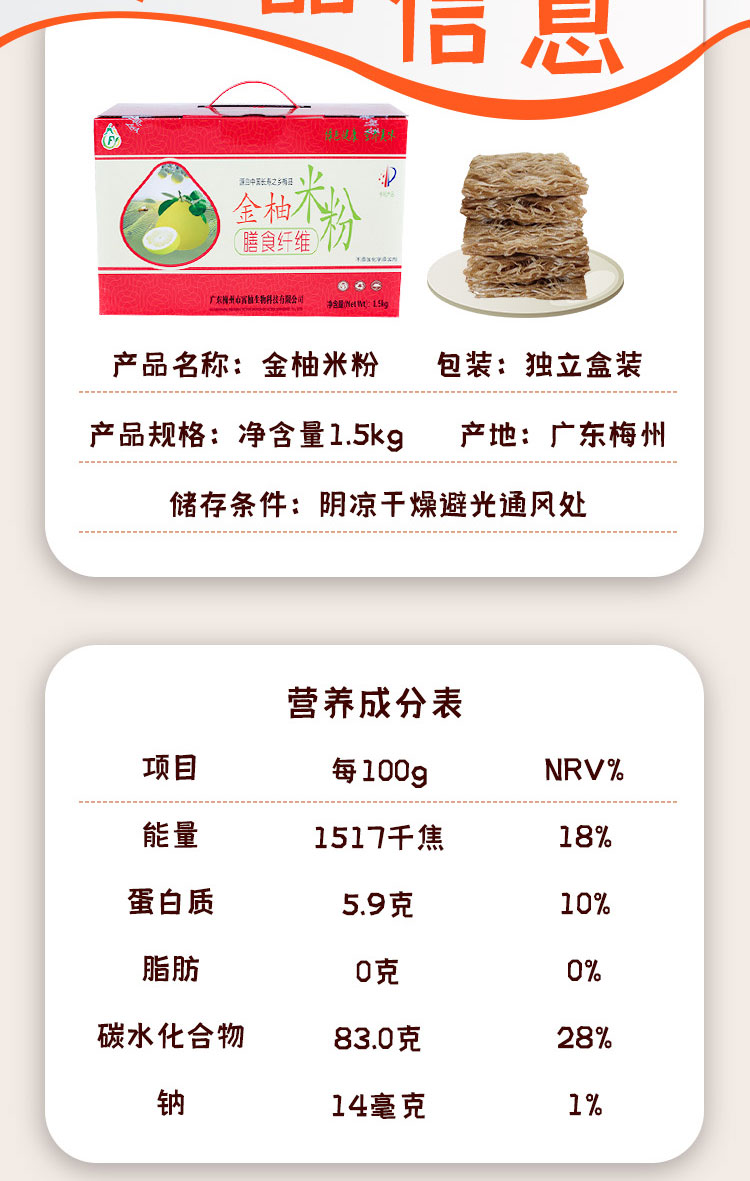 广东梅州富柚金柚膳食纤维米粉1.5kg/箱