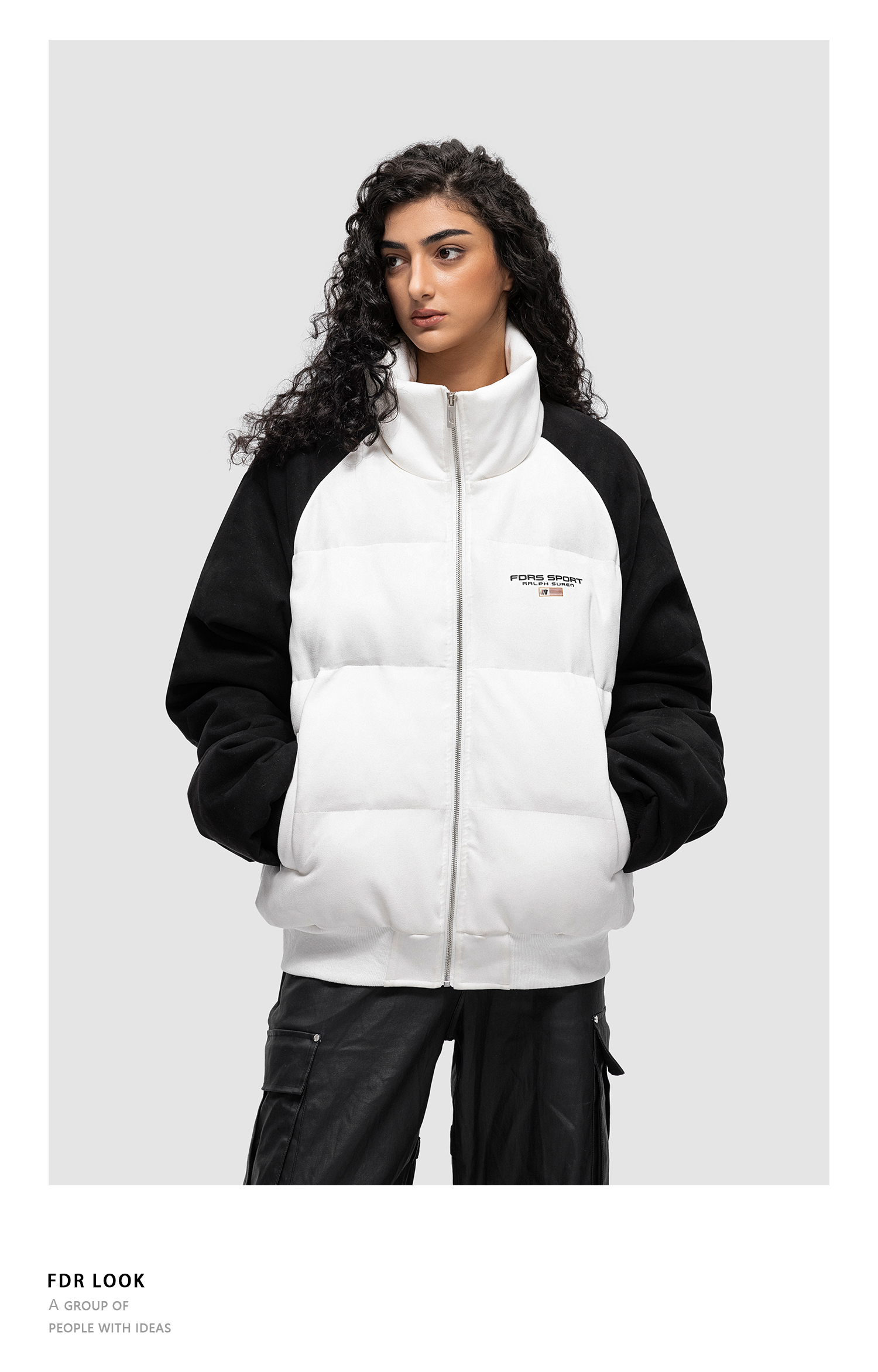 FDR 国潮美式旗帜撞色插肩棉衣棉服男女秋冬季加厚情侣面包服外套