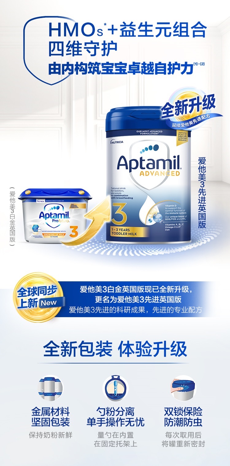 【品牌直供】英国Aptamil爱他美白金版幼儿配方奶粉 3段 1-3周岁 800g【超过6罐请分开下单】