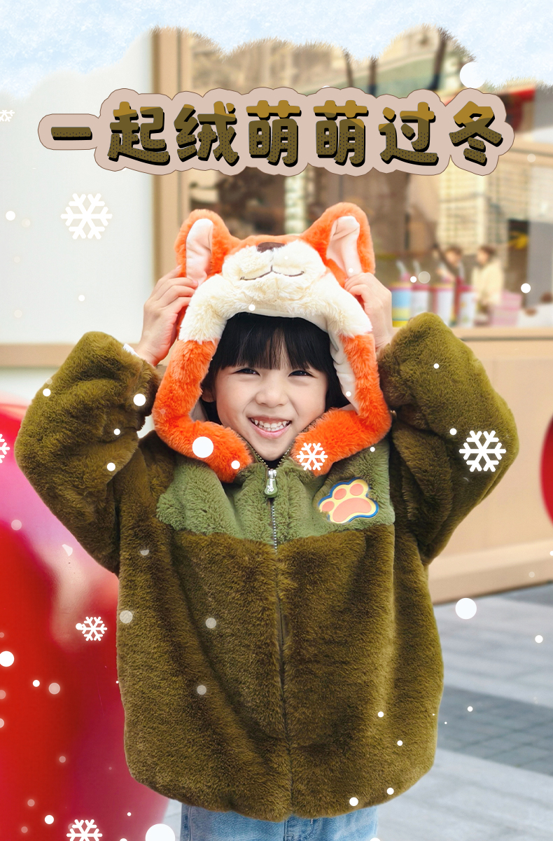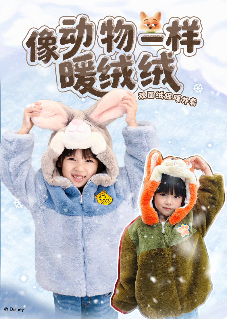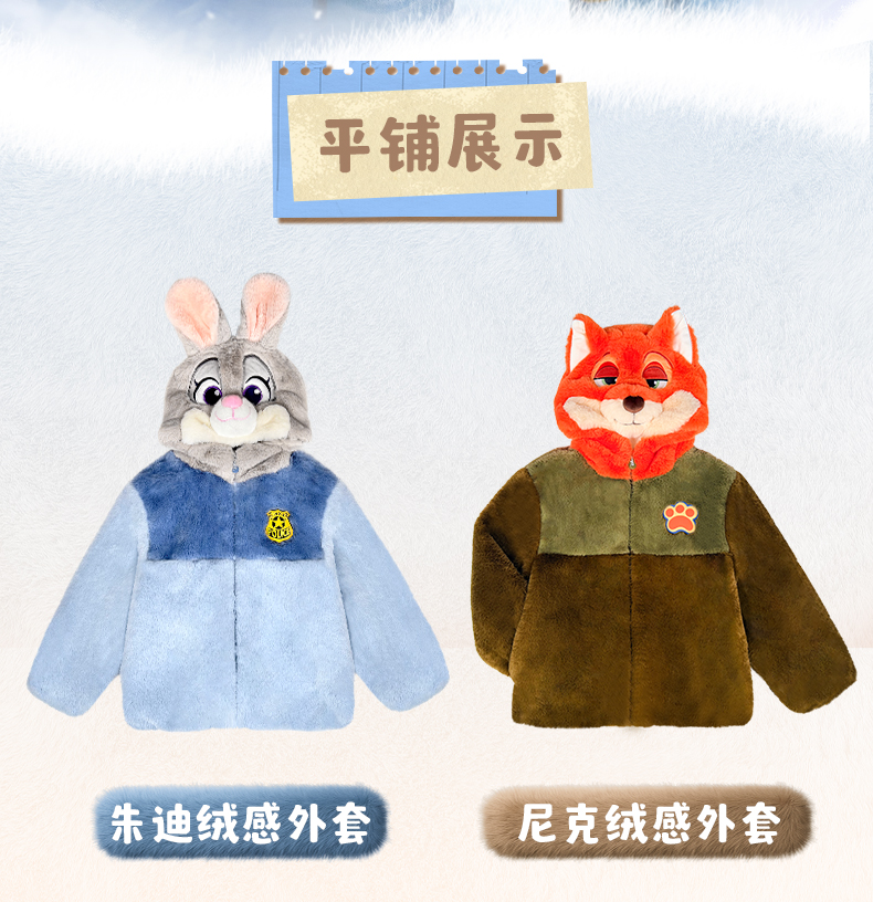 疯狂动物城2朱迪尼克狐狸绒感外套保暖冬新款男女童仿兔毛毛绒套装亲子扮演装