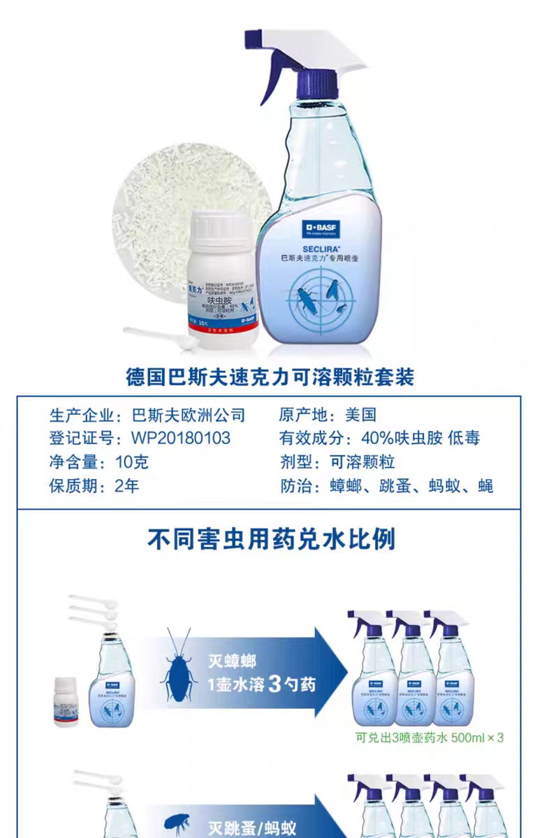 德国巴斯夫家用蟑螂药蚂蚁跳蚤呋虫胺喷雾全窝端5克/10克