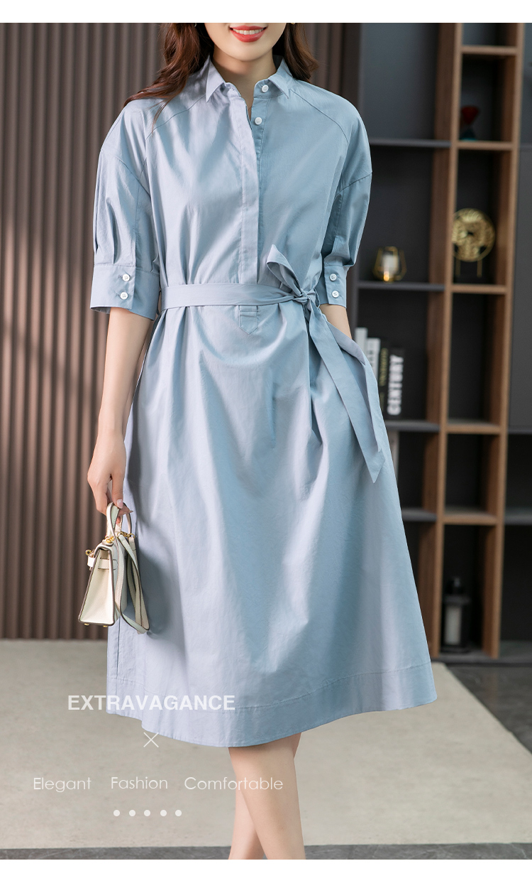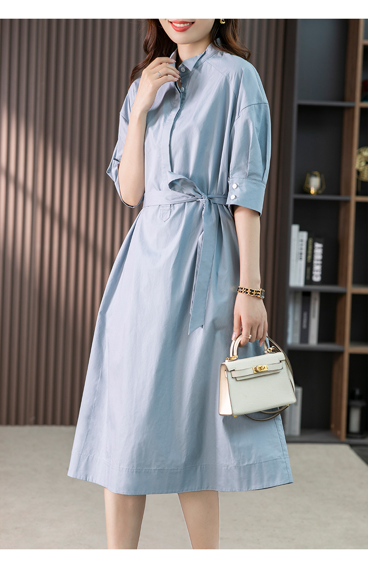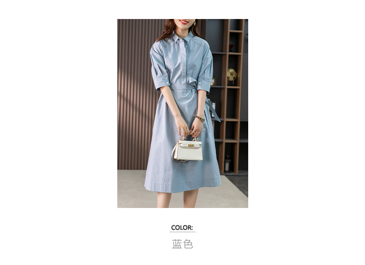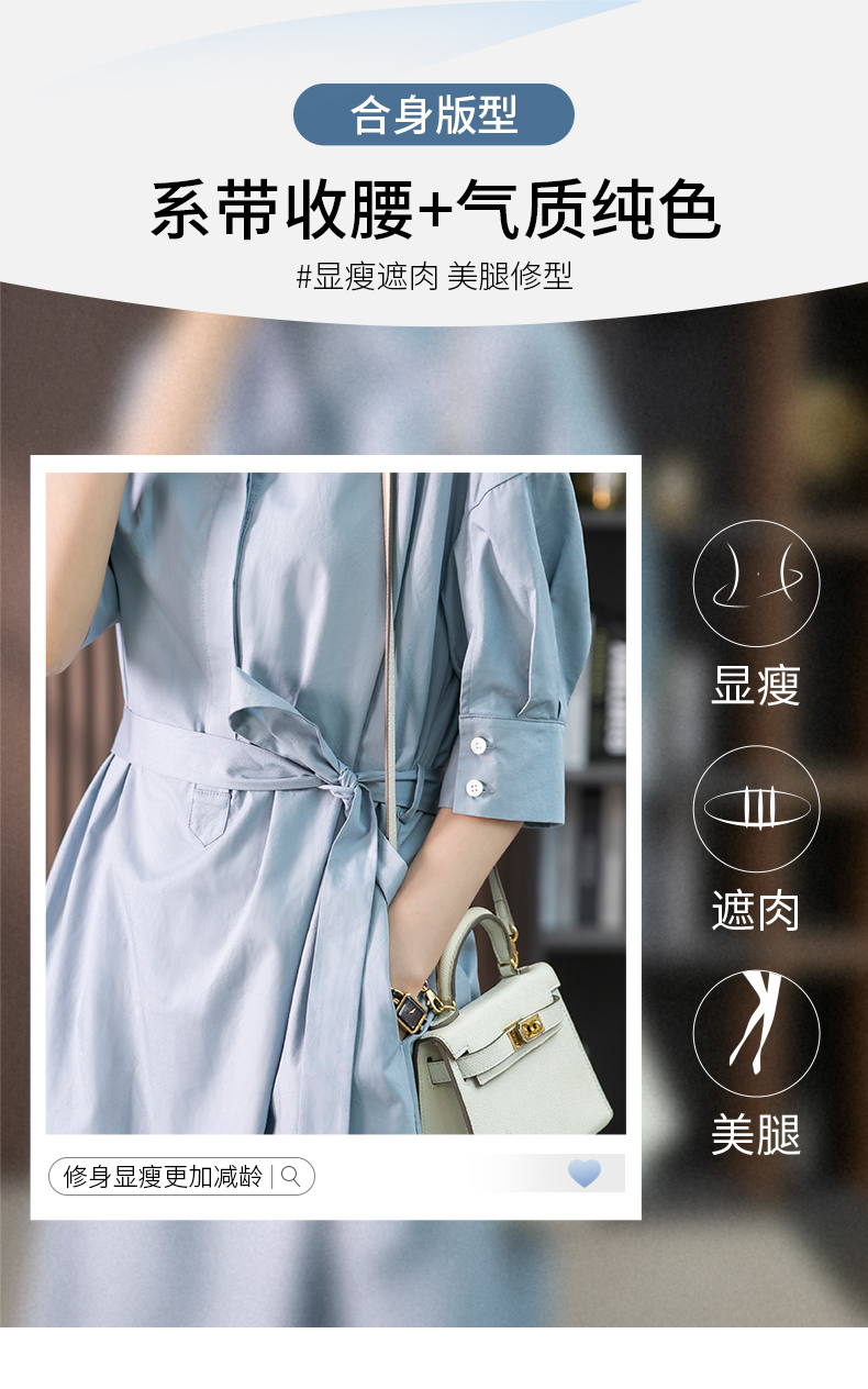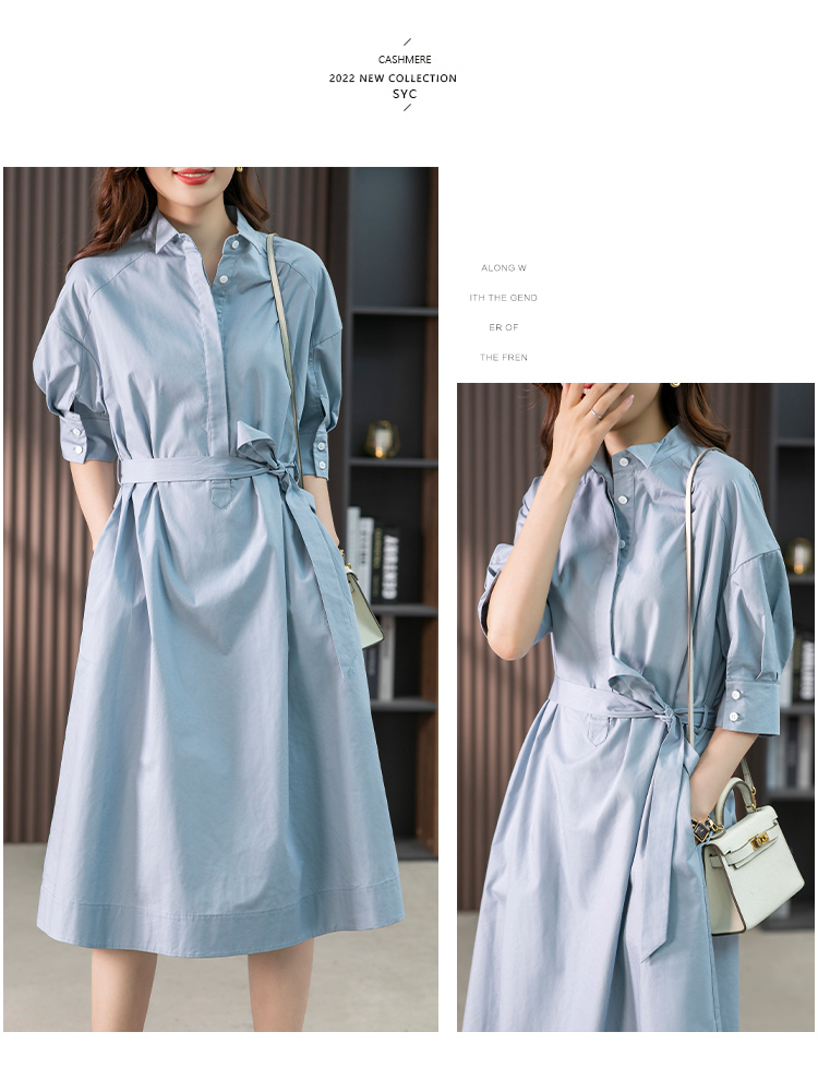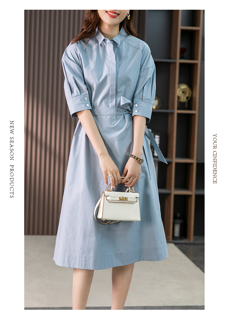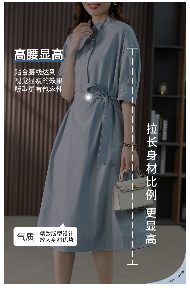 85782原形设计感小众衬衫裙女中长款2024春夏季新款收腰连衣裙高级感