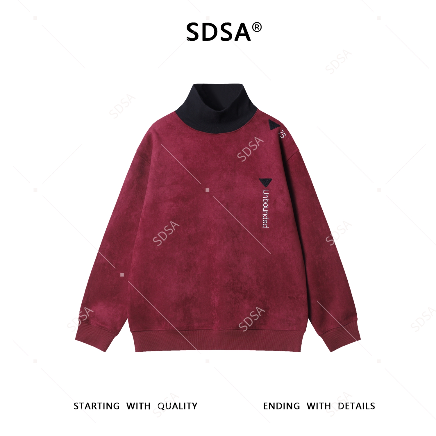 WY1533SDSA秋冬新款痞帅男装潮牌植绒撞色拼接刺绣字母倒三角立领卫衣