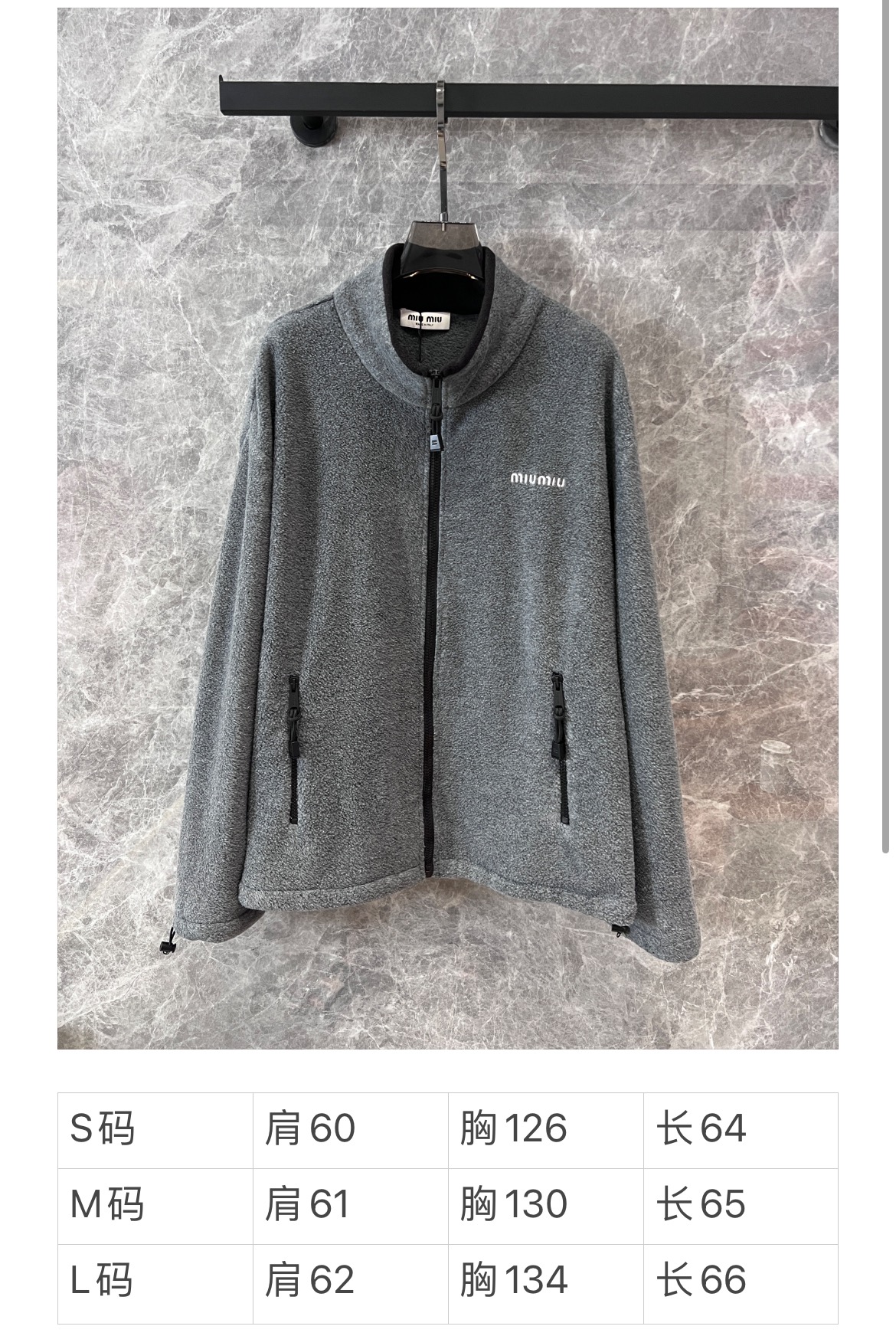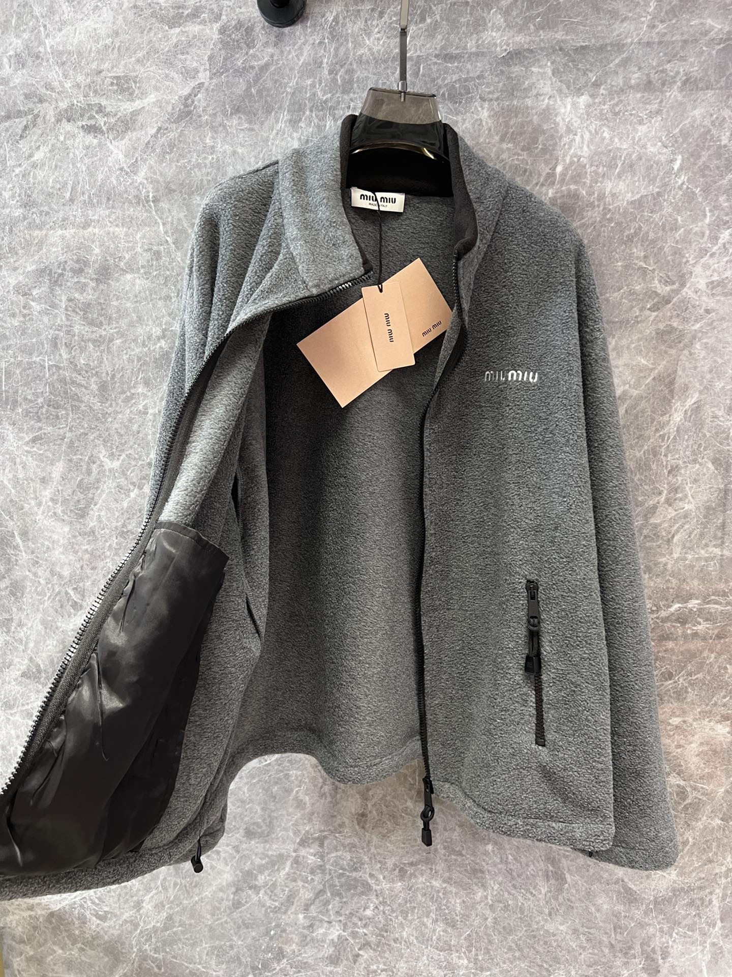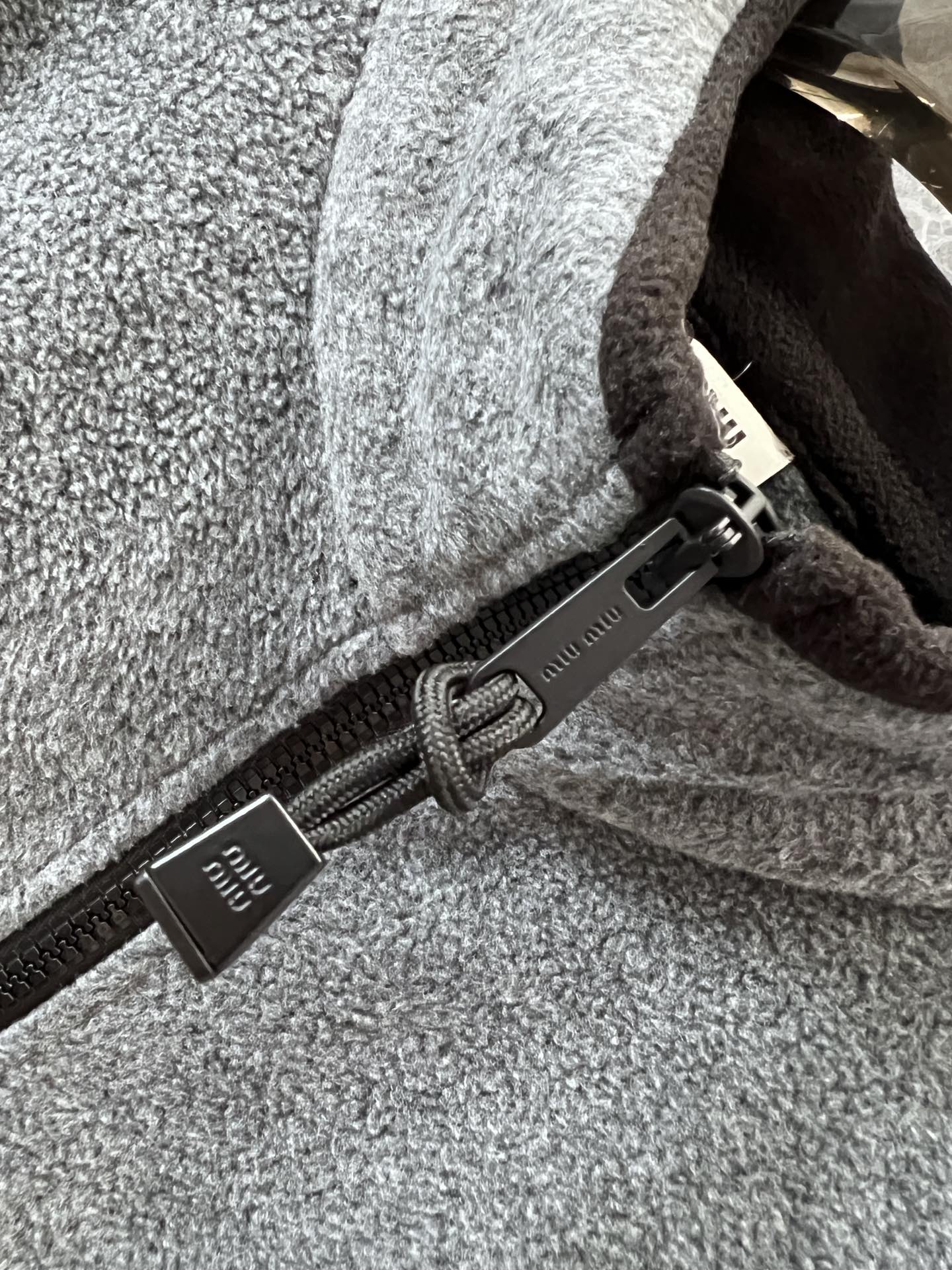 Miu mi*24Fw早秋新款 徽标刺绣小logo灰色摇粒绒立领夹克外套独家yb开发!高版出品!