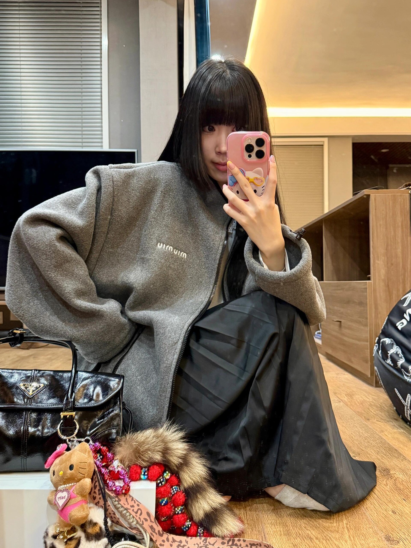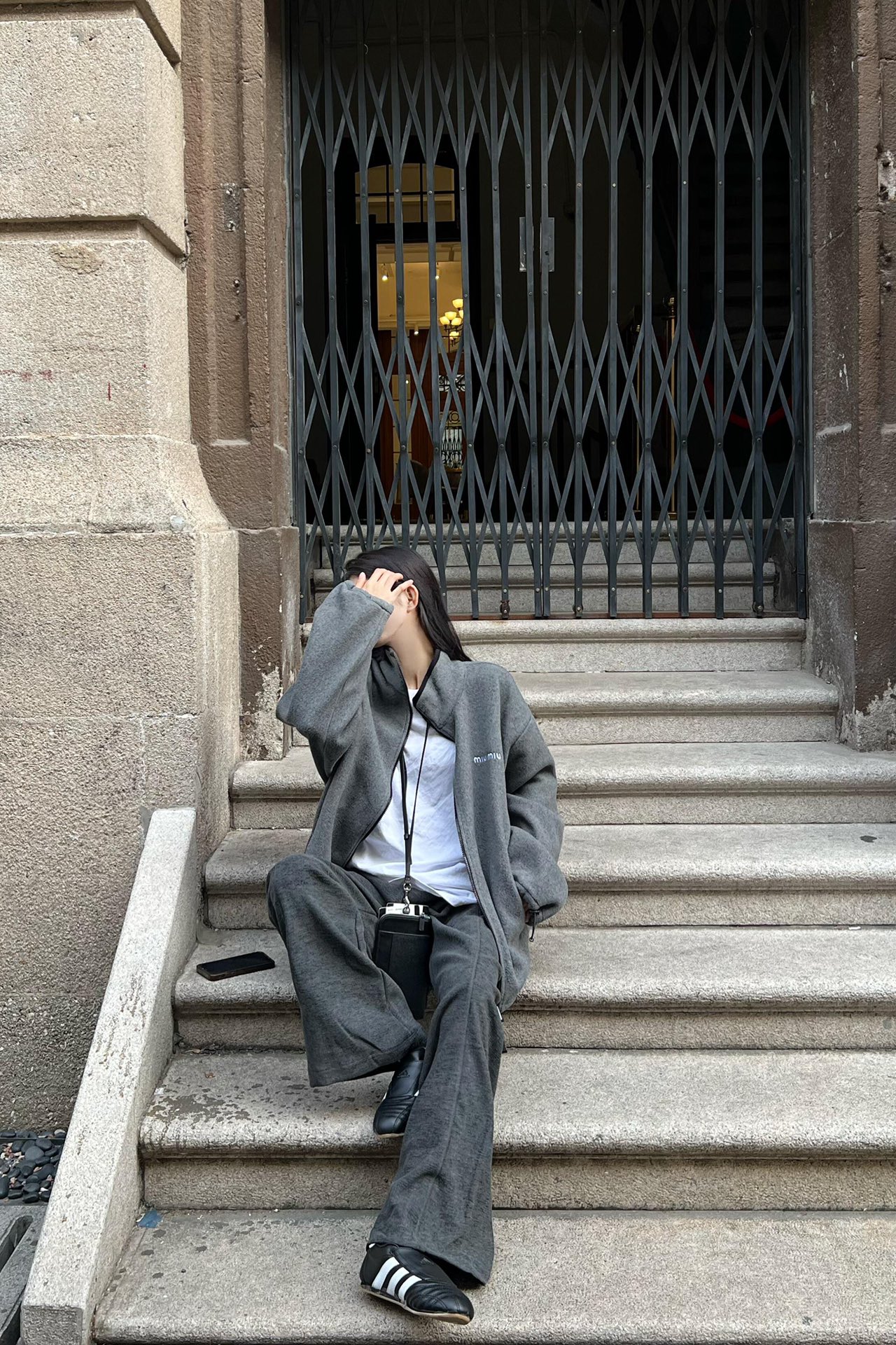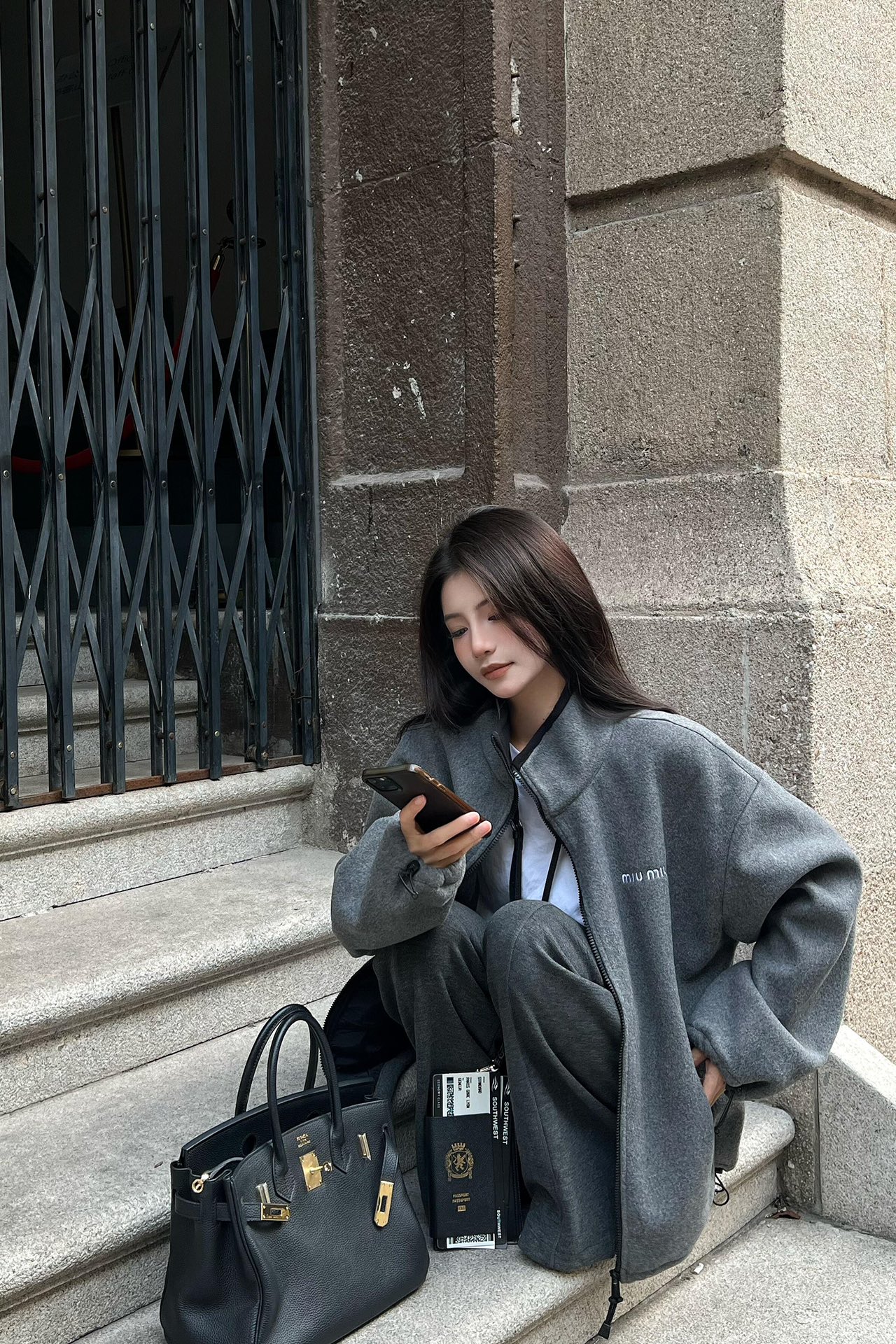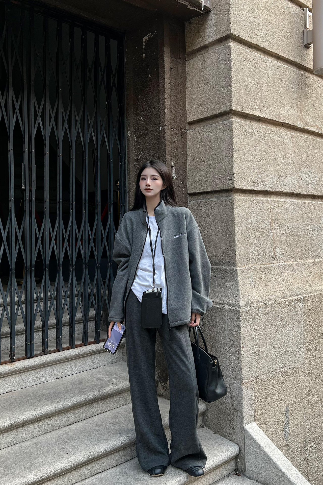 Miu mi*24Fw早秋新款 徽标刺绣小logo灰色摇粒绒立领夹克外套独家yb开发!高版出品!